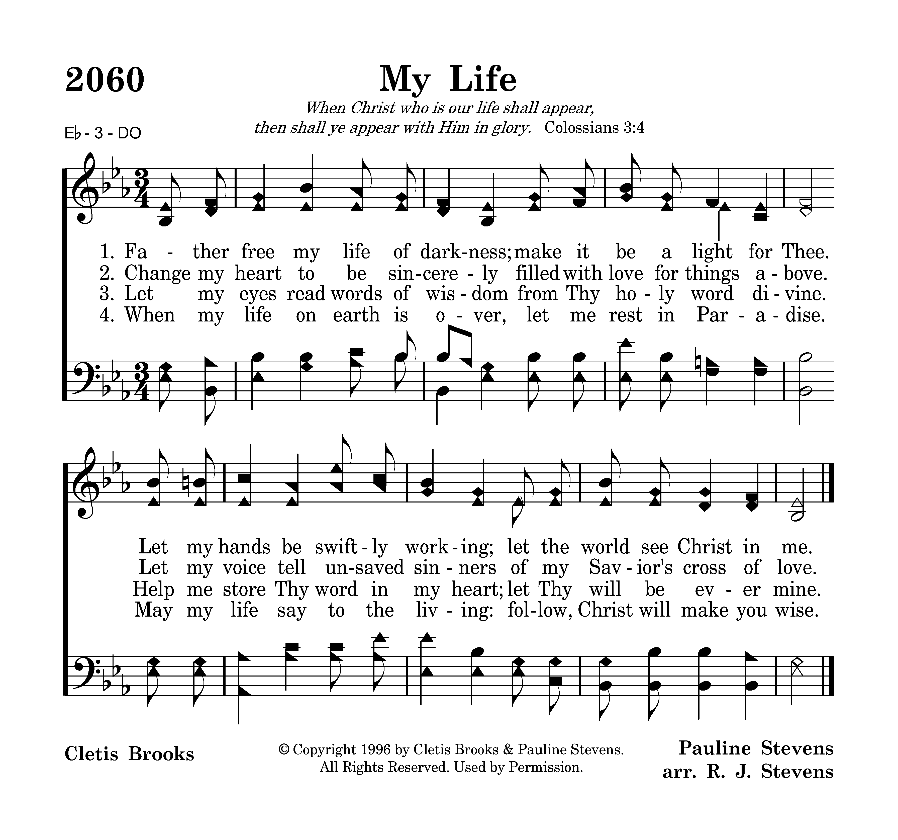 - © Copyright 1996 by Cletis Brooks & Pauline Stevens. All Rights Reserved. Used by Permission.