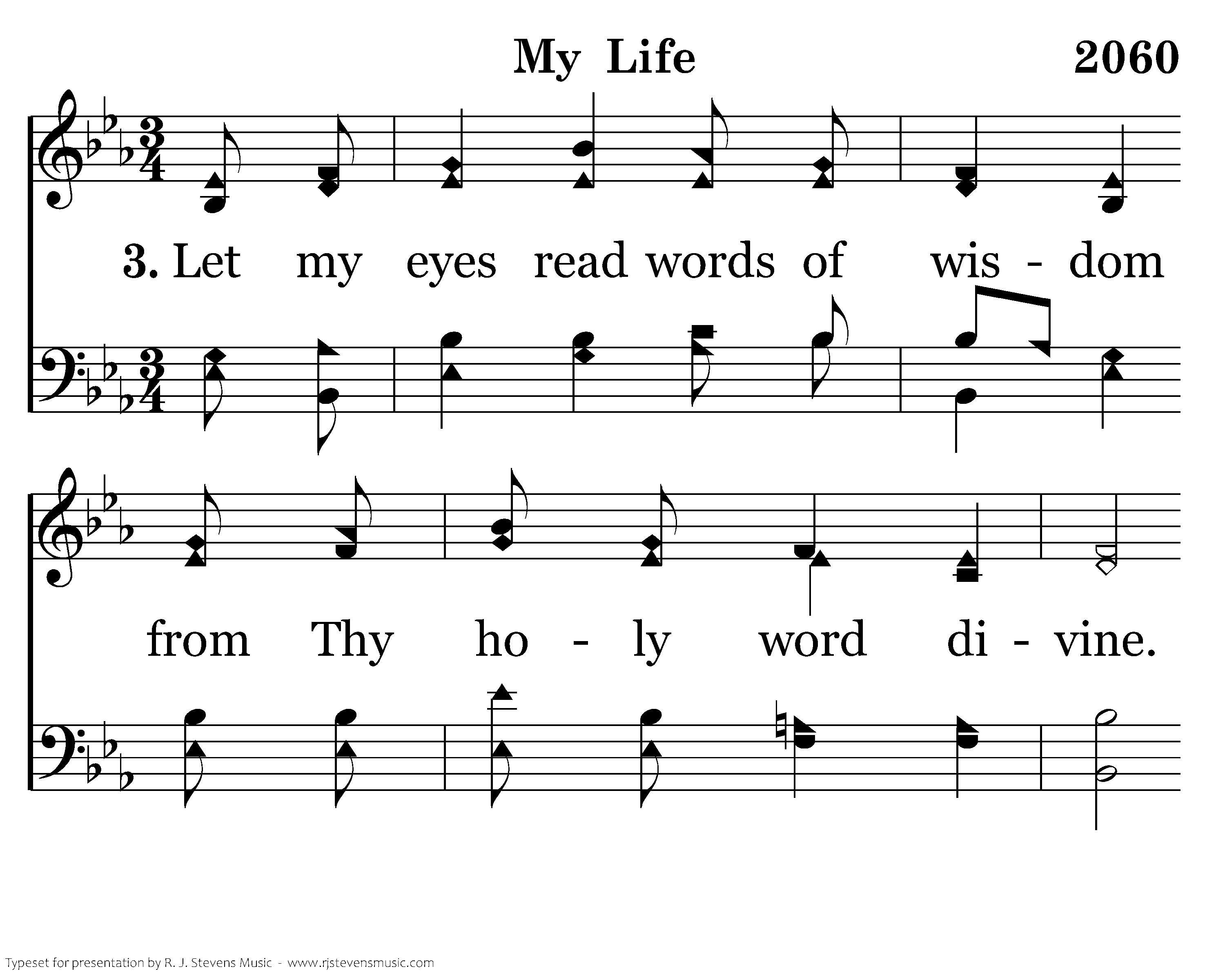 Let my eyes read words of wisdom from Thy holy word divine. Help me store Thy word in my heart; let Thy will be ever mine.