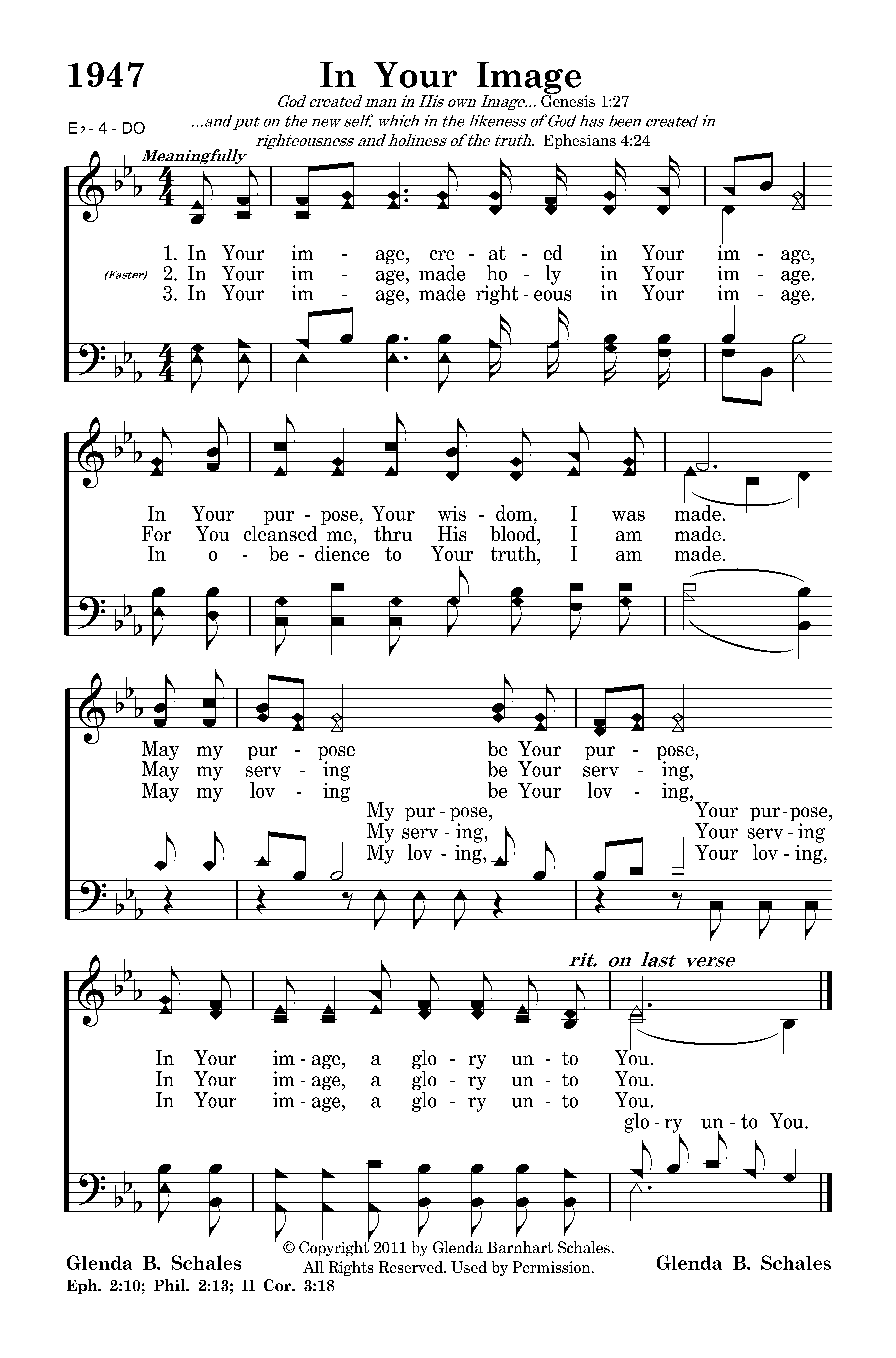 In Your image, made righteous in Your image. In obedience to Your truth, I am made. May my loving (My loving,) be Your loving,(Your loving,) In Your image, a glory unto You. (glory unto You.)