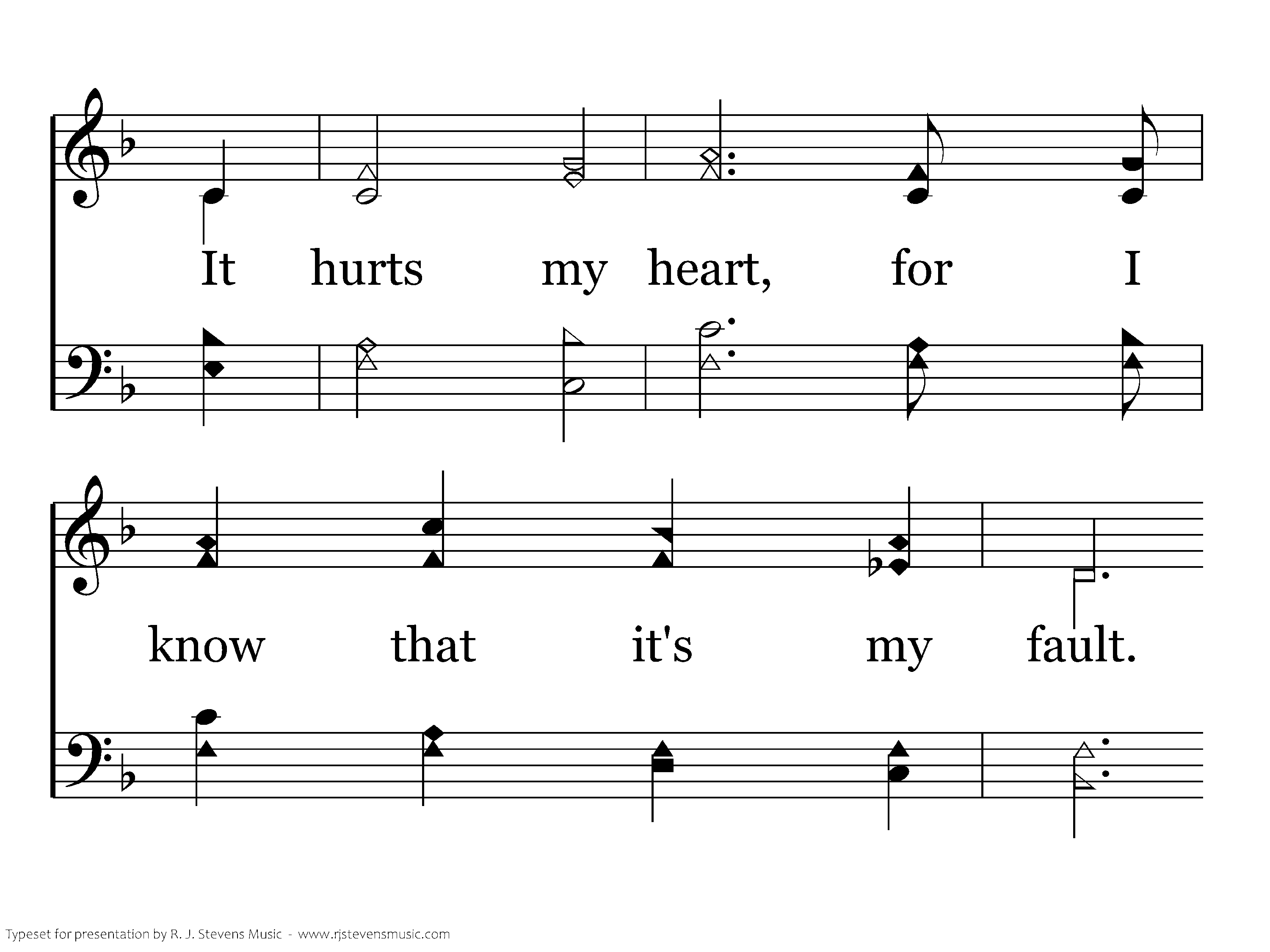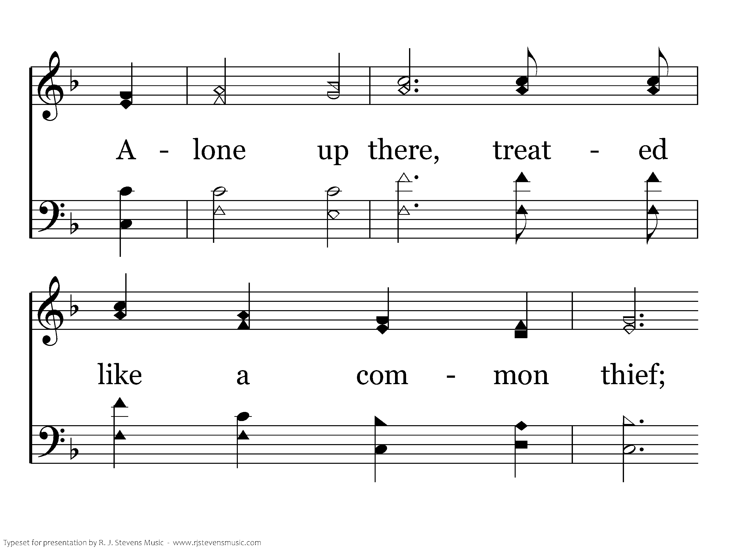 Look there above, see the suff'ring of the Lord. Alone up there, treated like a common thief; It hurts my heart, for I know that it's my fault. I'm sorry, Lord, I'm the one who caused Your grief.