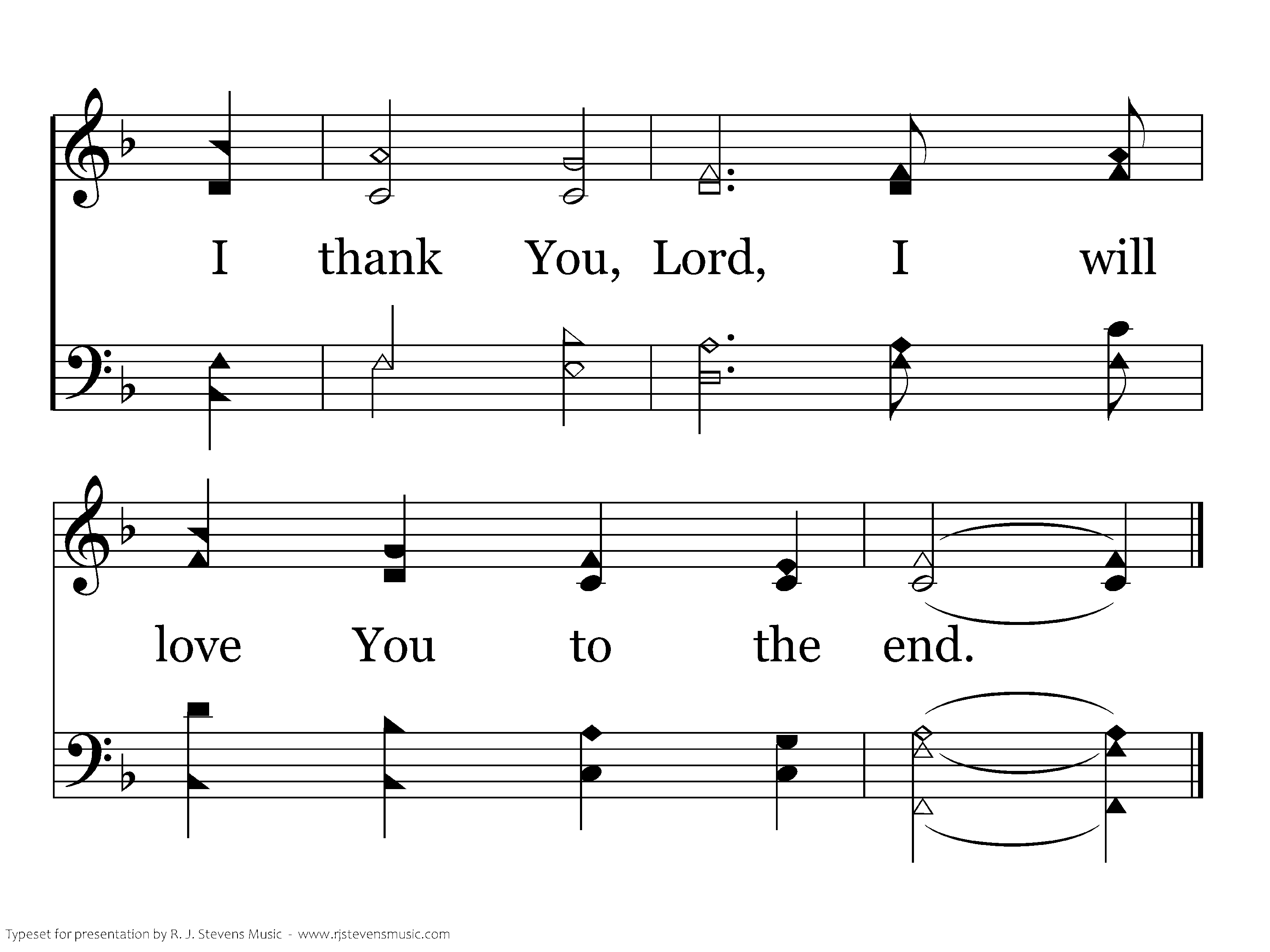 I thank You, Lord. I don't understand such love. I thank You, Lord, I know You're my greatest friend. I thank You, Lord, For Your suff'ring and Your pain. I thank You, Lord, I will love You to the end.