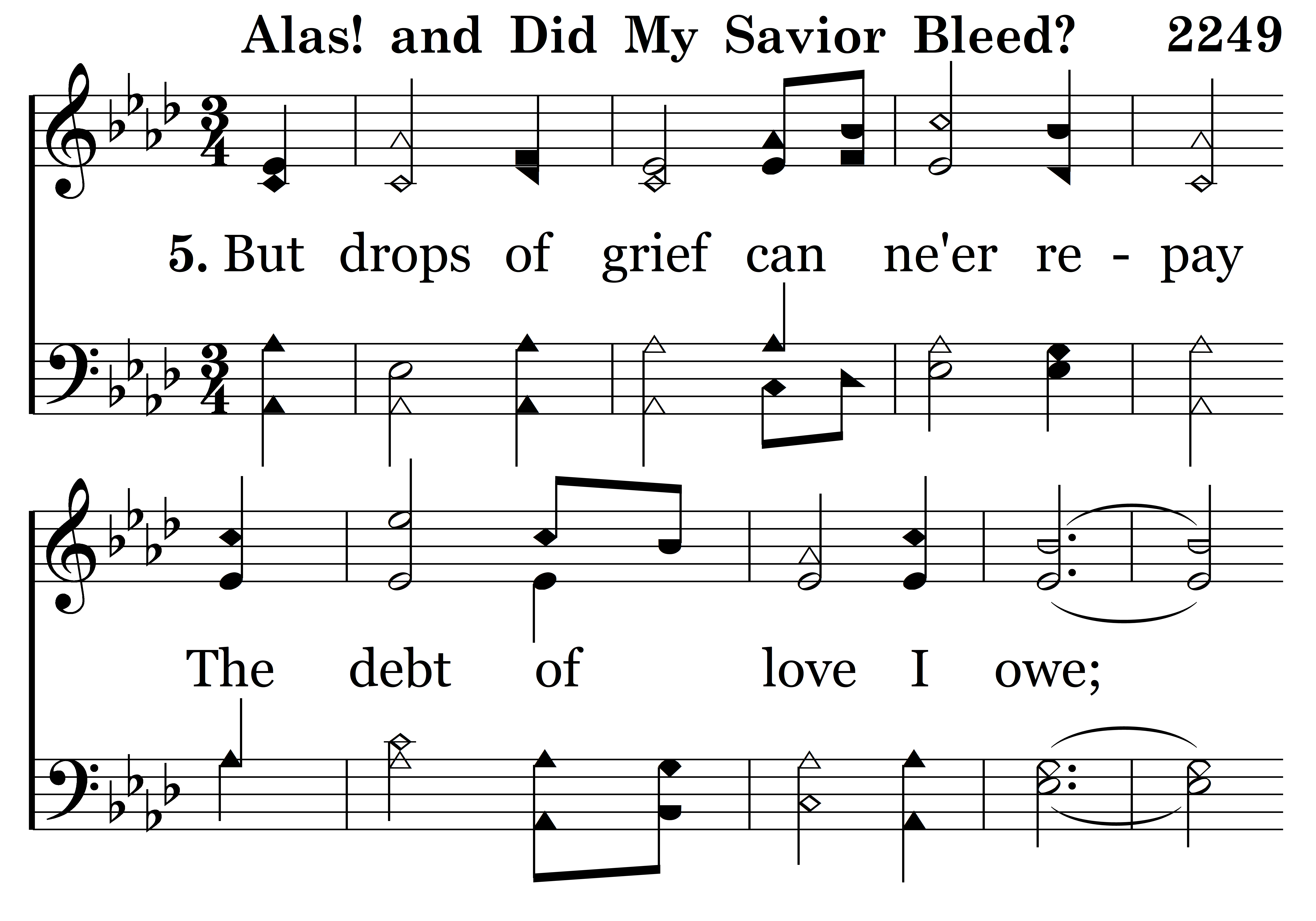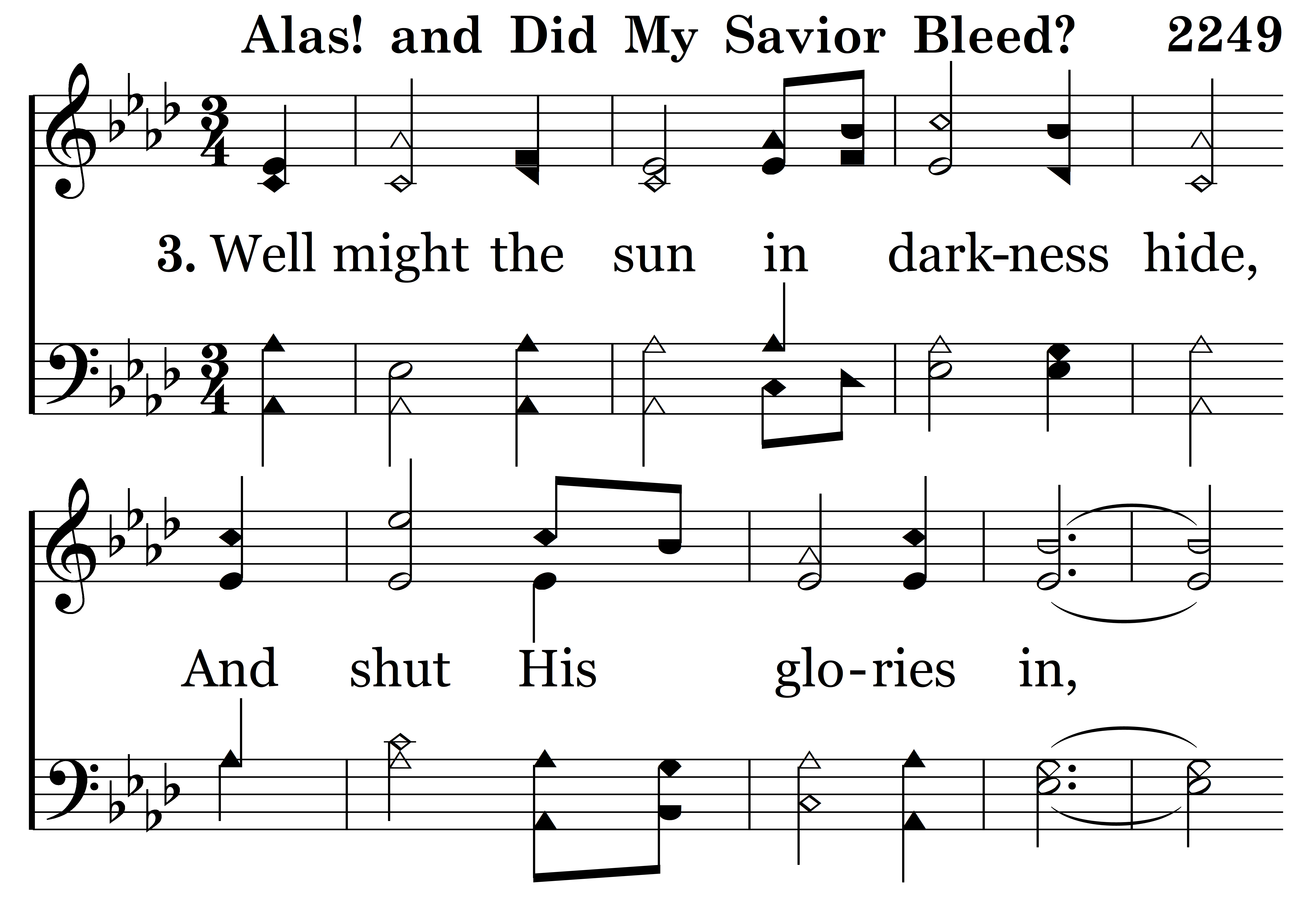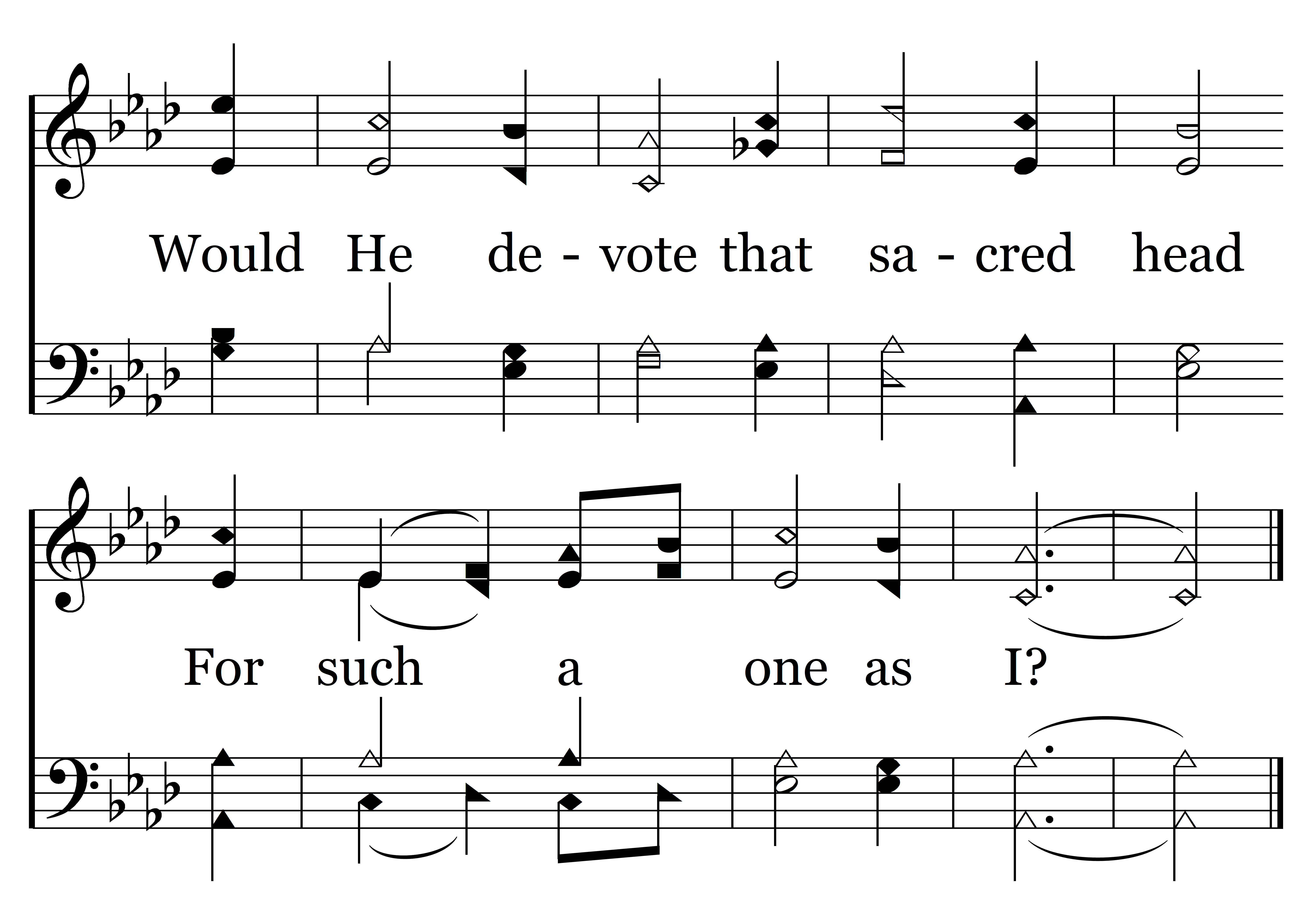Alas, and did my Savior bleed, And did my Sov'reign die? Would He devote that sacred head For such a one as I?