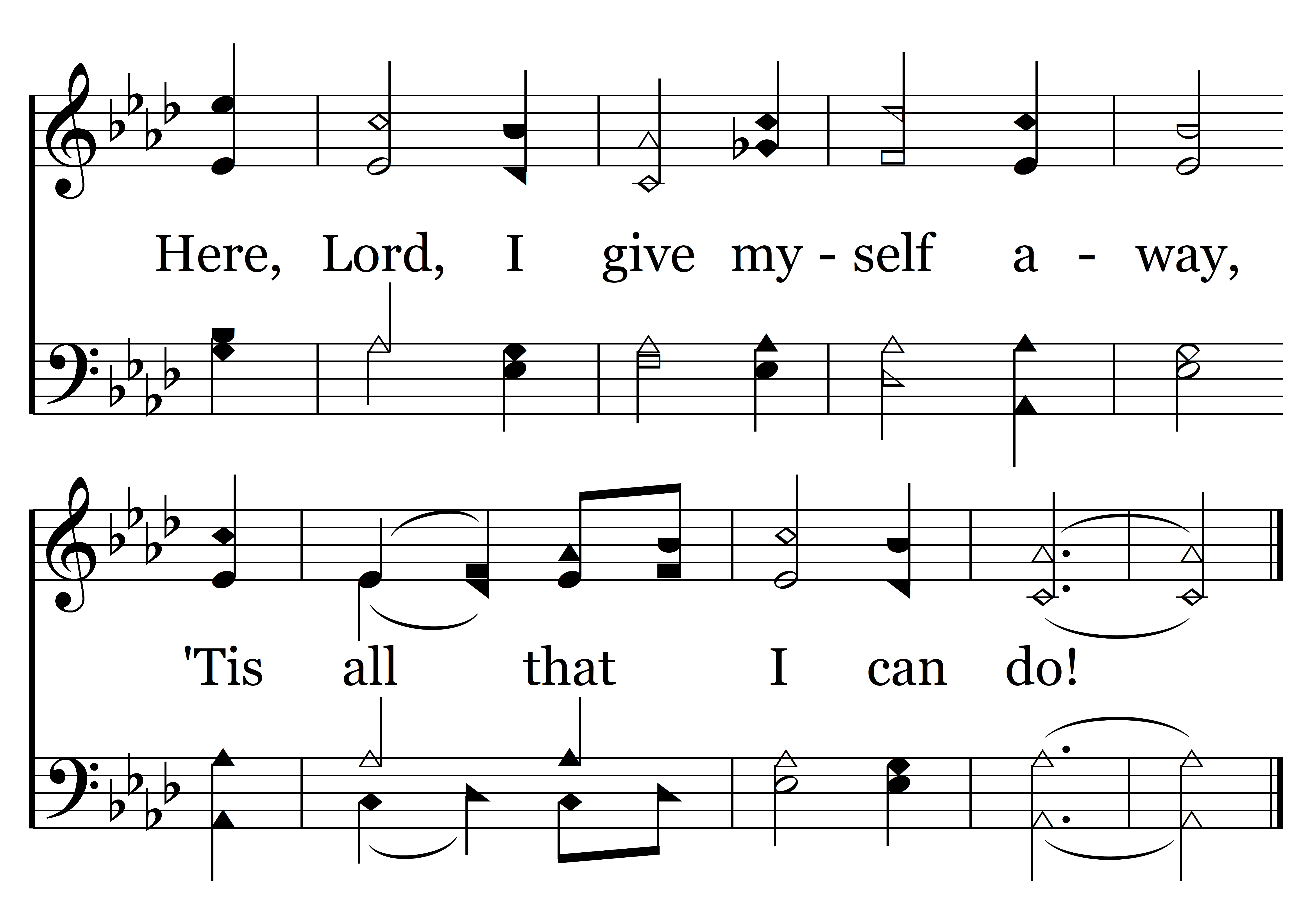 But drops of grief can ne'er re-pay The debt of love I owe; Here, Lord, I give myself away, 'Tis all that I can do!