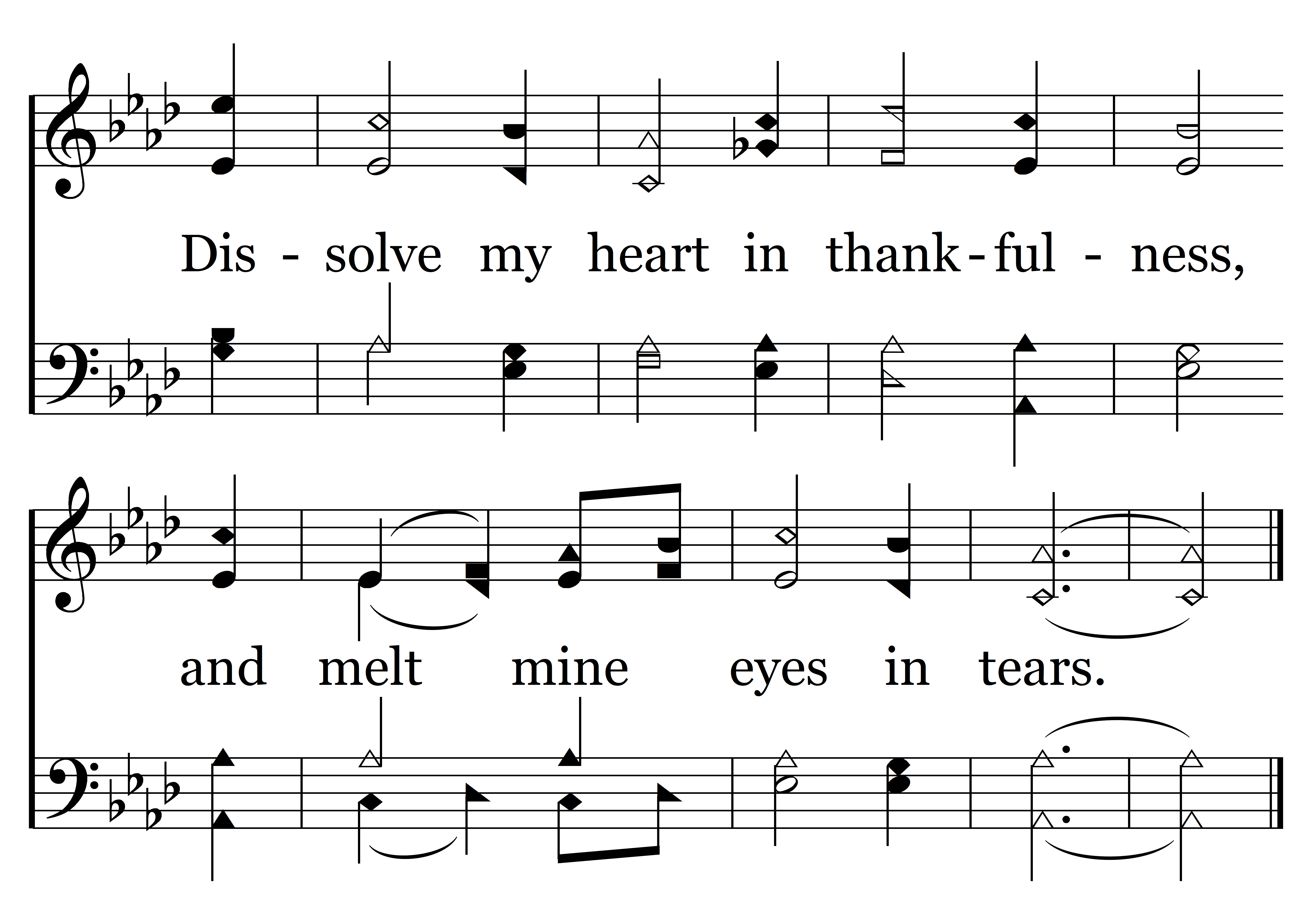 Thus might I hide my blushing face while His dear cross appears; Dissolve my heart in thankfulness, and melt mine eyes in tears.
