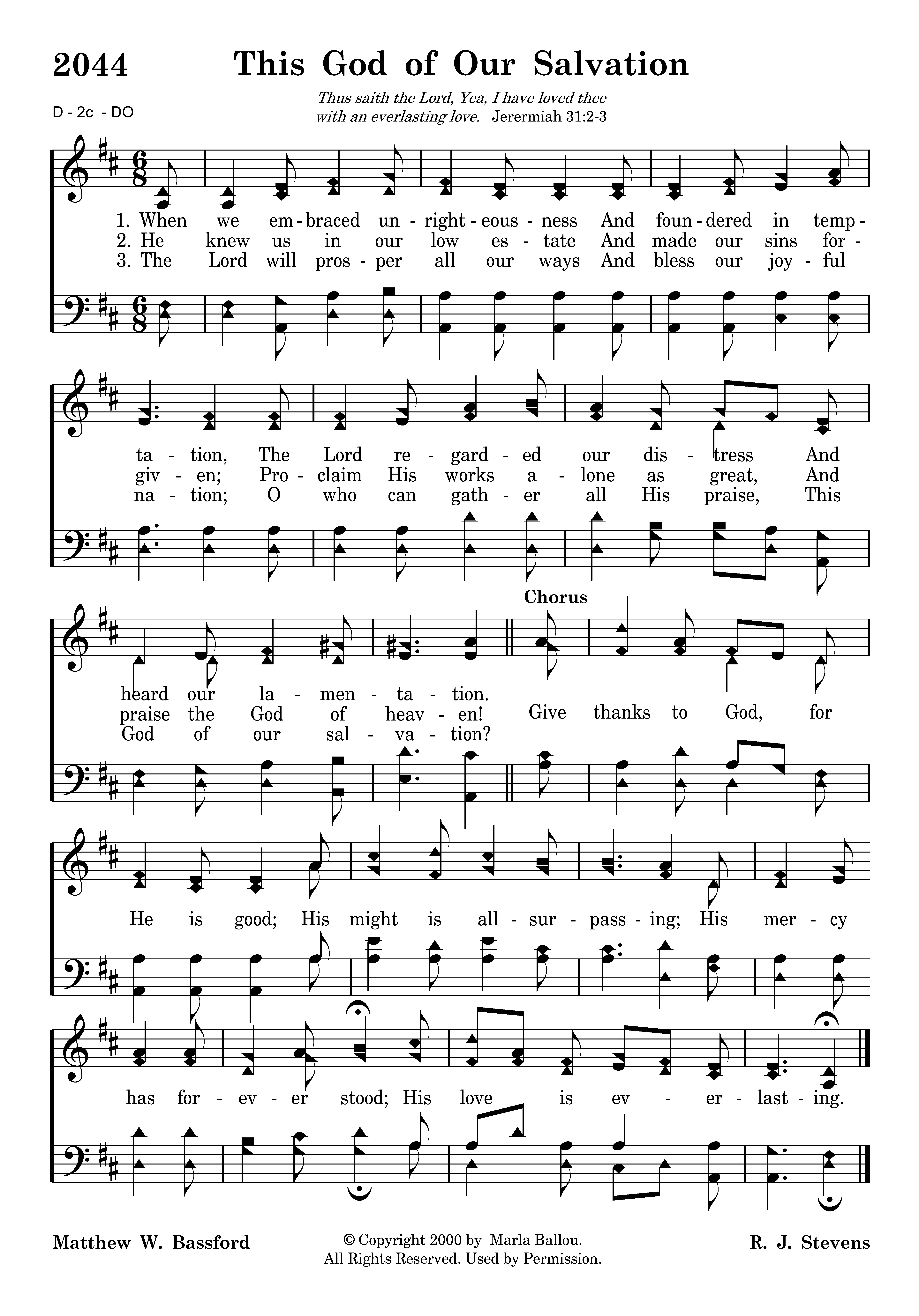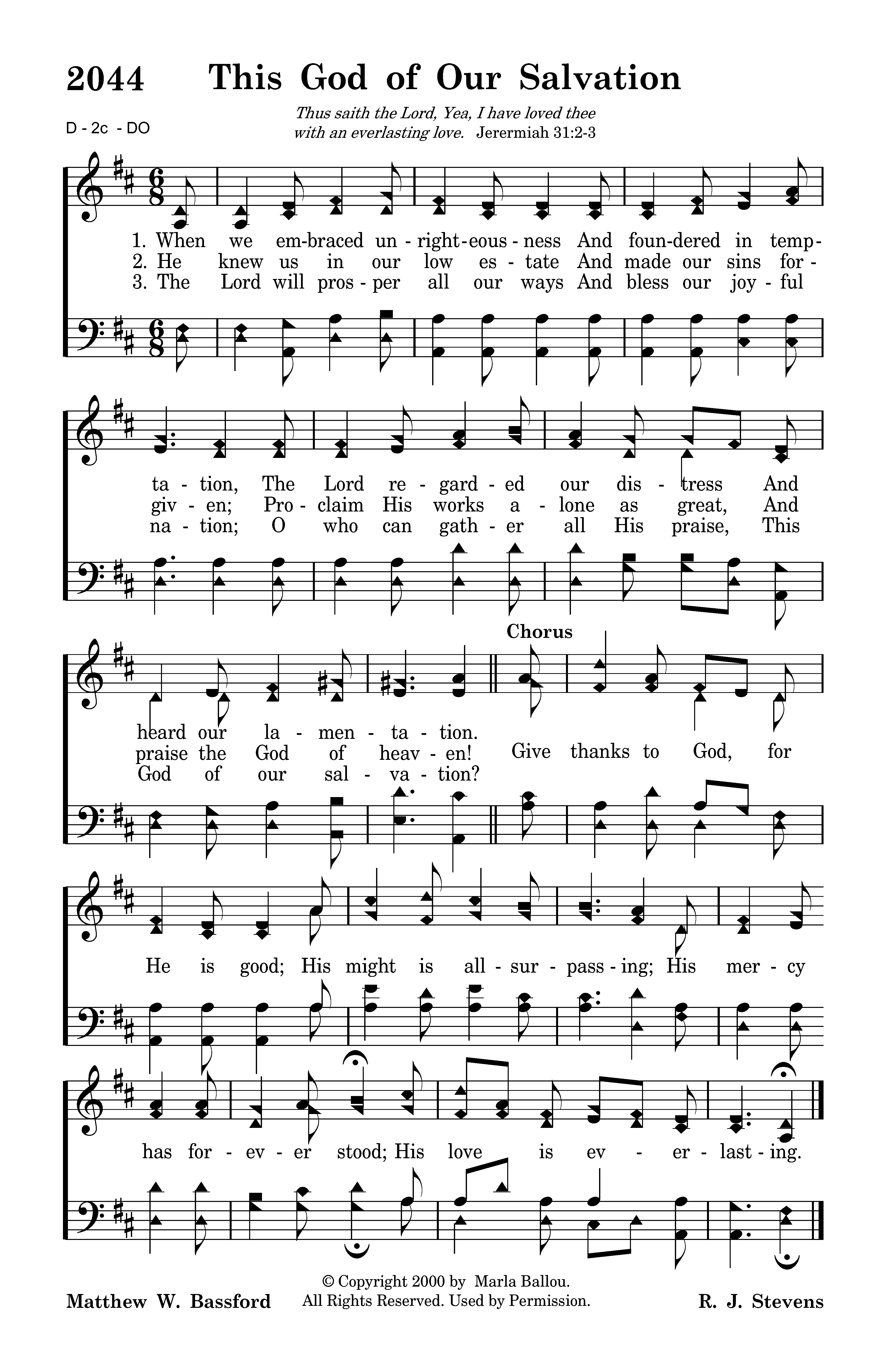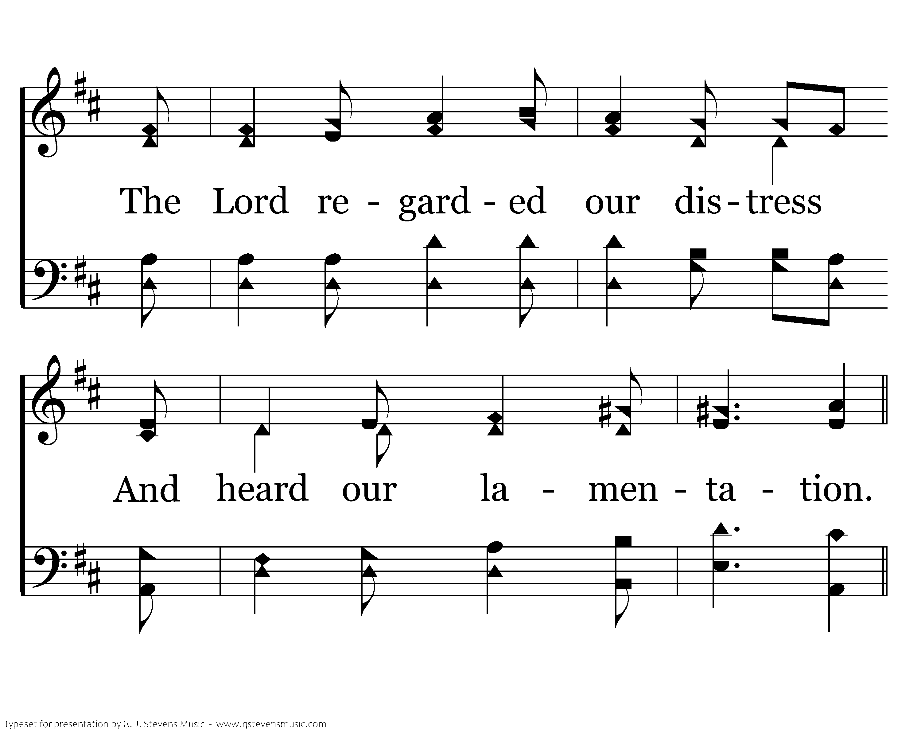 When we embraced unrighteousness And foundered in temptation, The Lord regarded our distress And heard our lamentation.