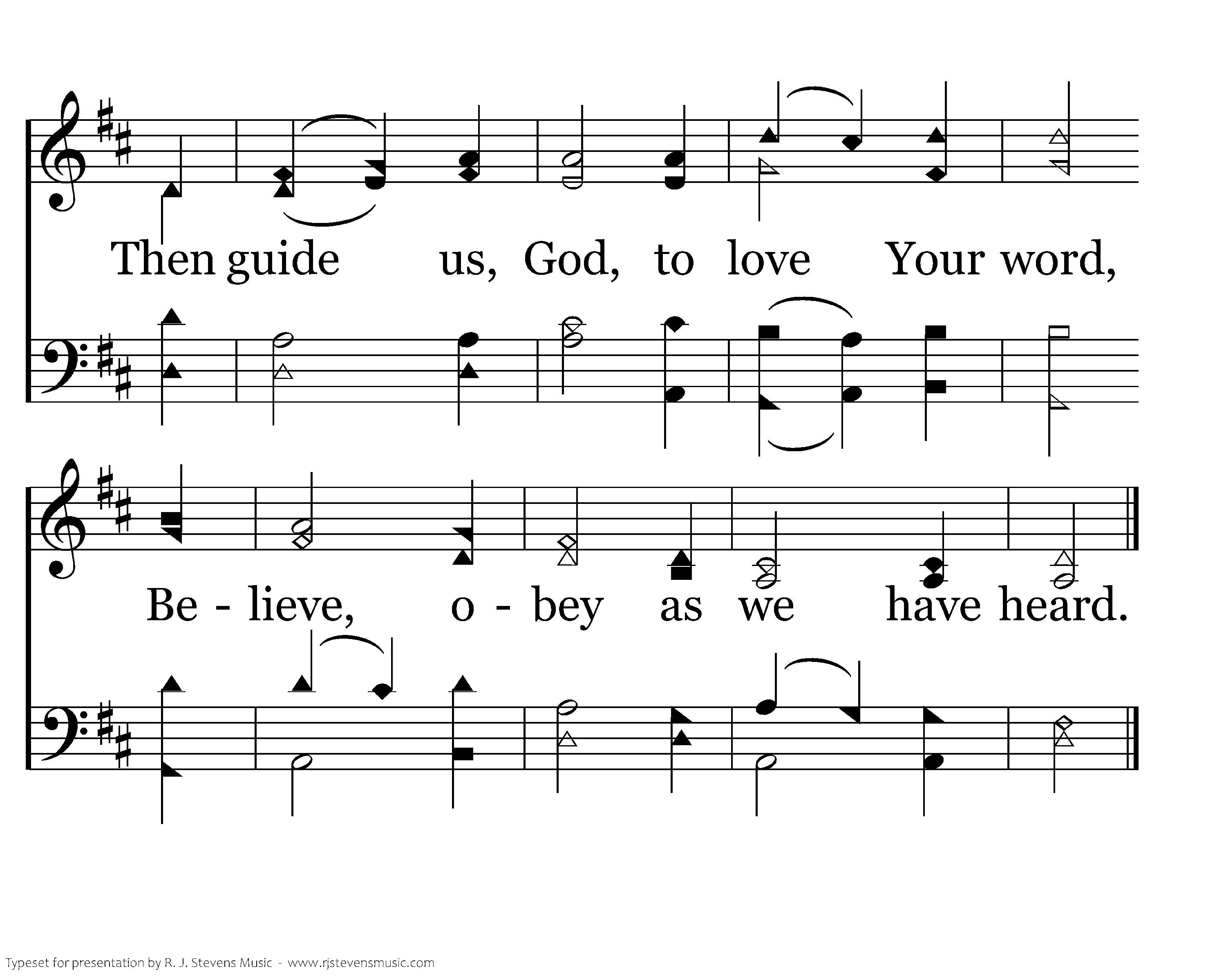 His word unites if we believe, And fellowship we then receive. Then guide us, God, to love Your word, Believe, obey as we have heard.
