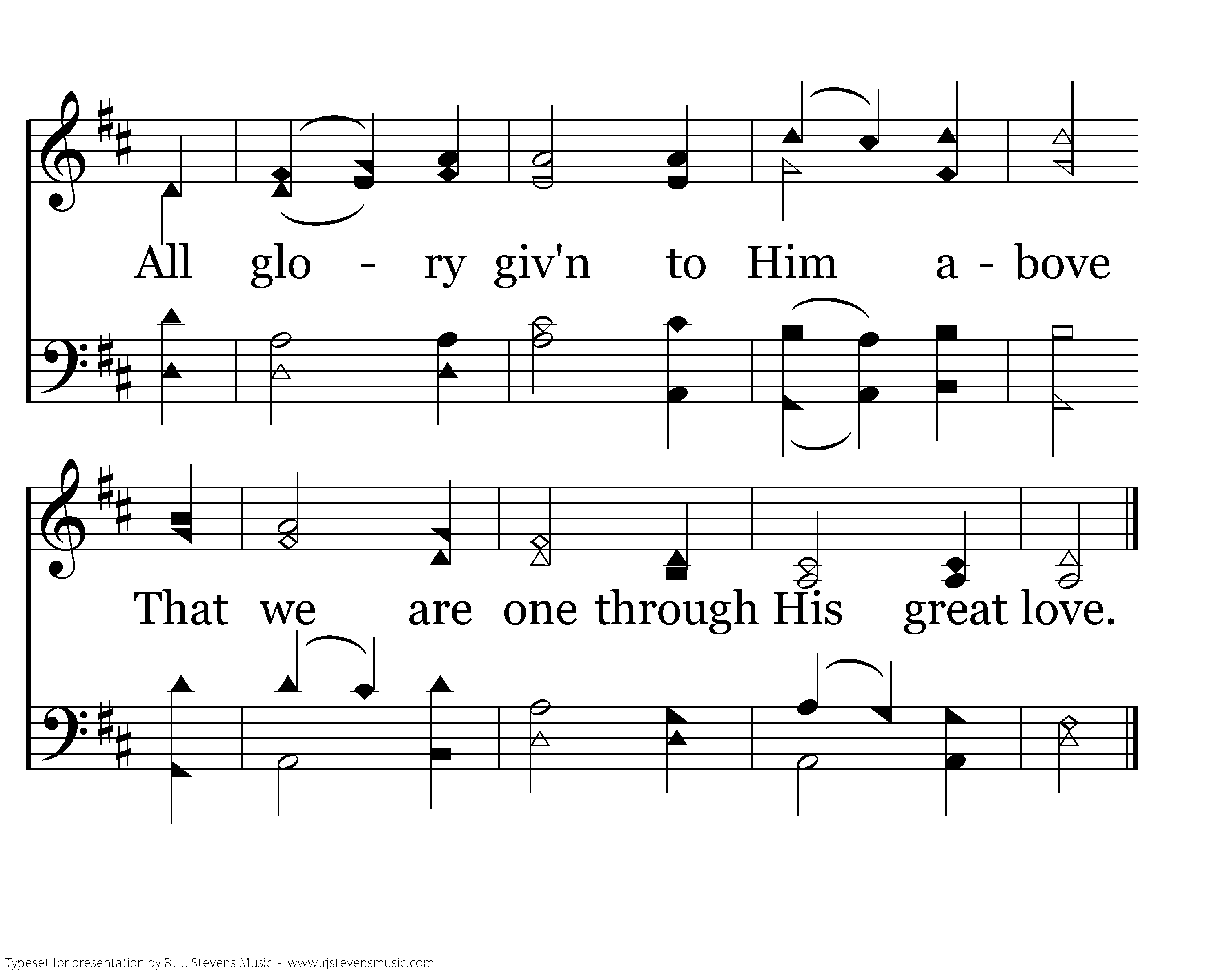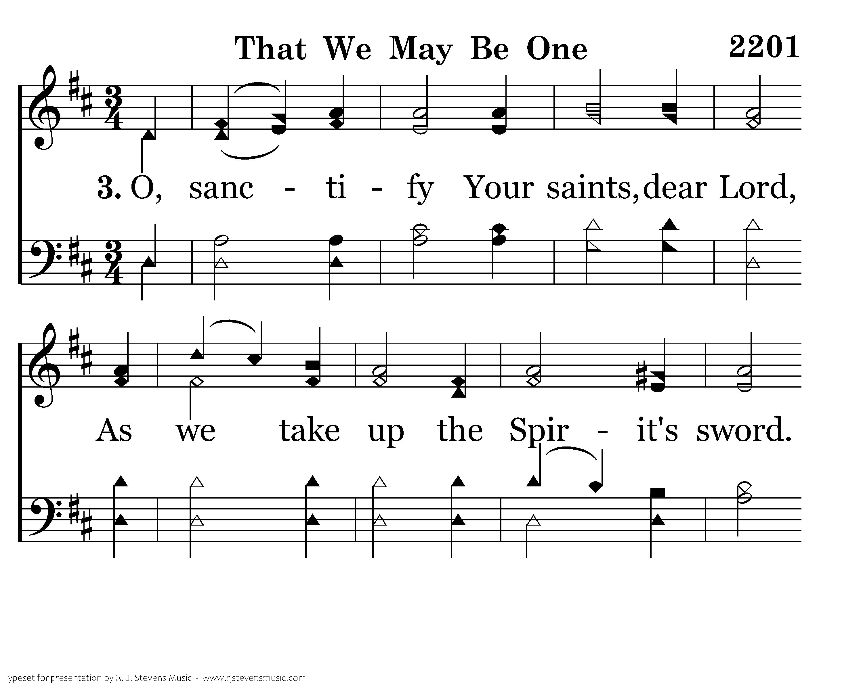 O, sanctify Your saints, dear Lord, As we take up the Spirit's sword. All glory giv'n to Him above That we are one through His great love.