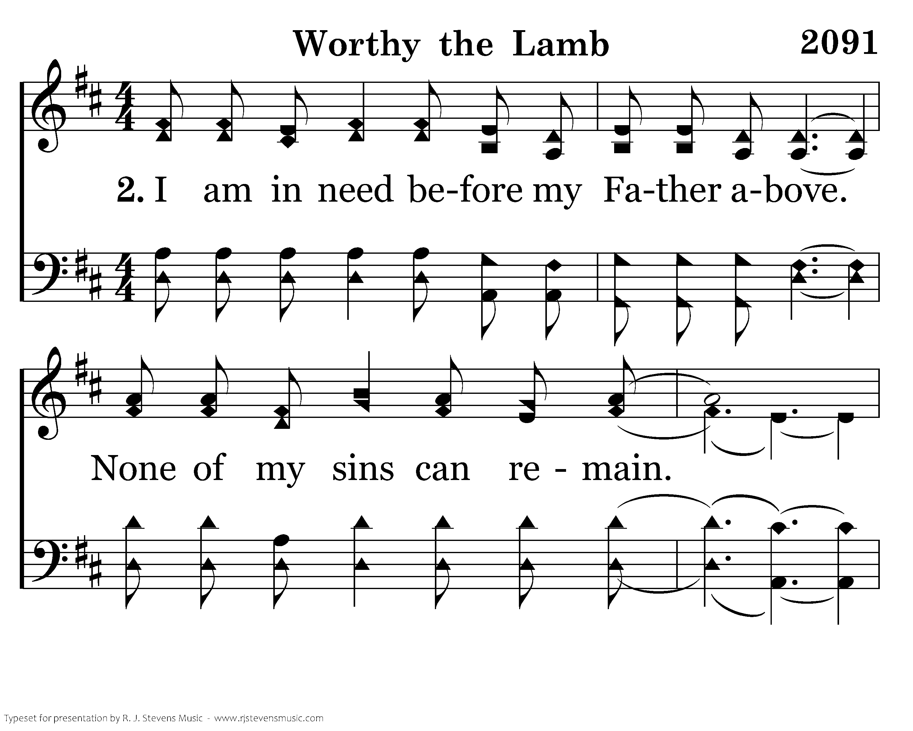I am in need before my Father above. None of my sins can remain. No other price could ever take them away. Only the Lamb who was slain.