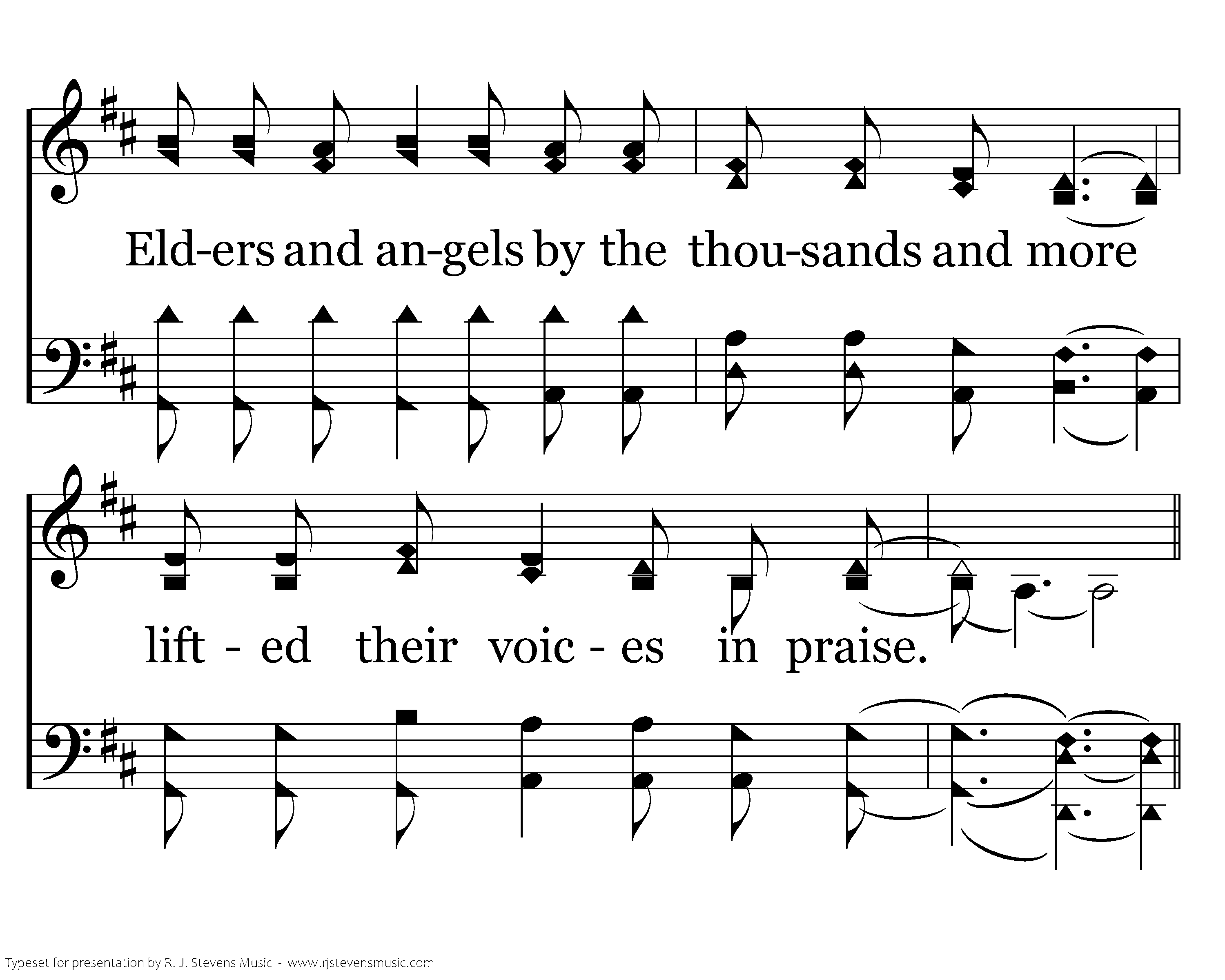 Oh what a scene that was unfolded above, All of the heavens were raised. Elders and angels by the thousands and more lifted their voices in praise.
