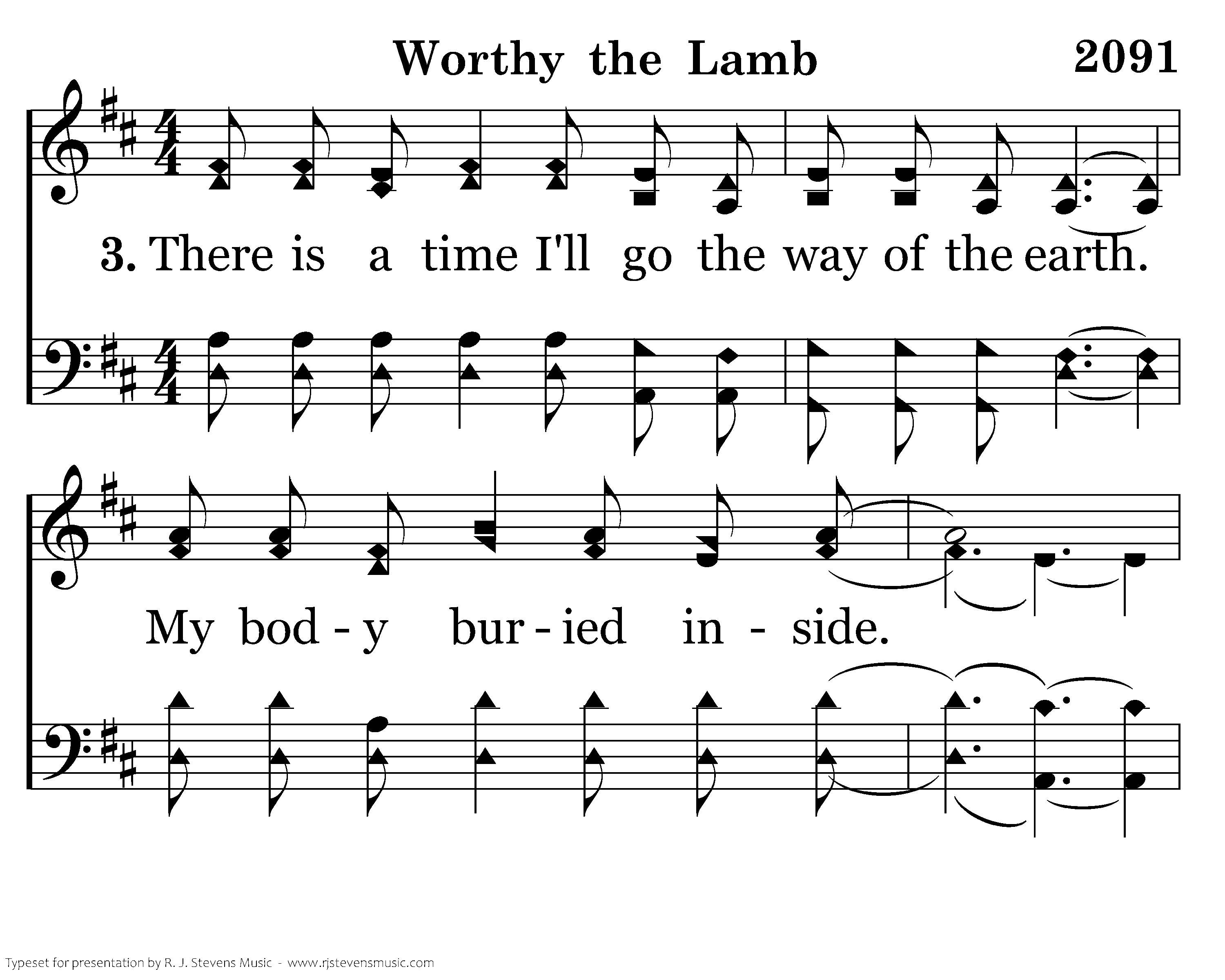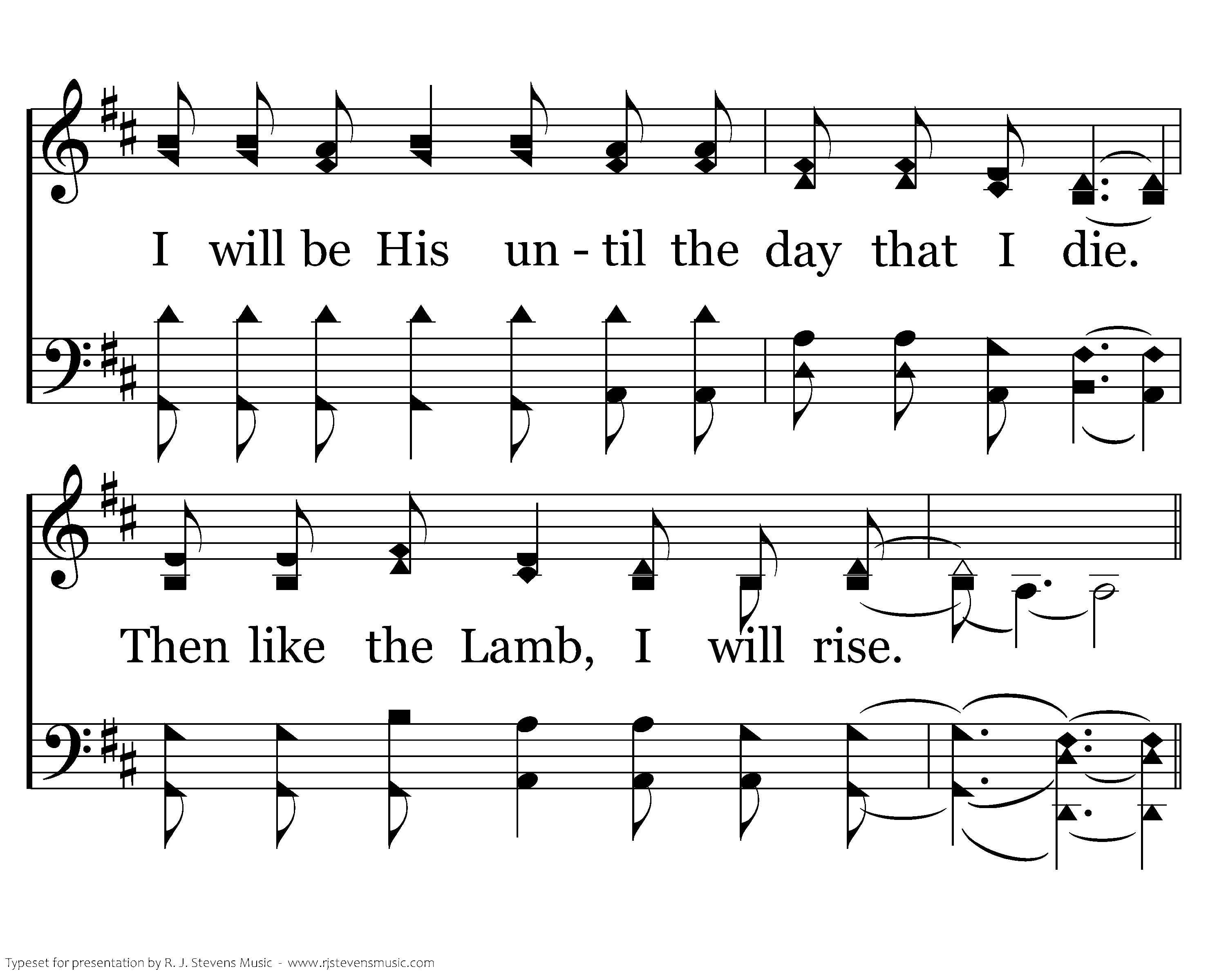 There is a time I'll go the way of the earth. My body buried in-side. I will be His until the day that I die. Then like the Lamb, I will rise.