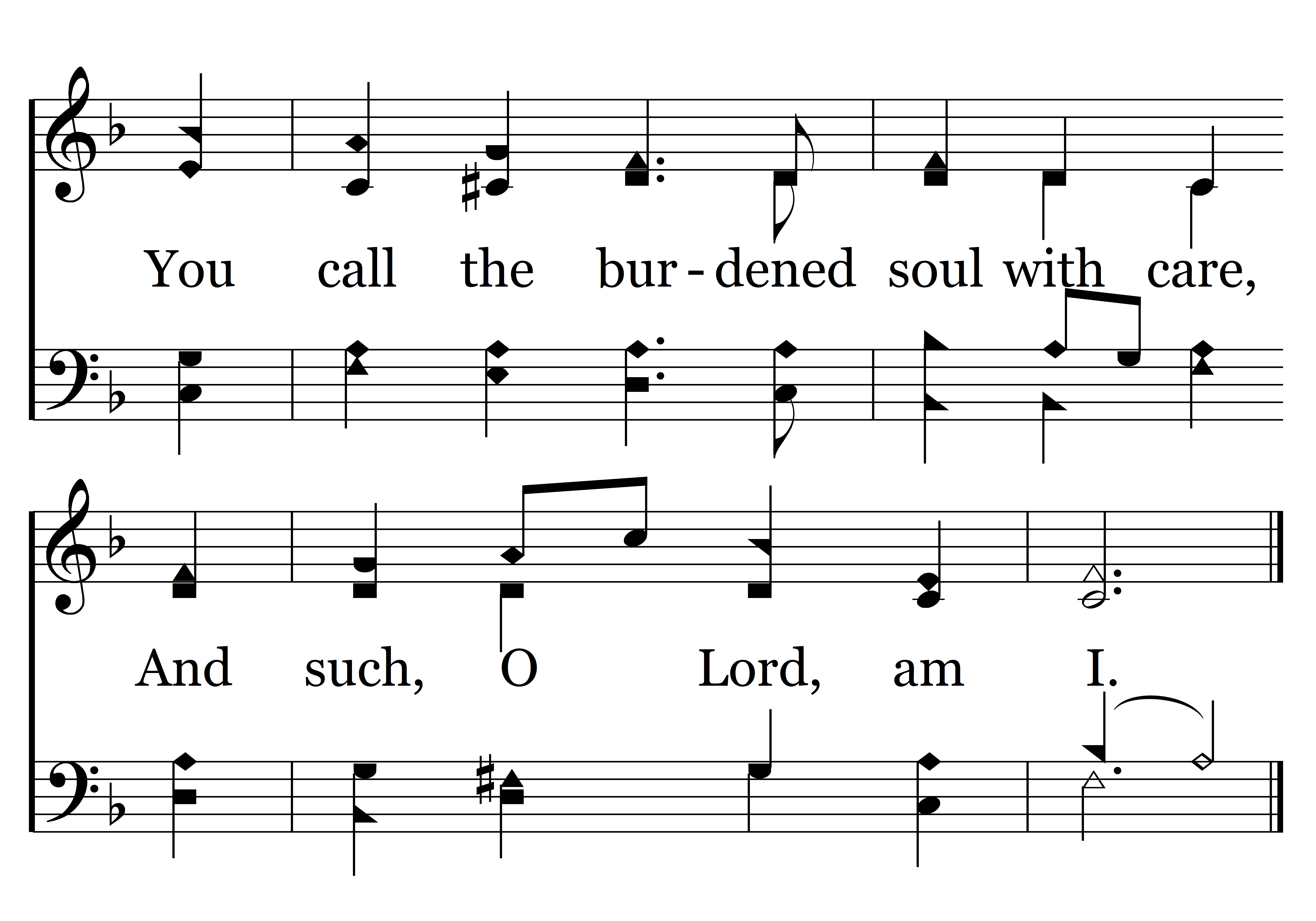 Your promise is my only prayer, With this I venture nigh: You call the burdened soul with care, And such, O Lord, am I.