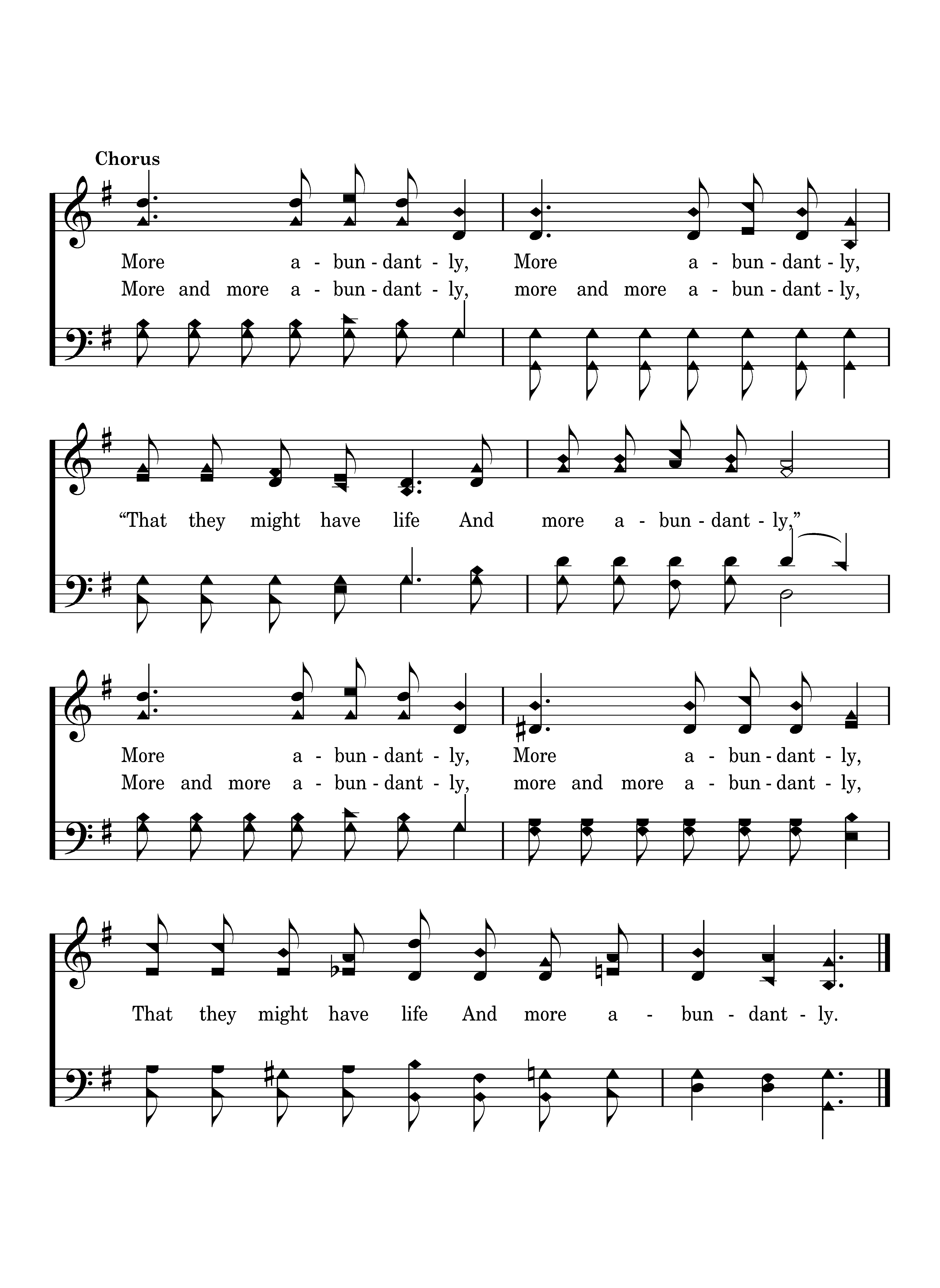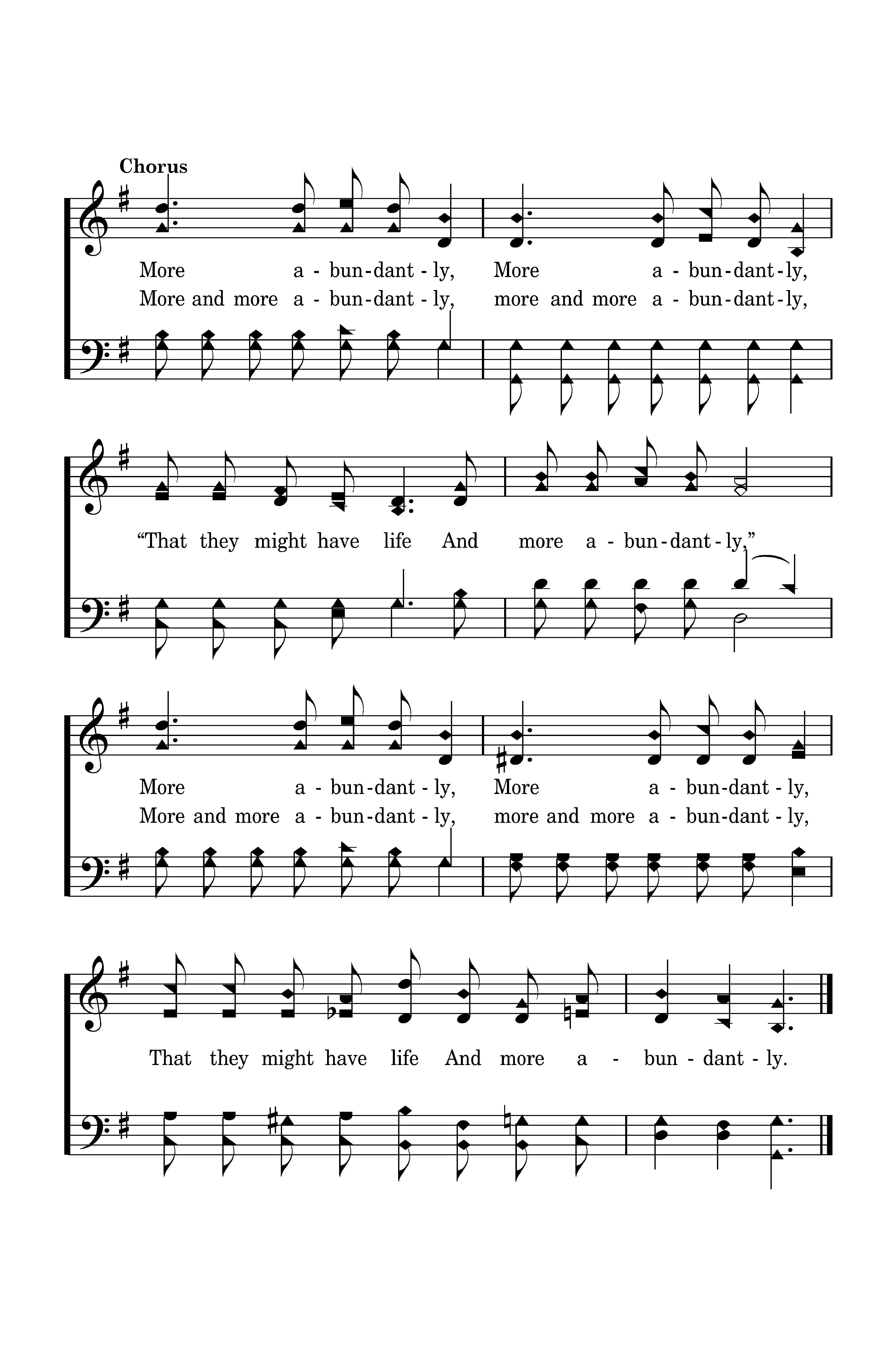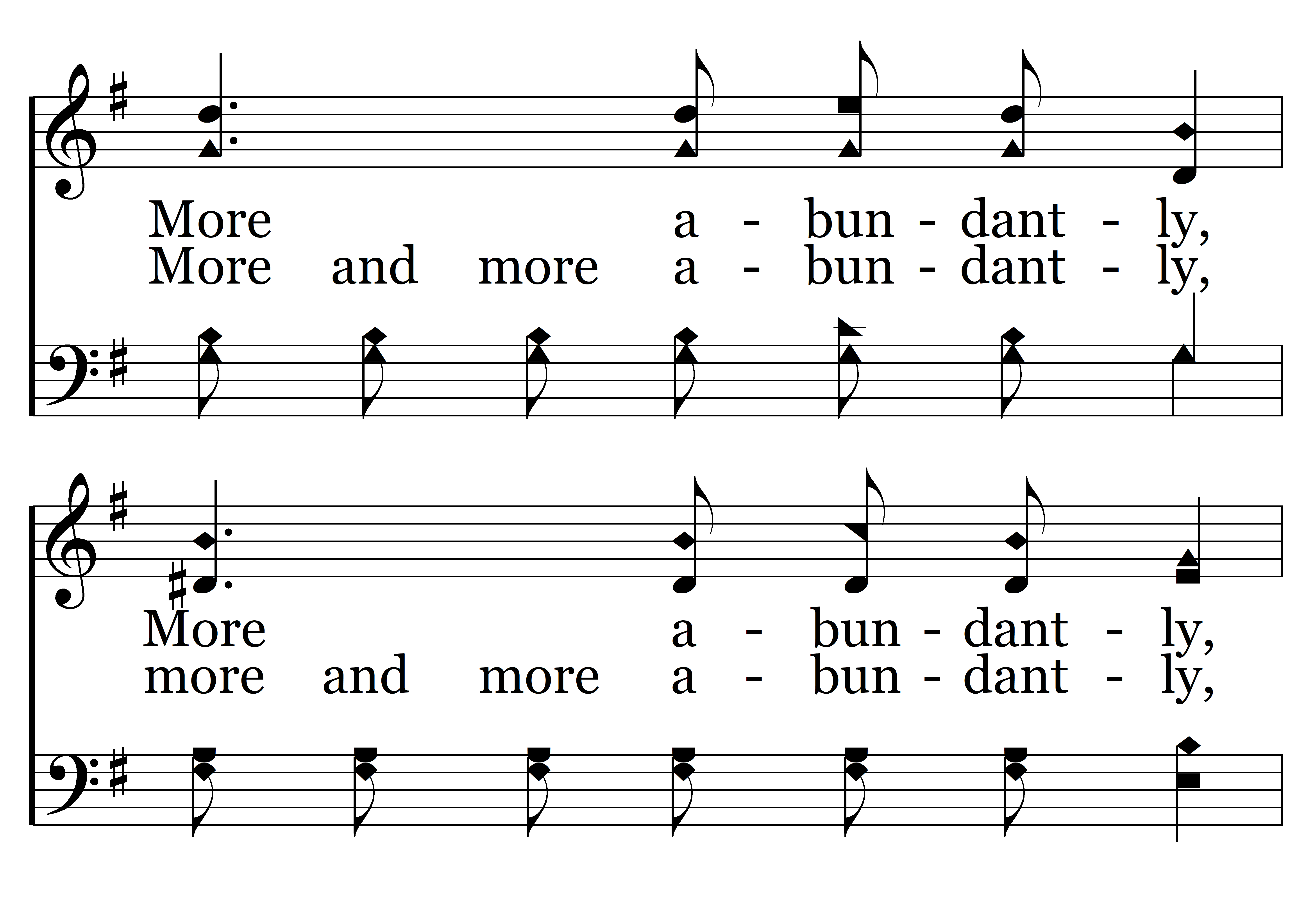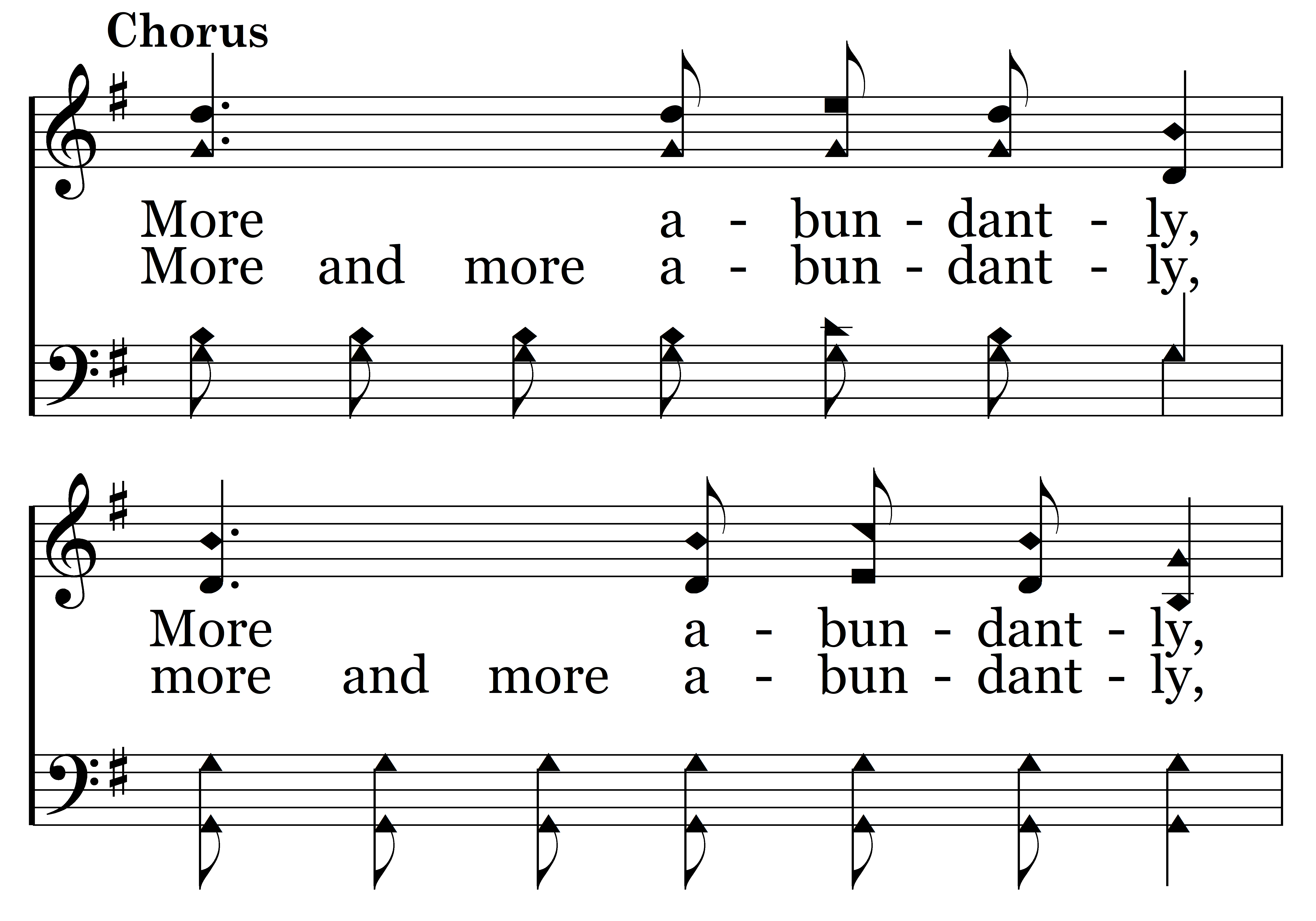 More abundantly, More abundantly, “That they might have life And more abundantly”; More abundantly, More abundantly, That they might have life And more abundantly. (More and more abundantly, more and more abundantly, More and more abundantly, more and more abundantly,)