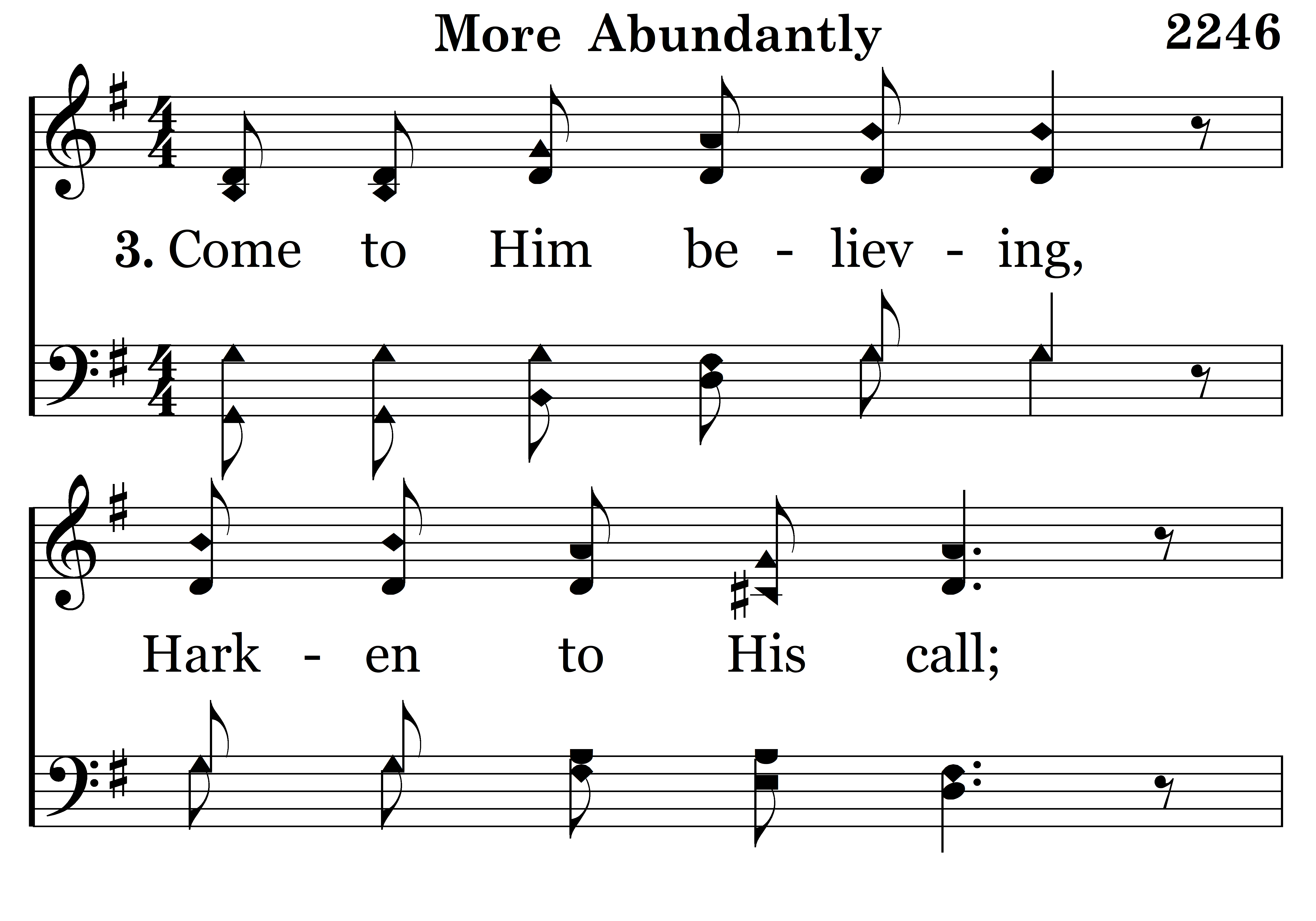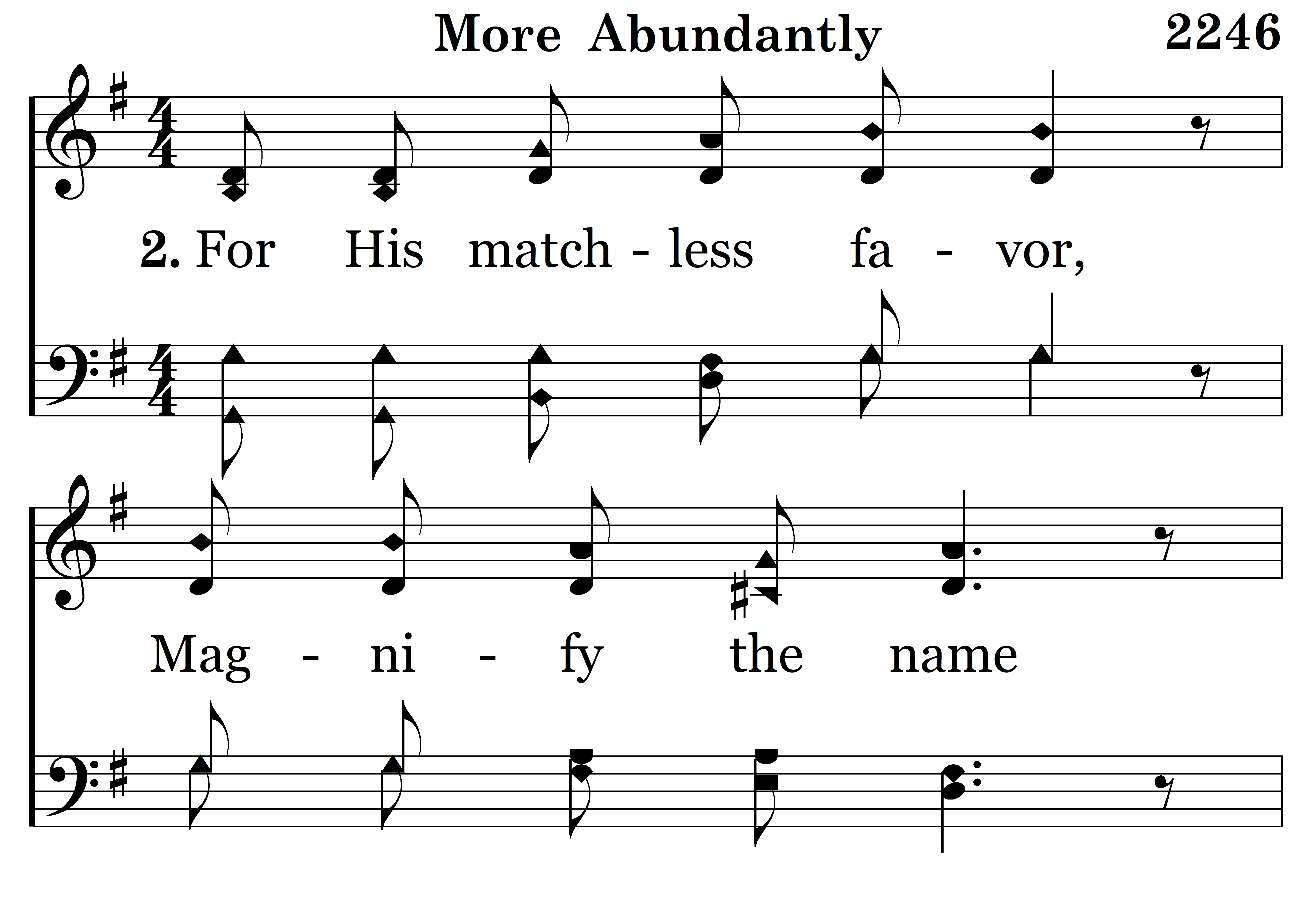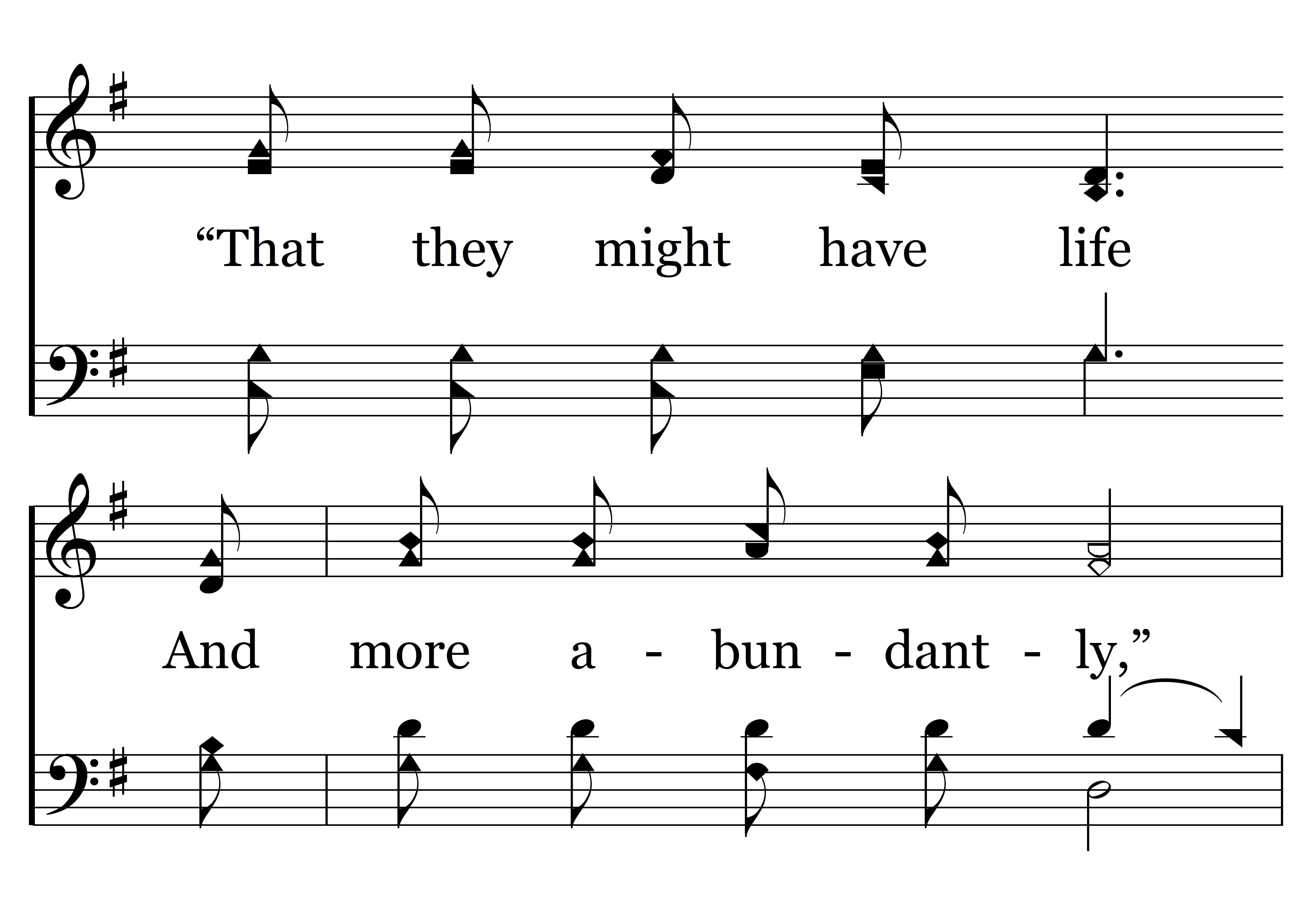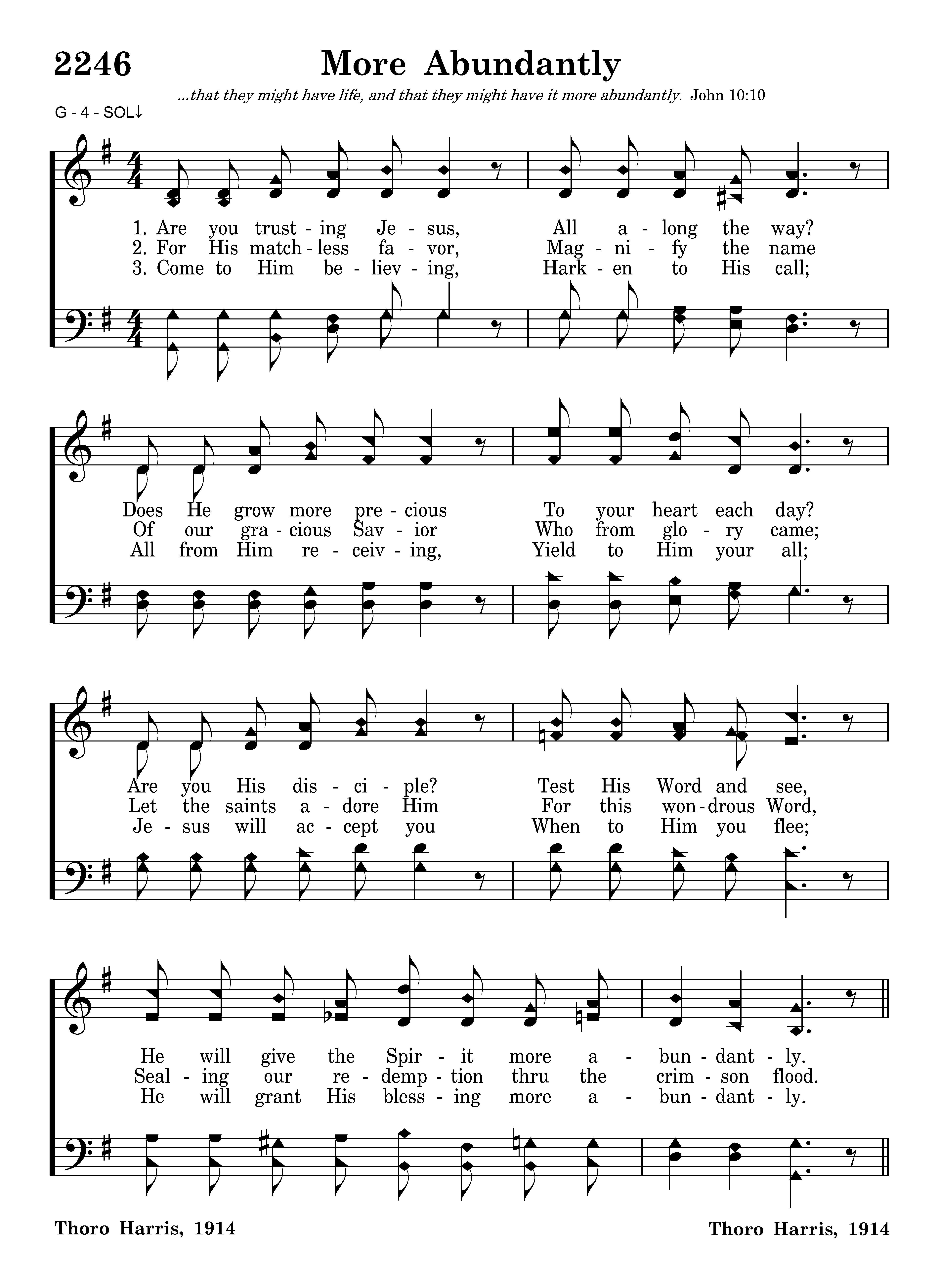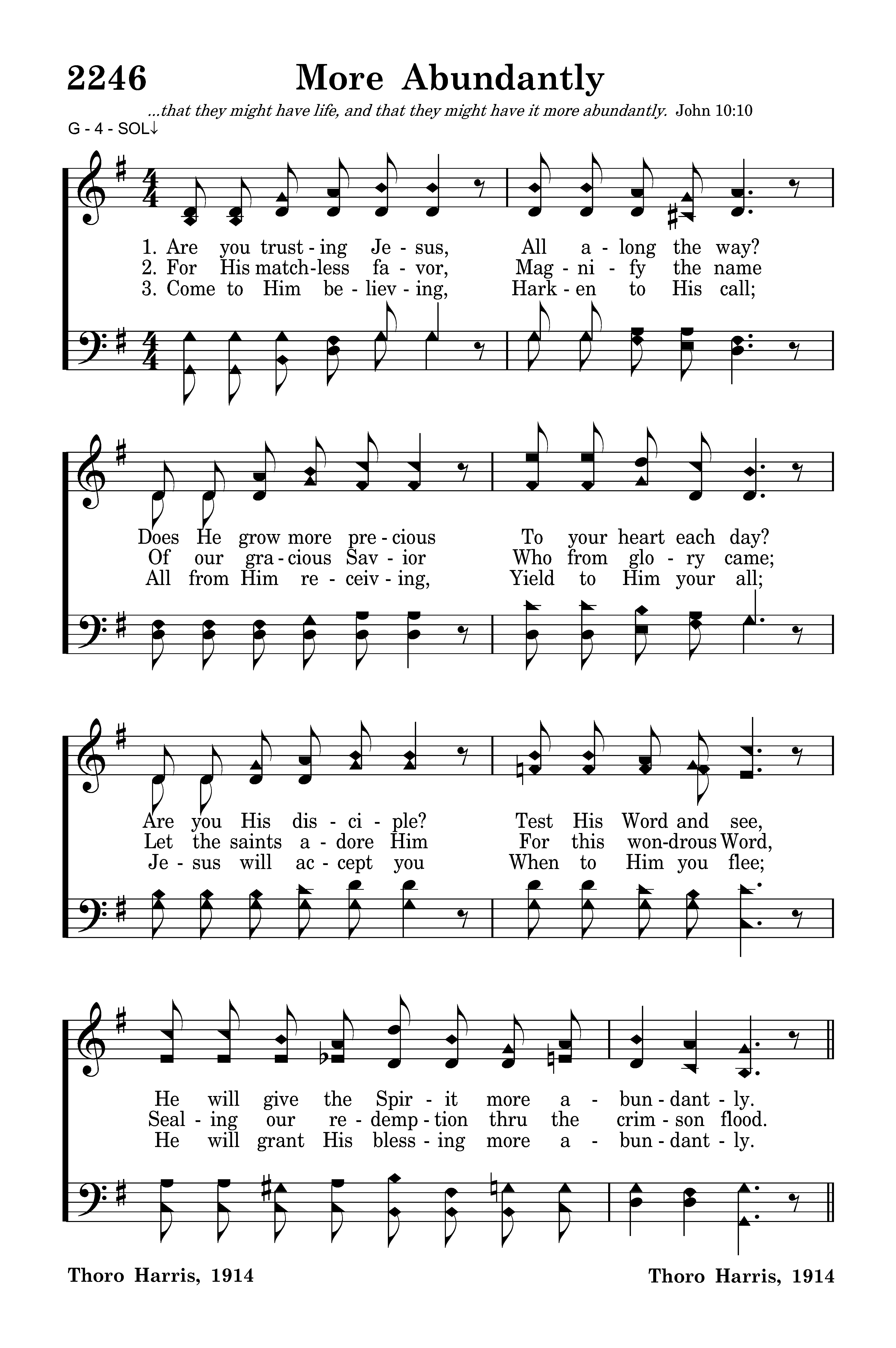 More abundantly, More abundantly, “That they might have life And more abundantly”; More abundantly, More abundantly, That they might have life And more abundantly. (More and more abundantly, more and more abundantly, More and more abundantly, more and more abundantly,)