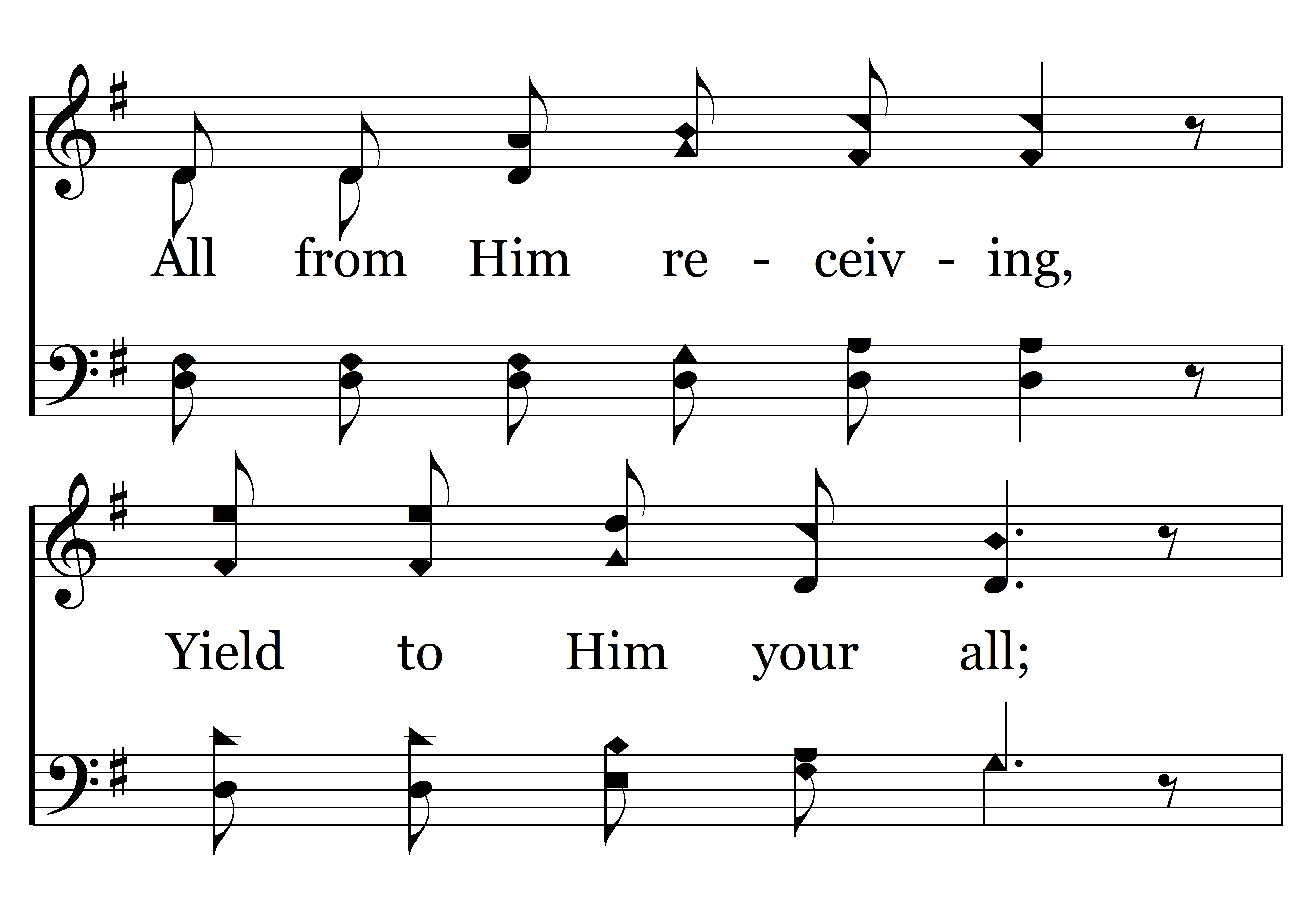 Come to Him believing, Harken to His call; All from Him receiving, Yield to Him your all; Jesus will accept you When to Him you flee; He will grant His blessing more abundantly.
