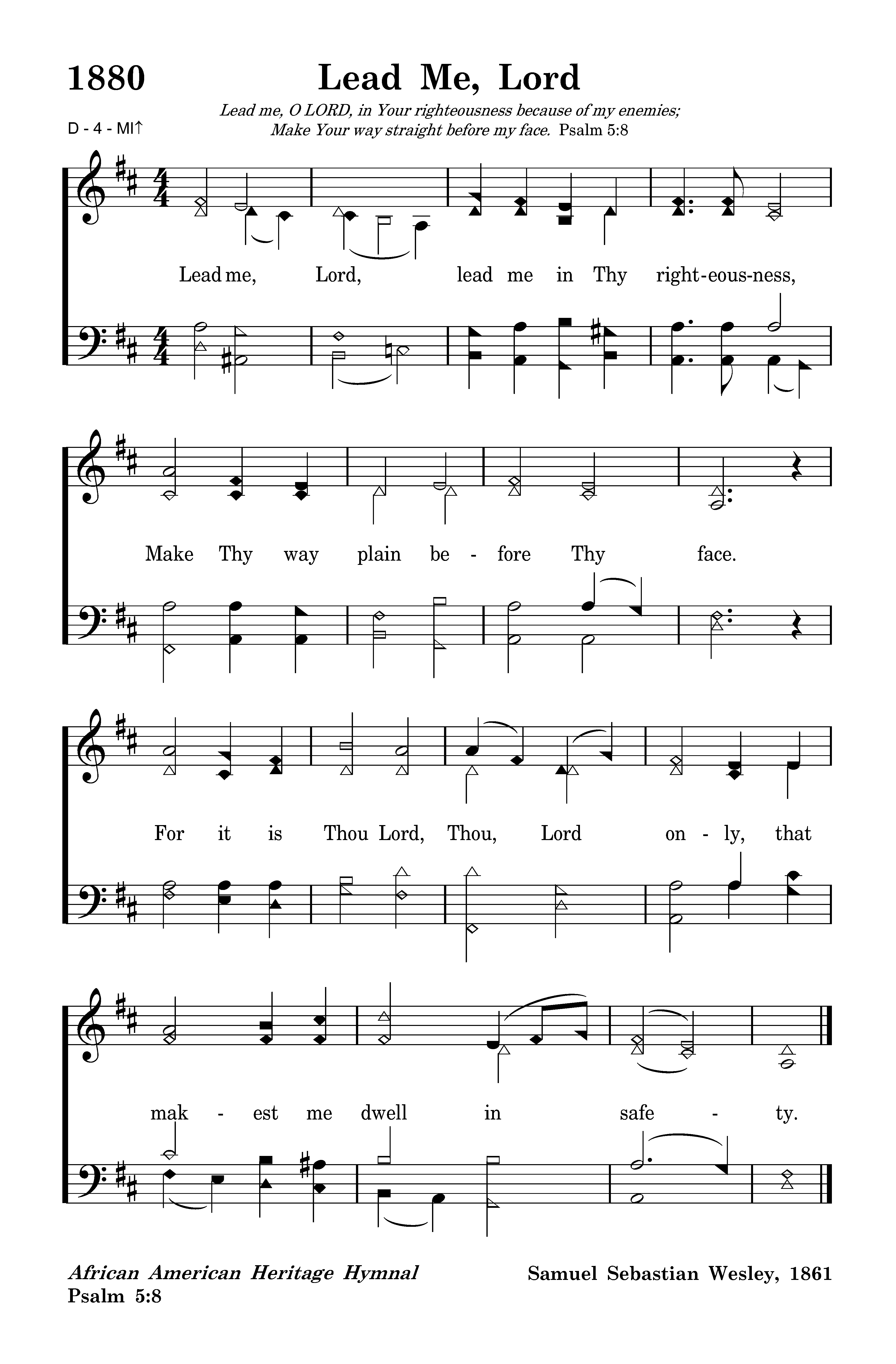 Lead me, Lord, lead me in Thy righteousness, Make Thy way plain before Thy face. For it is Thou Lord, Thou, Lord only, that makest me dwell in safety.
