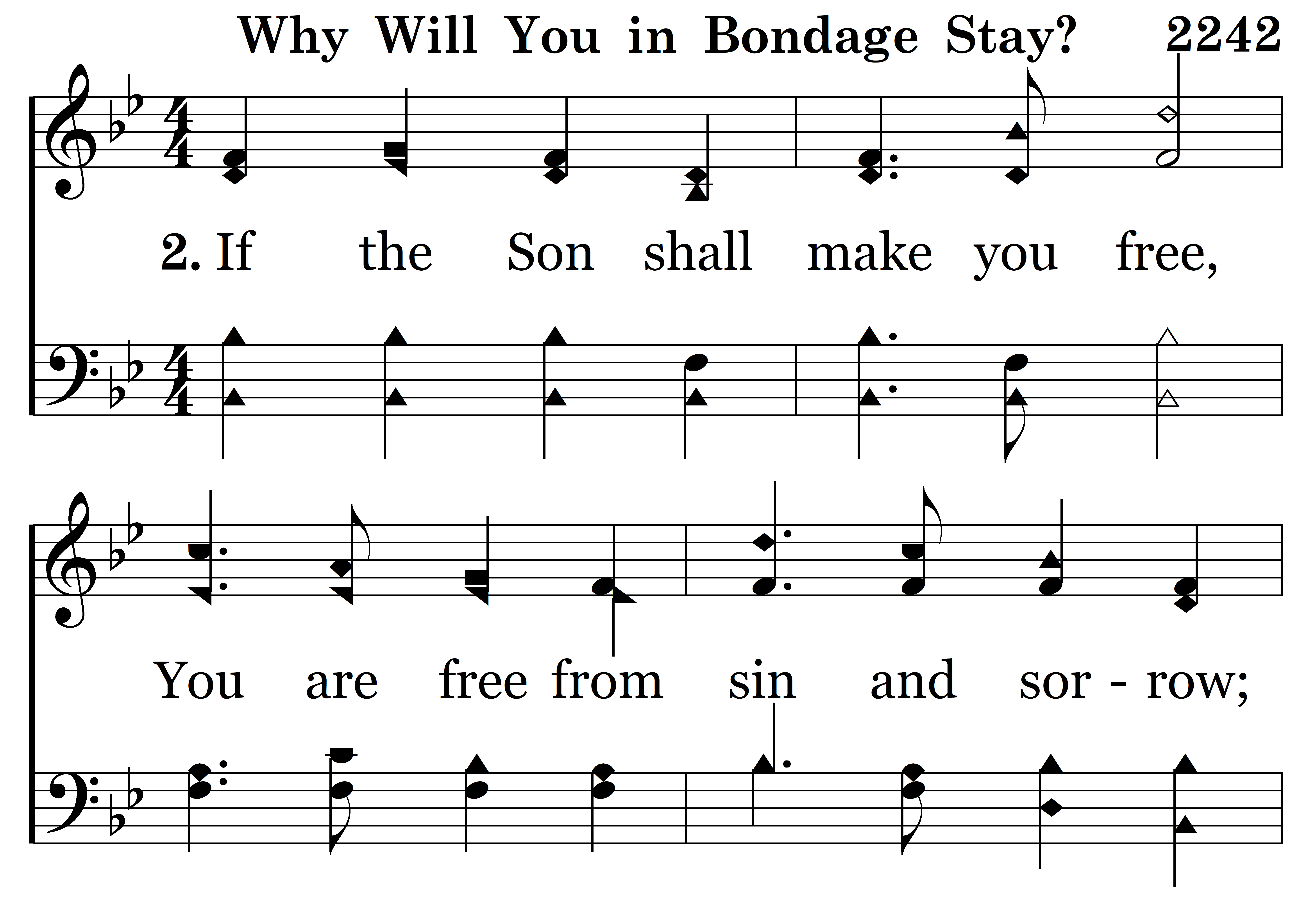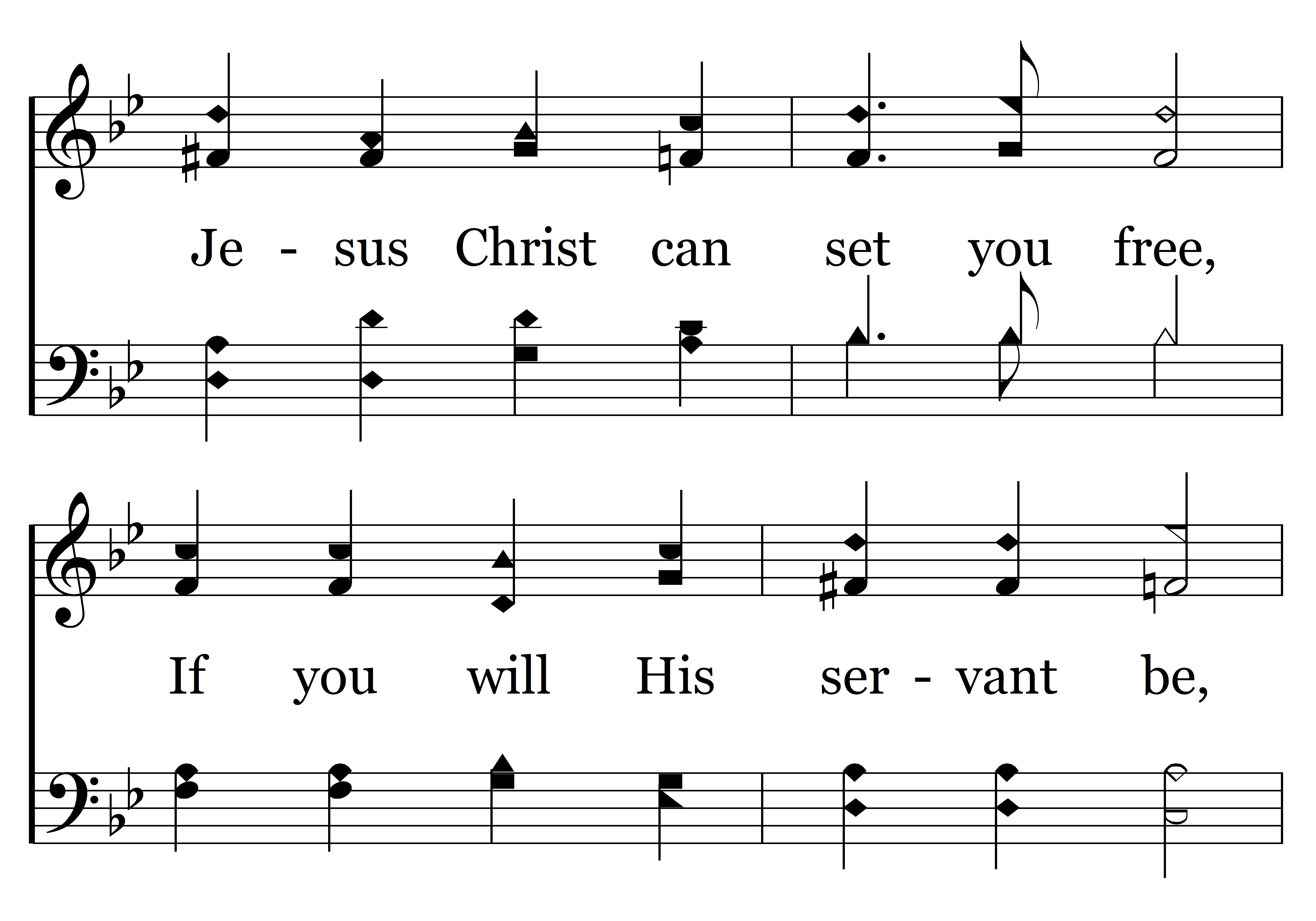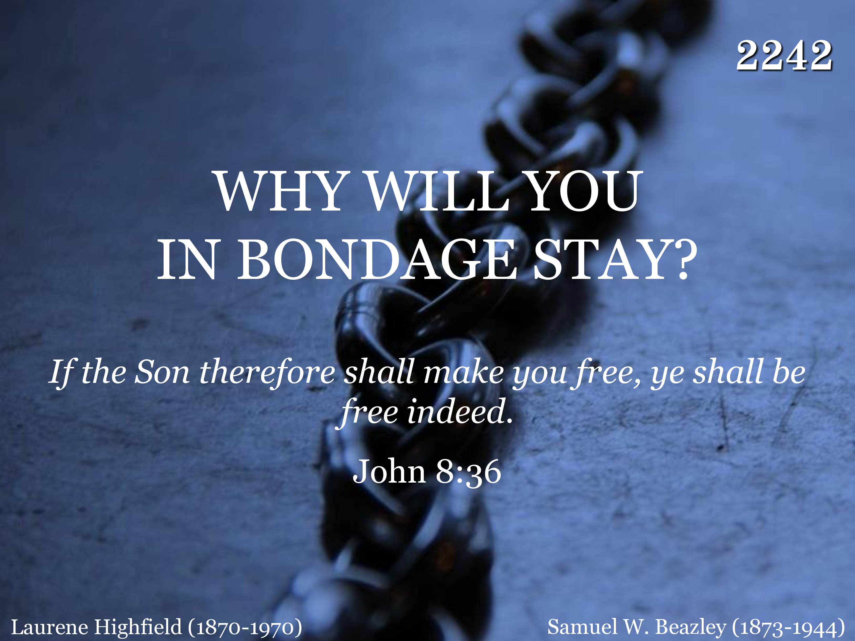 If the Son shall make you free, You are free from sin and sorrow; Christ can give you liberty, If you will obey. He your shackles will remove, He your friend will ever prove, Why will you in bondage stay? Ask His help today.