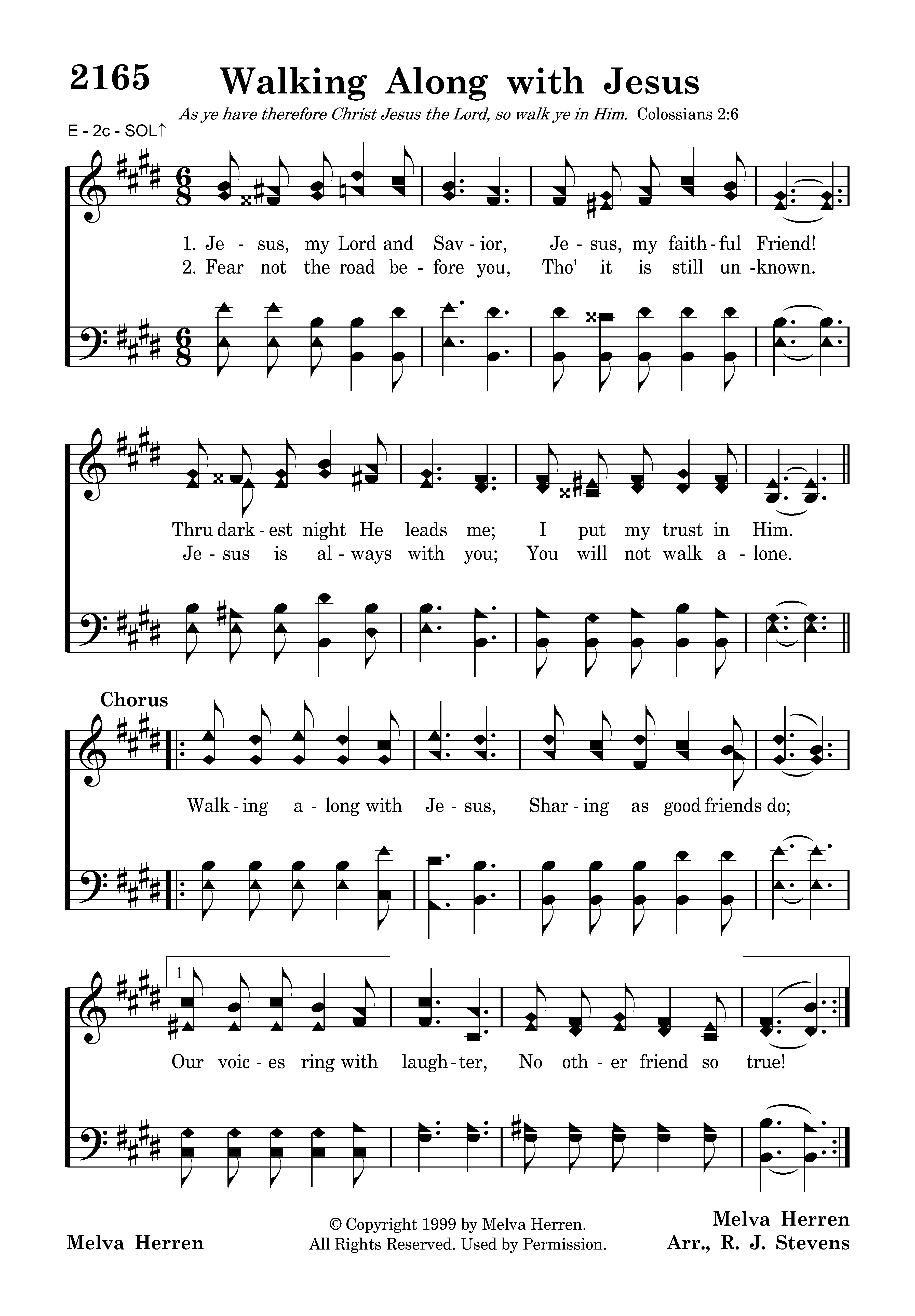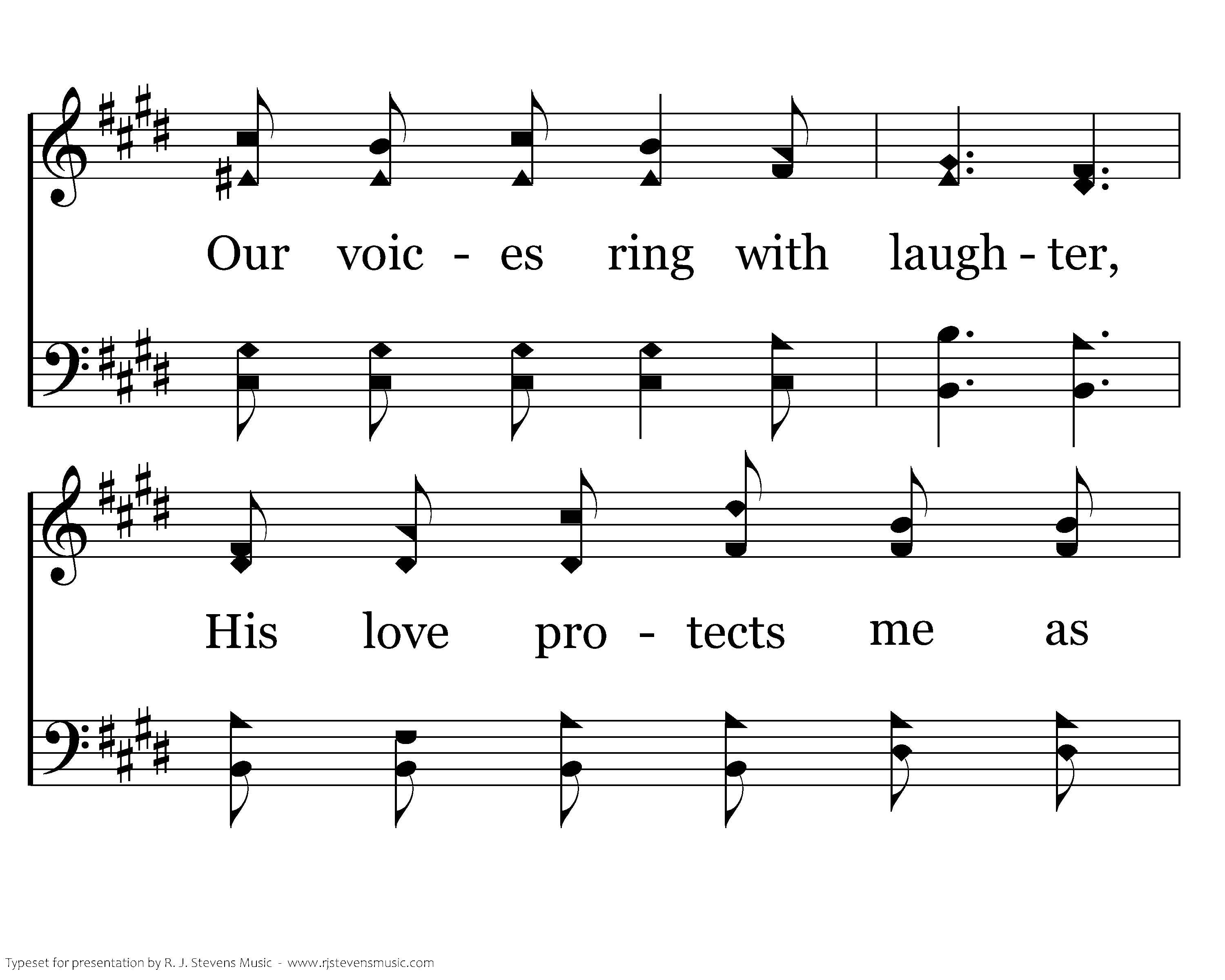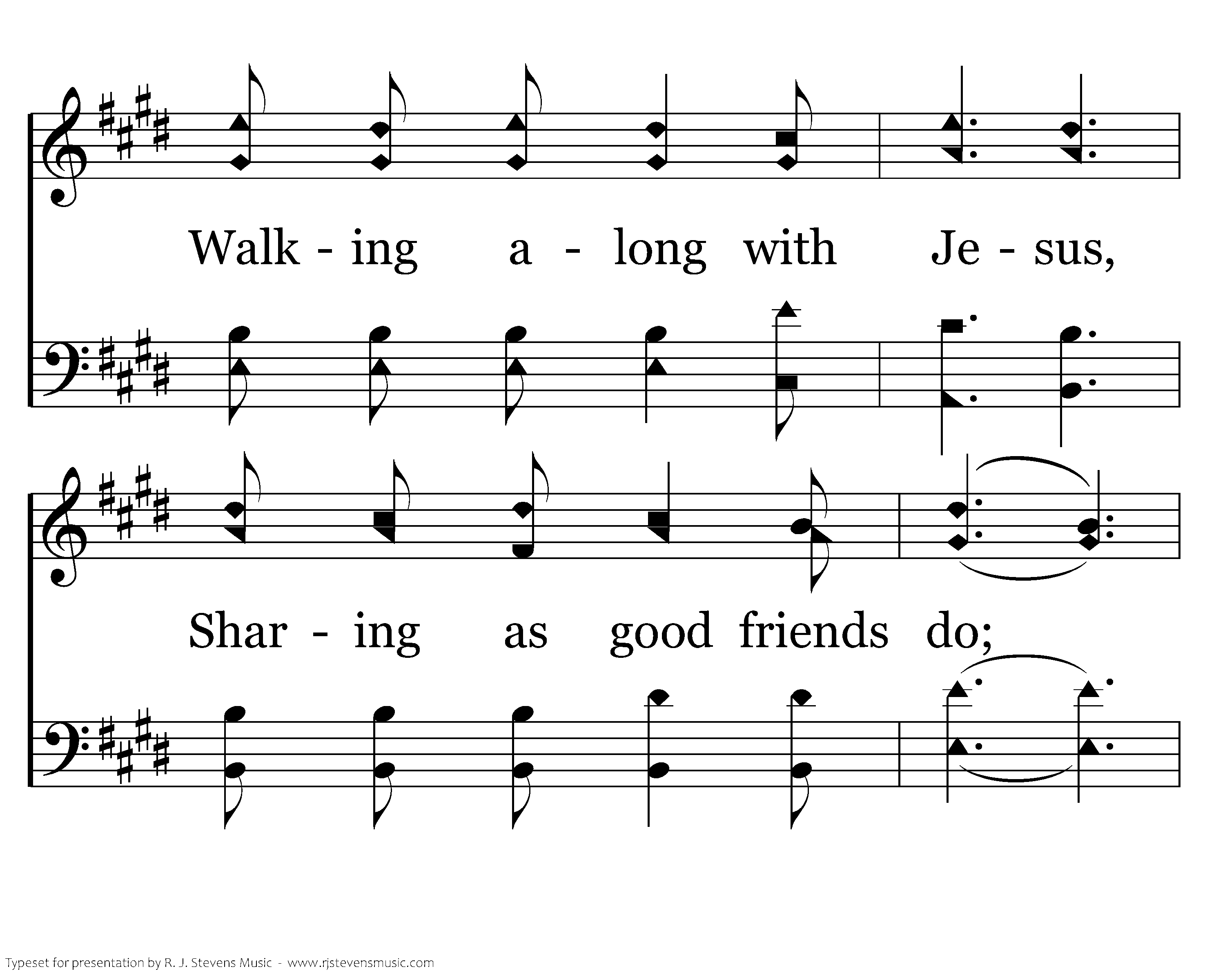 Walking along with Jesus, Sharing as good friends do; Our voices ring with laughter, No other friend so true! Walking along with Jesus, Sharing as good friends do; Our voices ring with laughter, His love protects me as we walk unendingly.