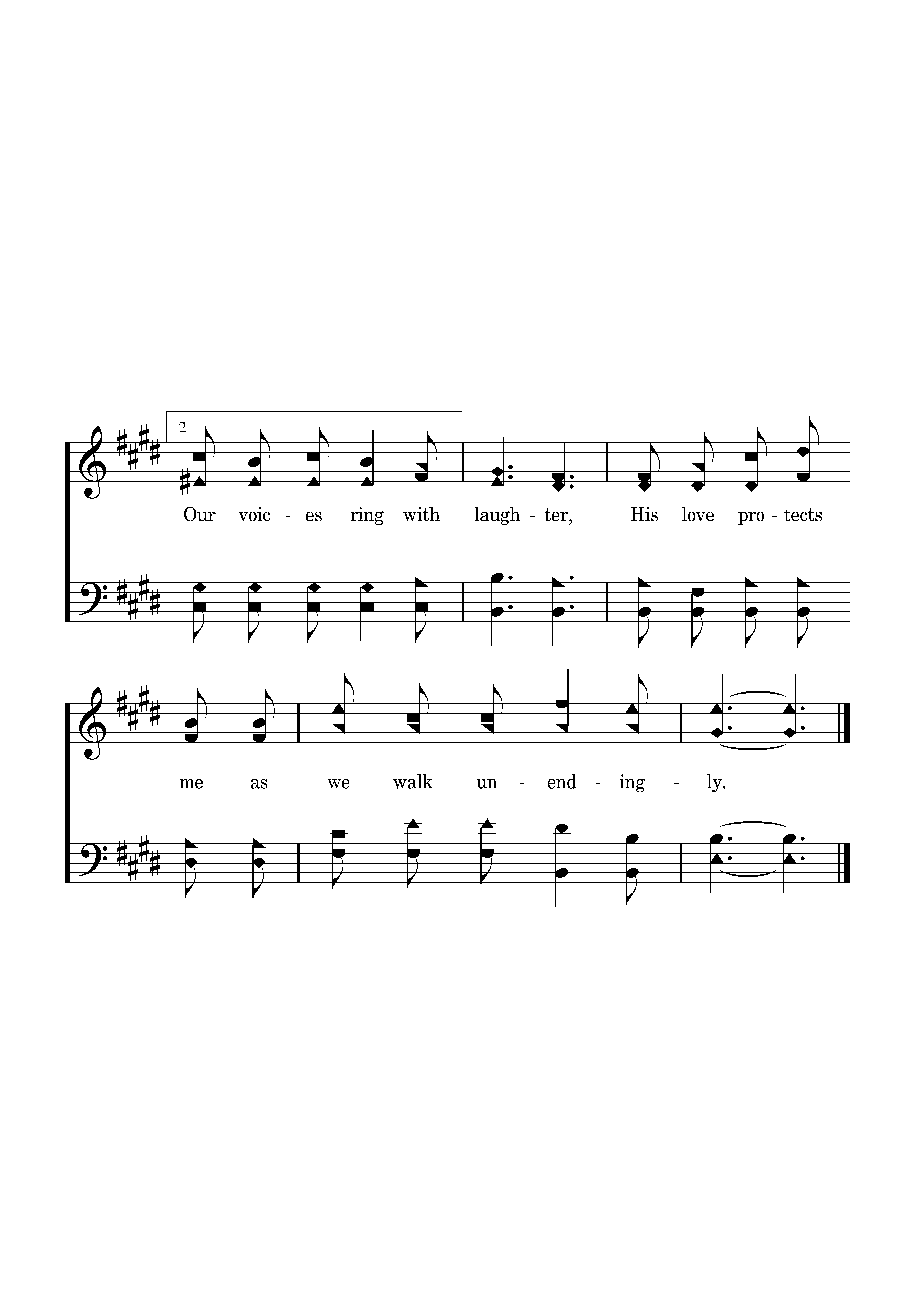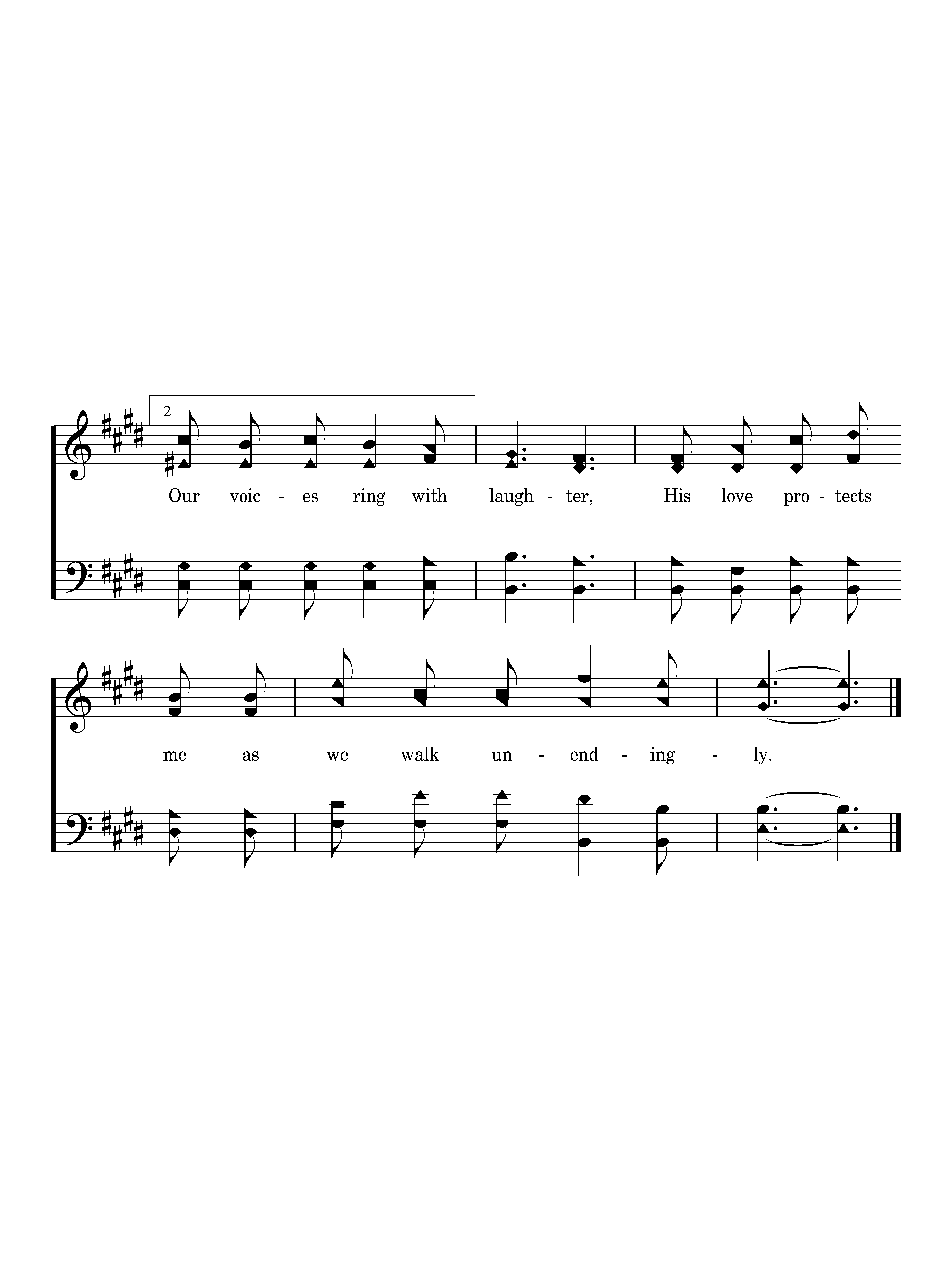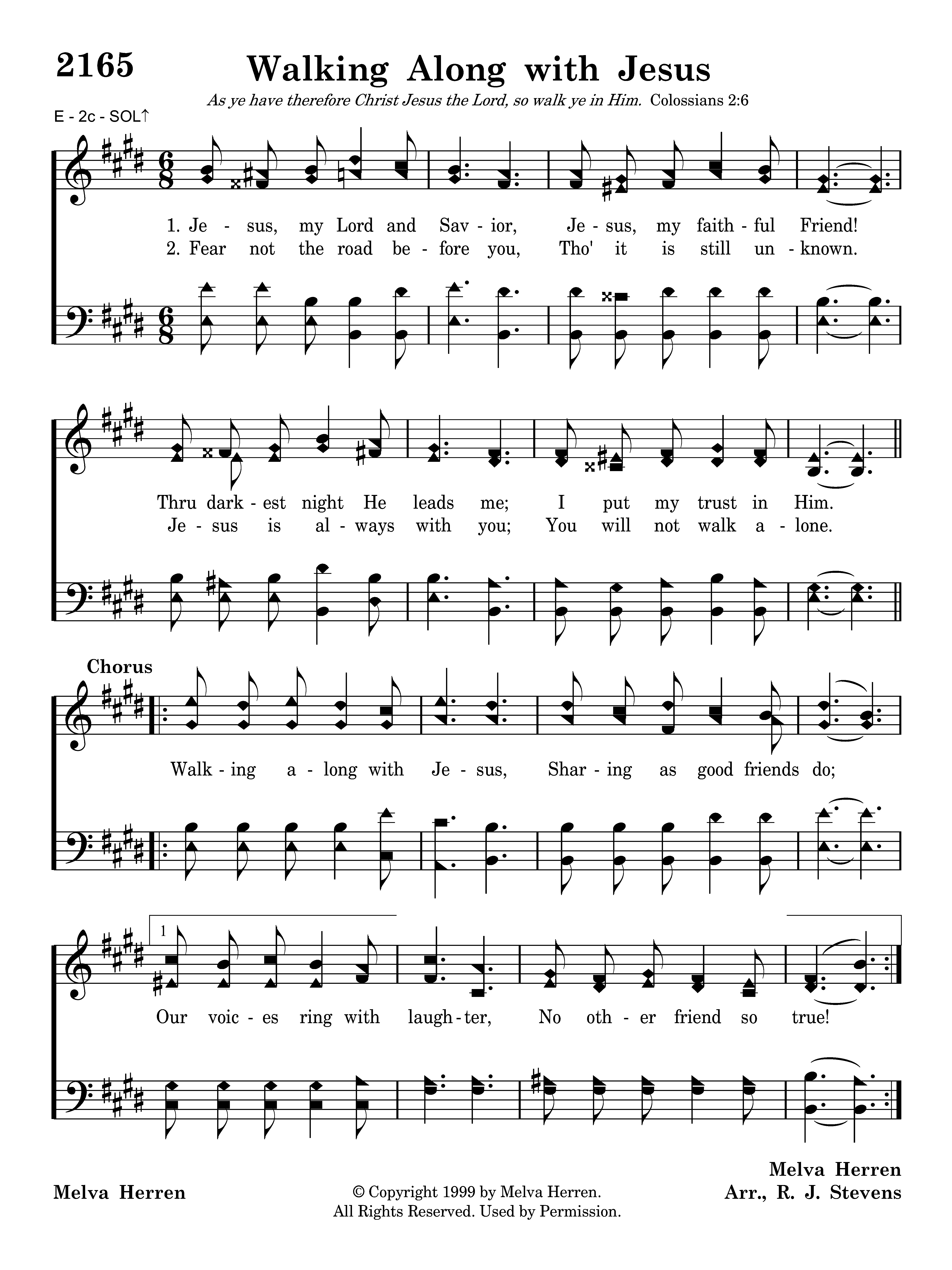 Walking along with Jesus, Sharing as good friends do; Our voices ring with laughter, No other friend so true! Walking along with Jesus, Sharing as good friends do; Our voices ring with laughter, His love protects me as we walk unendingly.