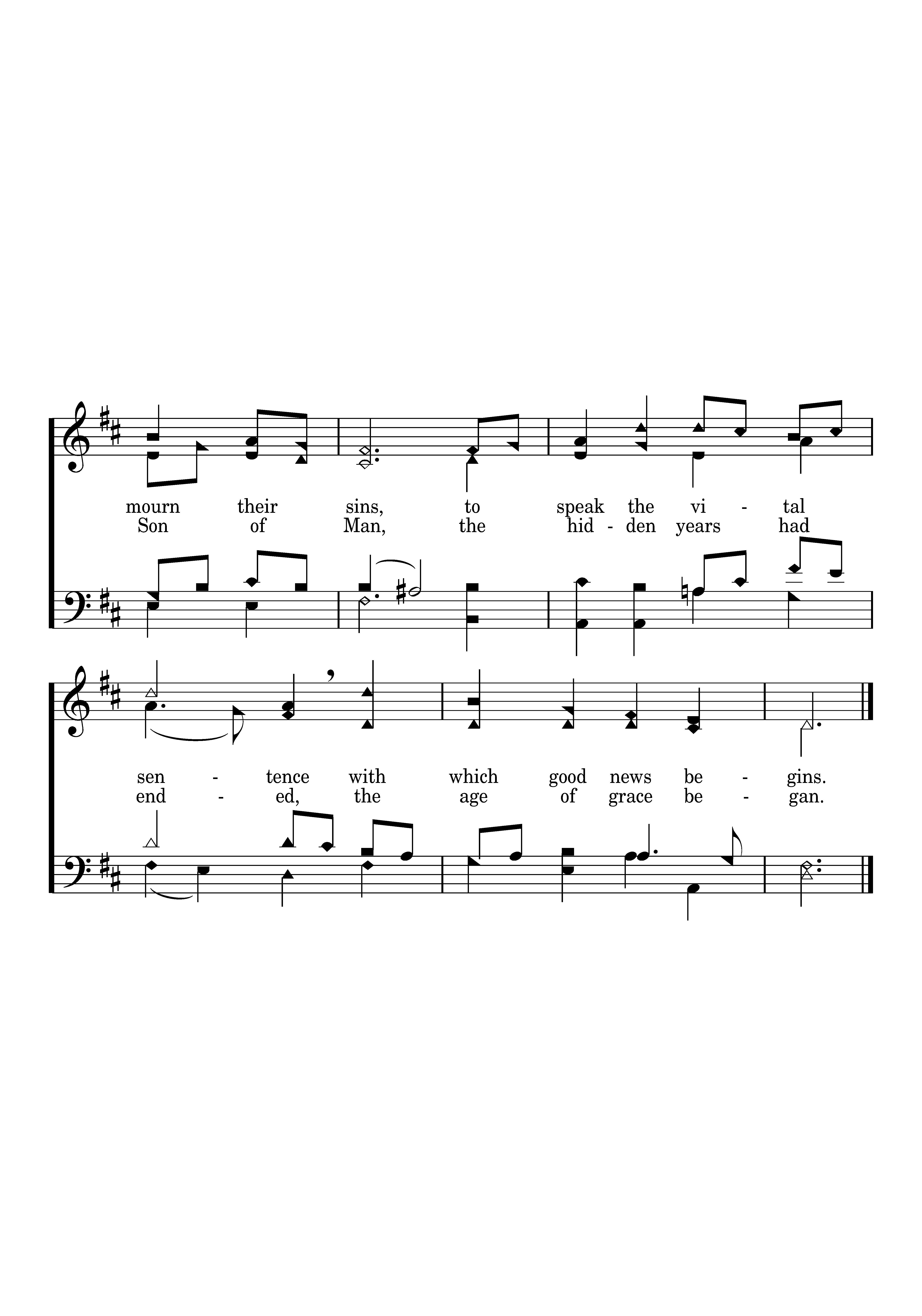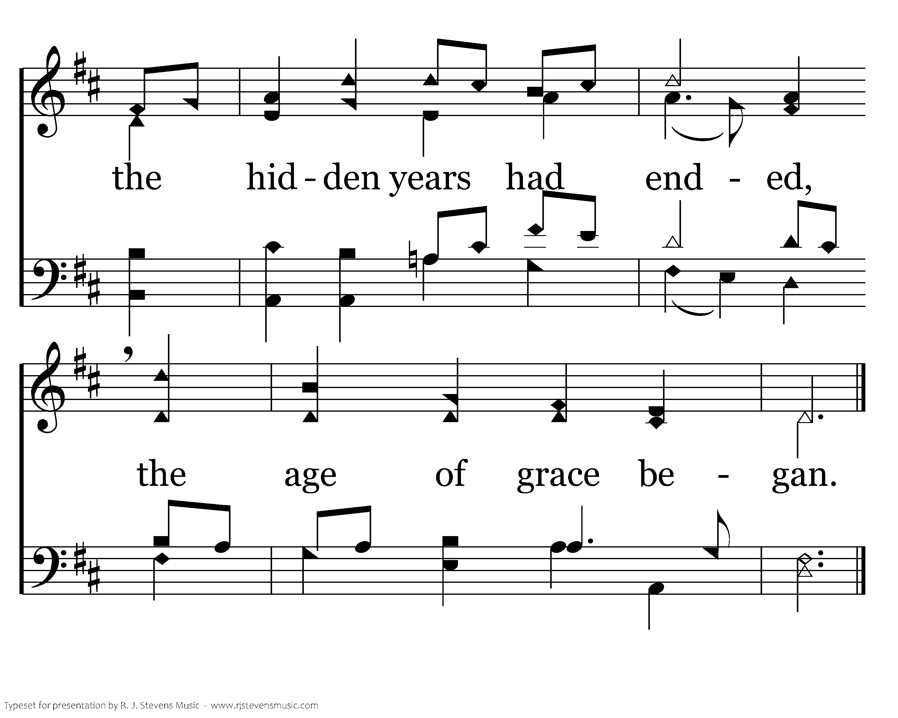 He came to share temptation, our utmost woe and loss, for us and our salvation to die upon the cross. So when the Dove descended on Him, the Son of Man, the hidden years had ended, the age of grace began.