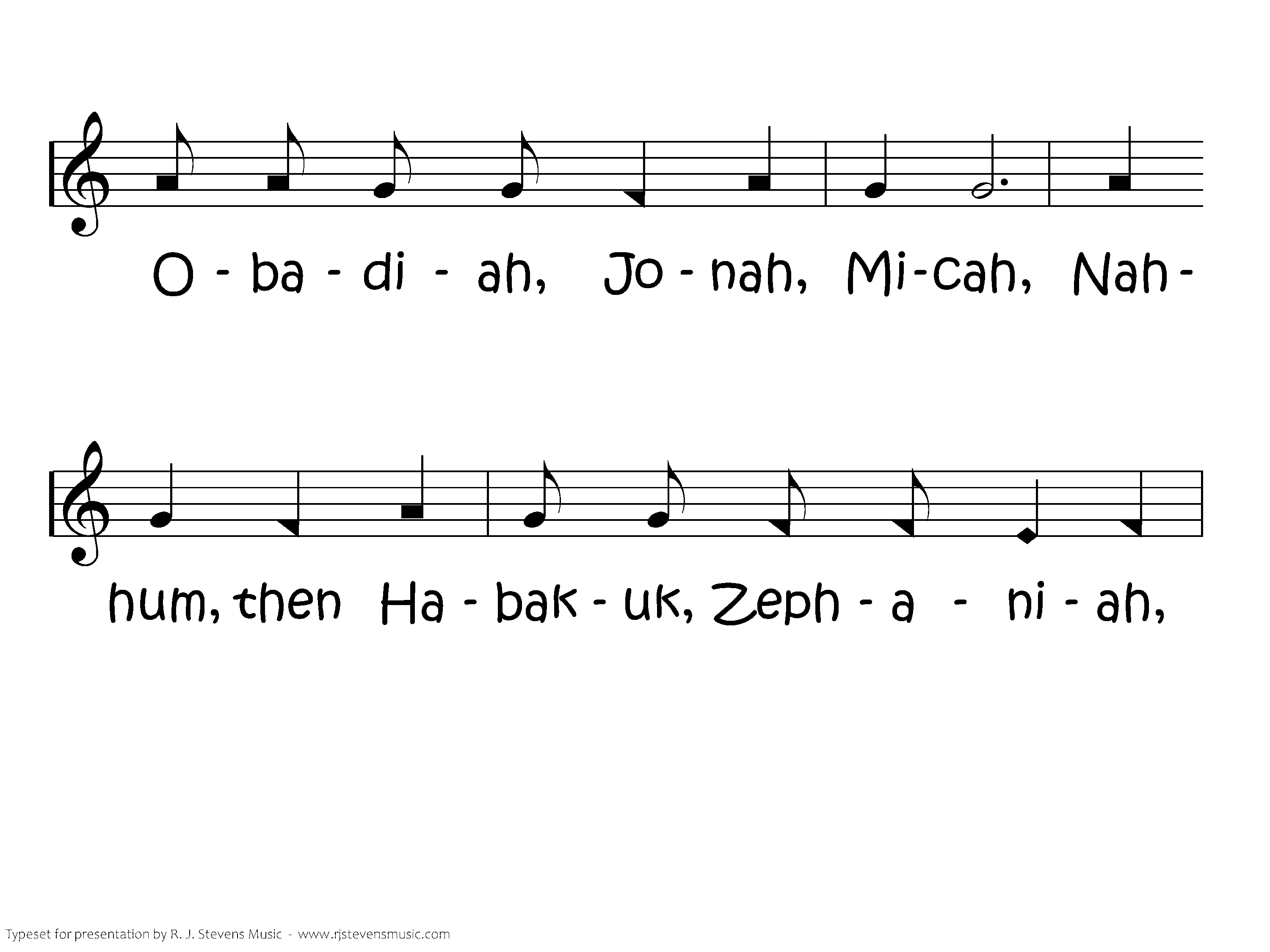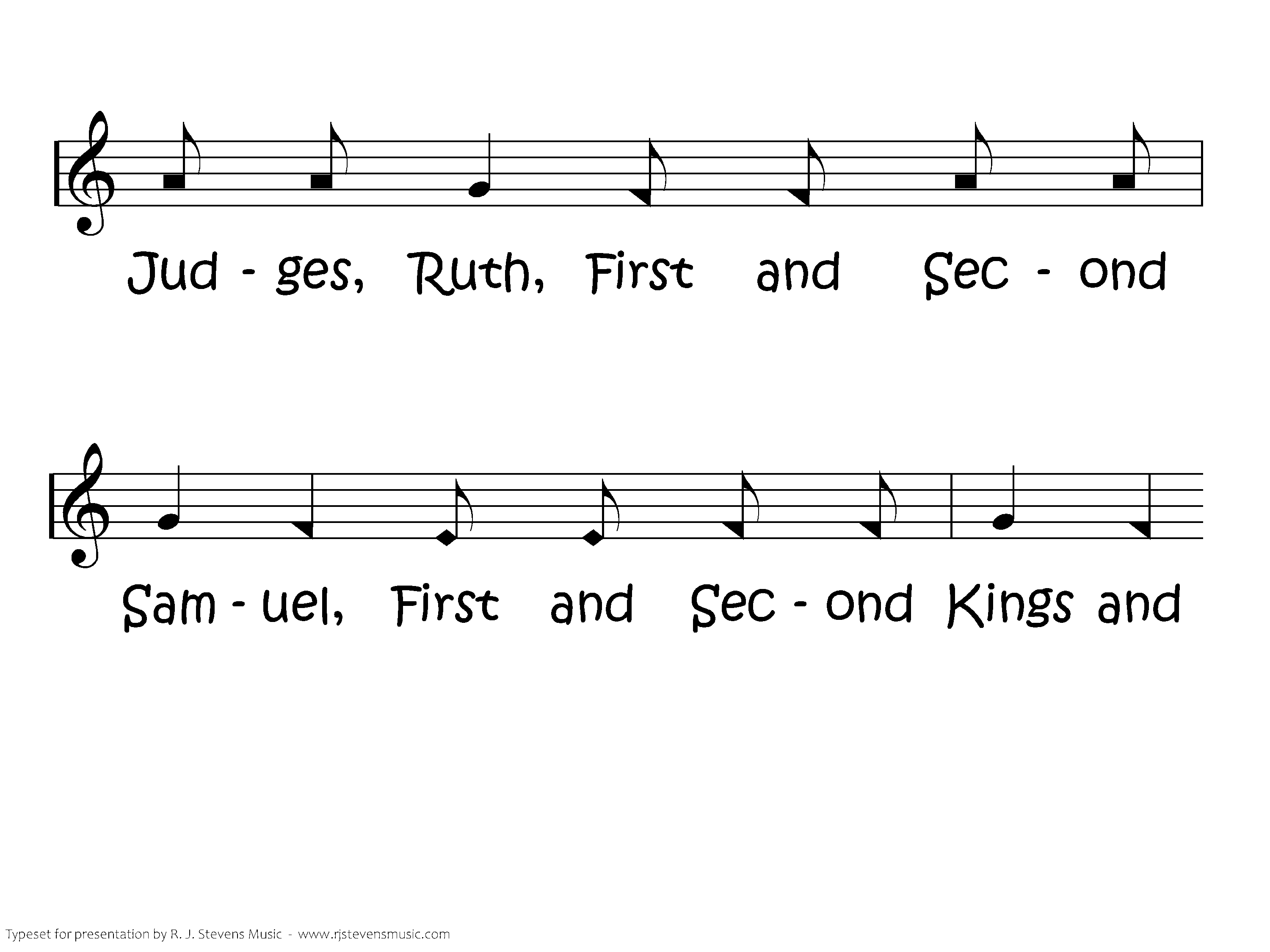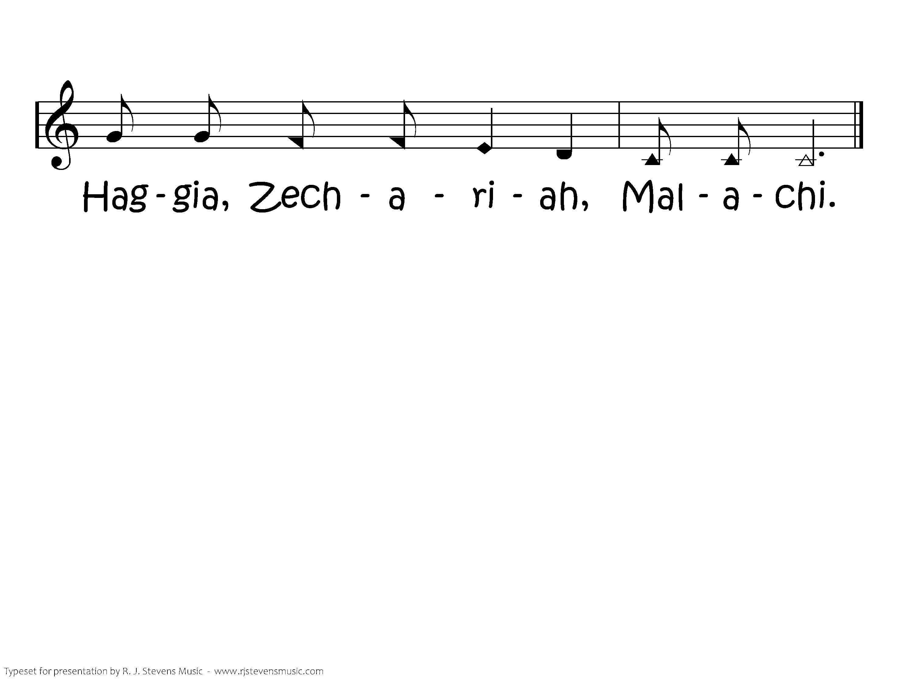Genesis, Exodus, Leviticus, Numbers, Deuteronomy and Joshuah, Judges, Ruth, First and Second Samuel, First and Second Kings and First and Second Chronicles. Ezra, Nehemiah, Esther, Job, Psalms, Proverbs and Ecclesiastes, Song of Solomon, Isaiah, Jeremiah, Lamentations and Ezekiel. Daniel, Hosea, Joel and Amos, Obadiah, Jonah, Micah, Nahhum, then Habakuk, Zephaniah, Haggia, Zechariah, Malachi.