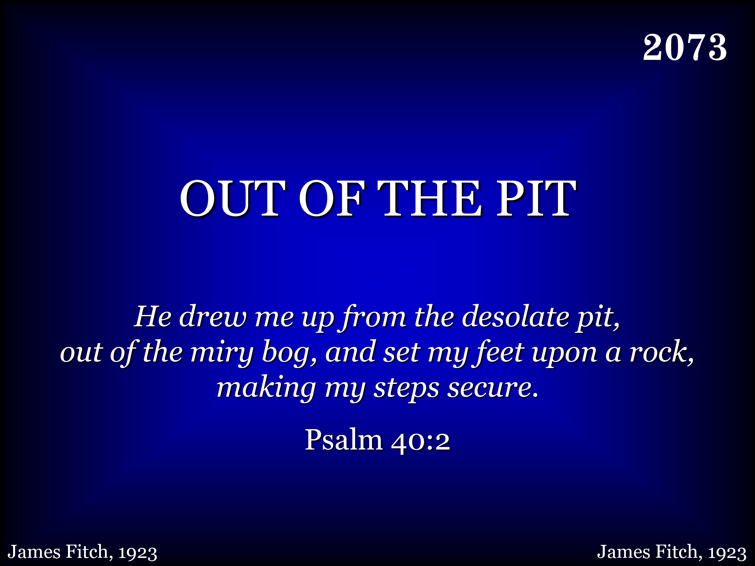 He took me out of the pit, And from the miry clay, He set my feet on a rock, Establishing my way; He put a song in my mouth, Our God to magnify, And He’ll take me some day to His home on high.