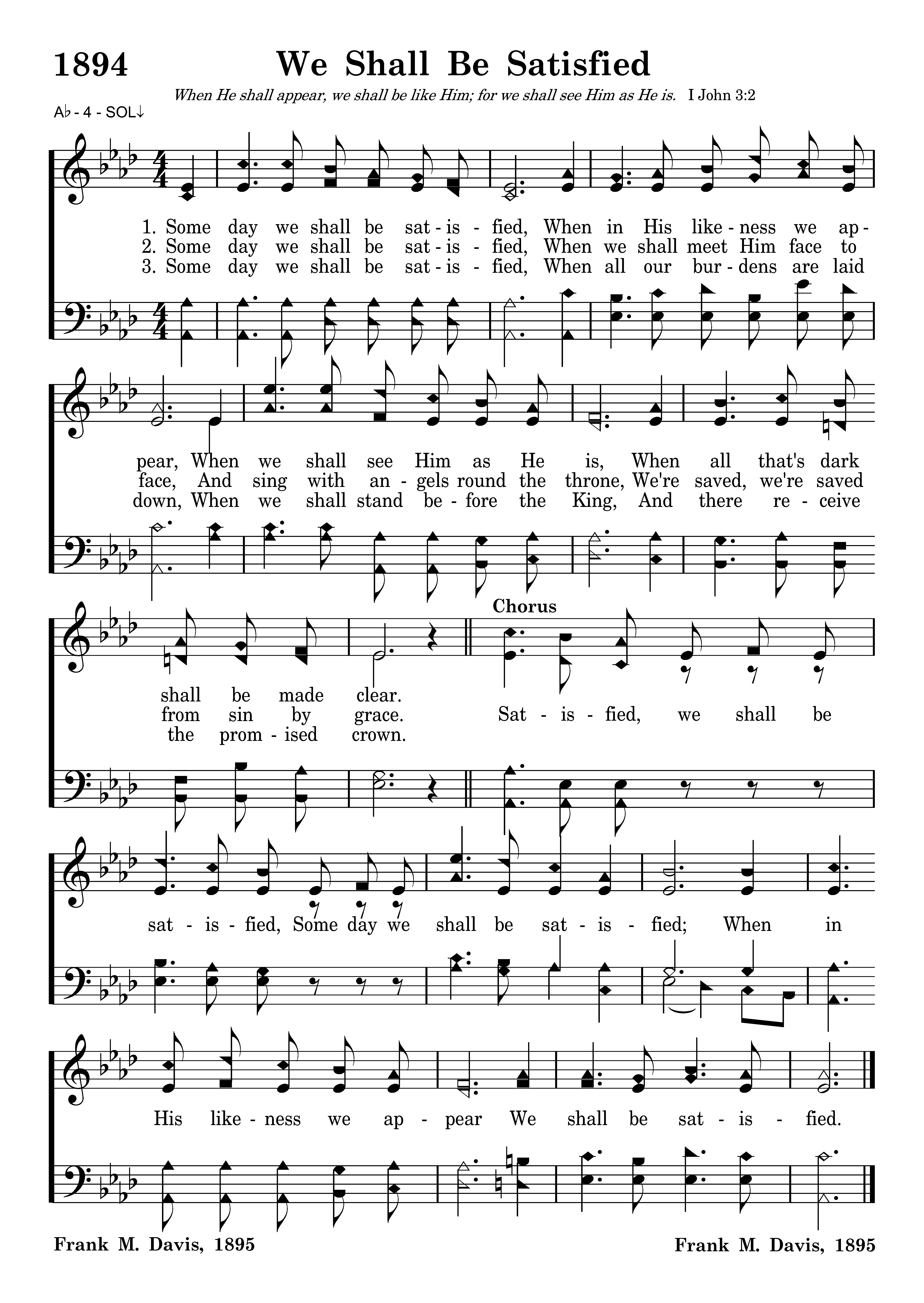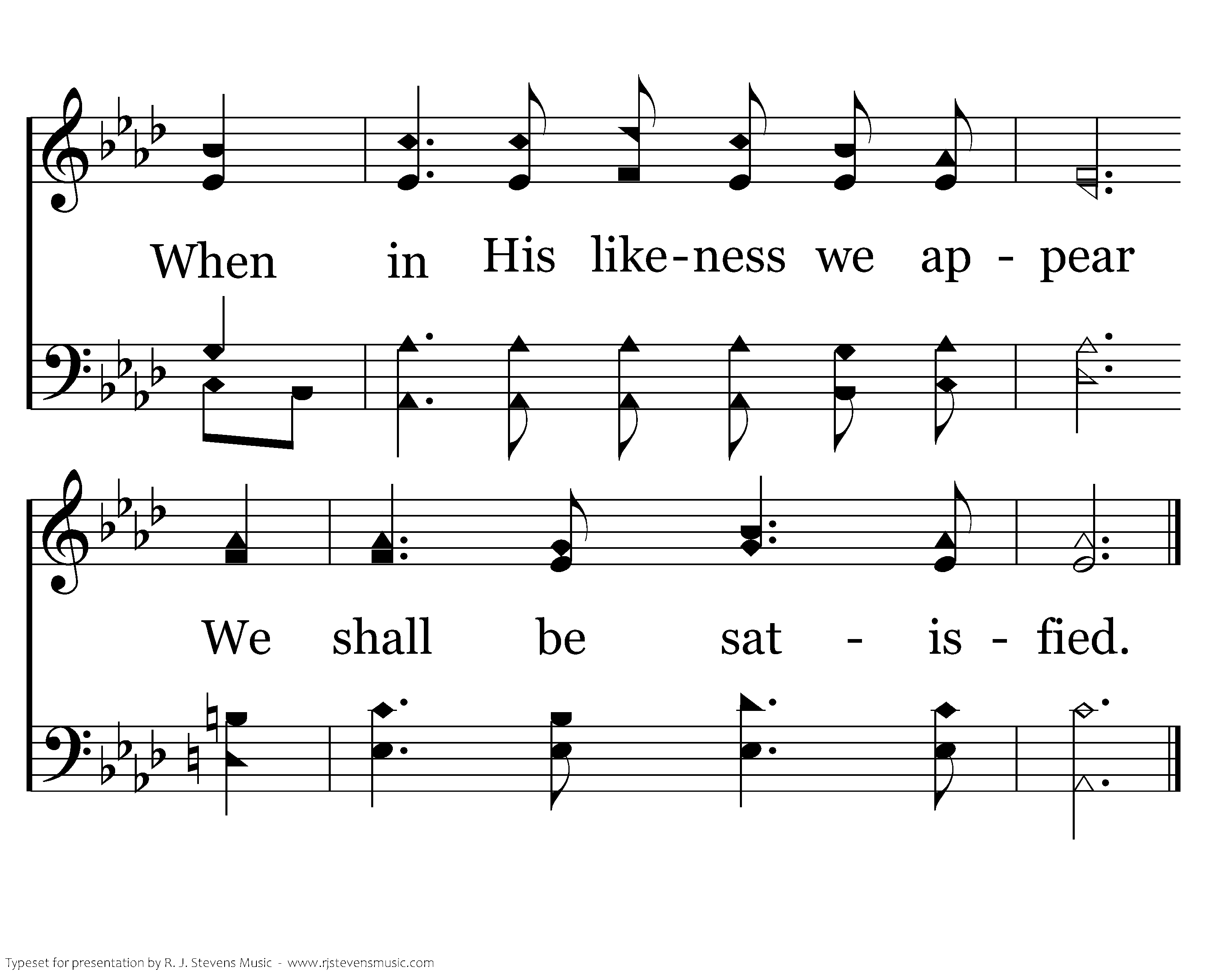 Satisfied, we shall be satisfied, Some day we shall be satisfied; When in His likeness we appear We shall be satisfied.