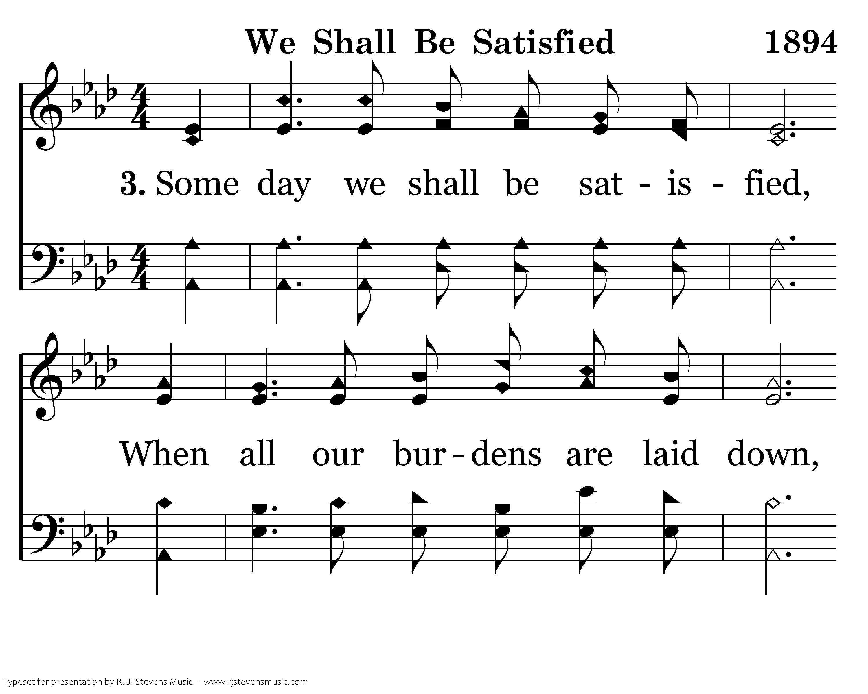 Some day we shall be satisfied, When all our burdens are laid down, When we shall stand before the King, And there receive the promised crown.