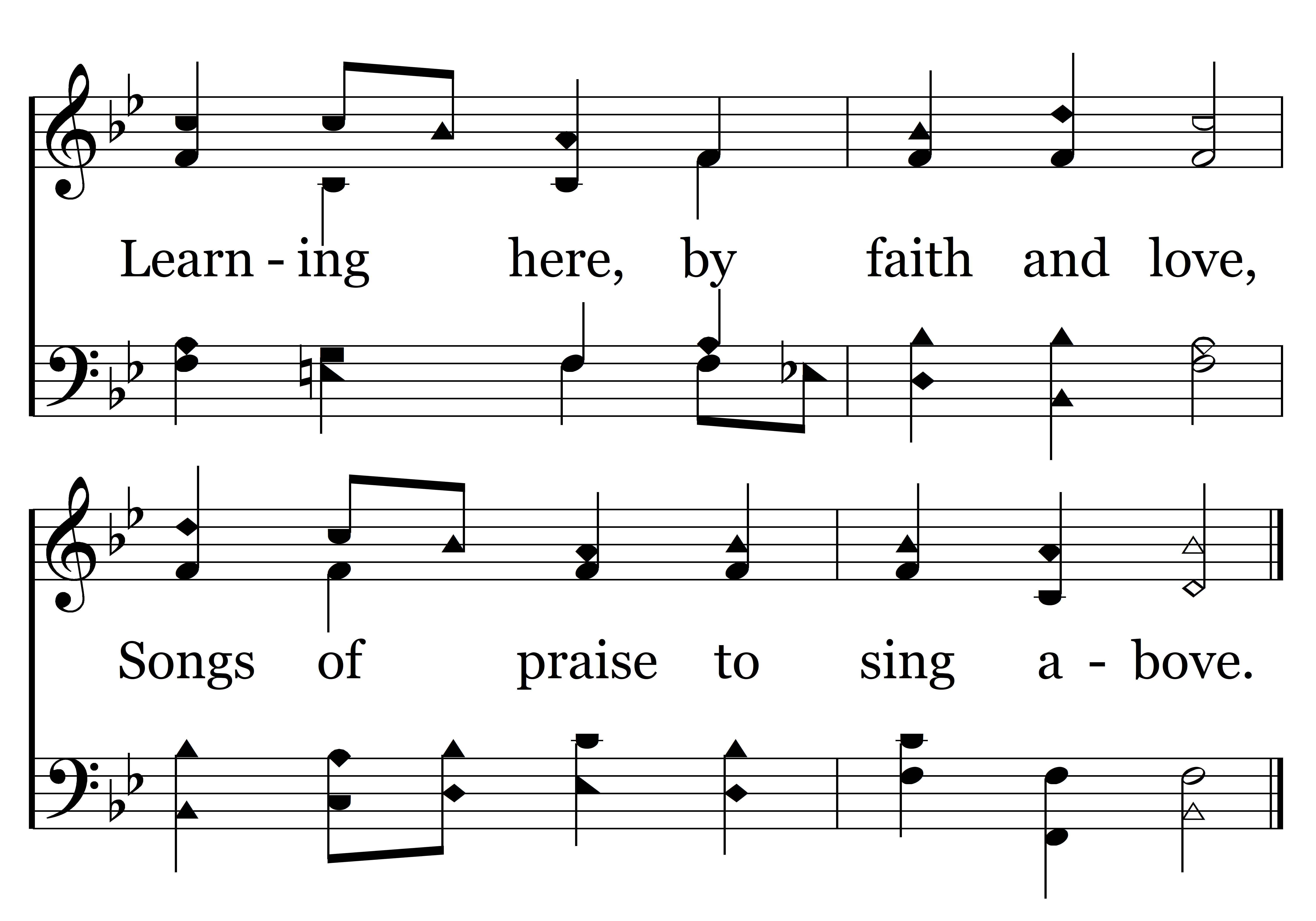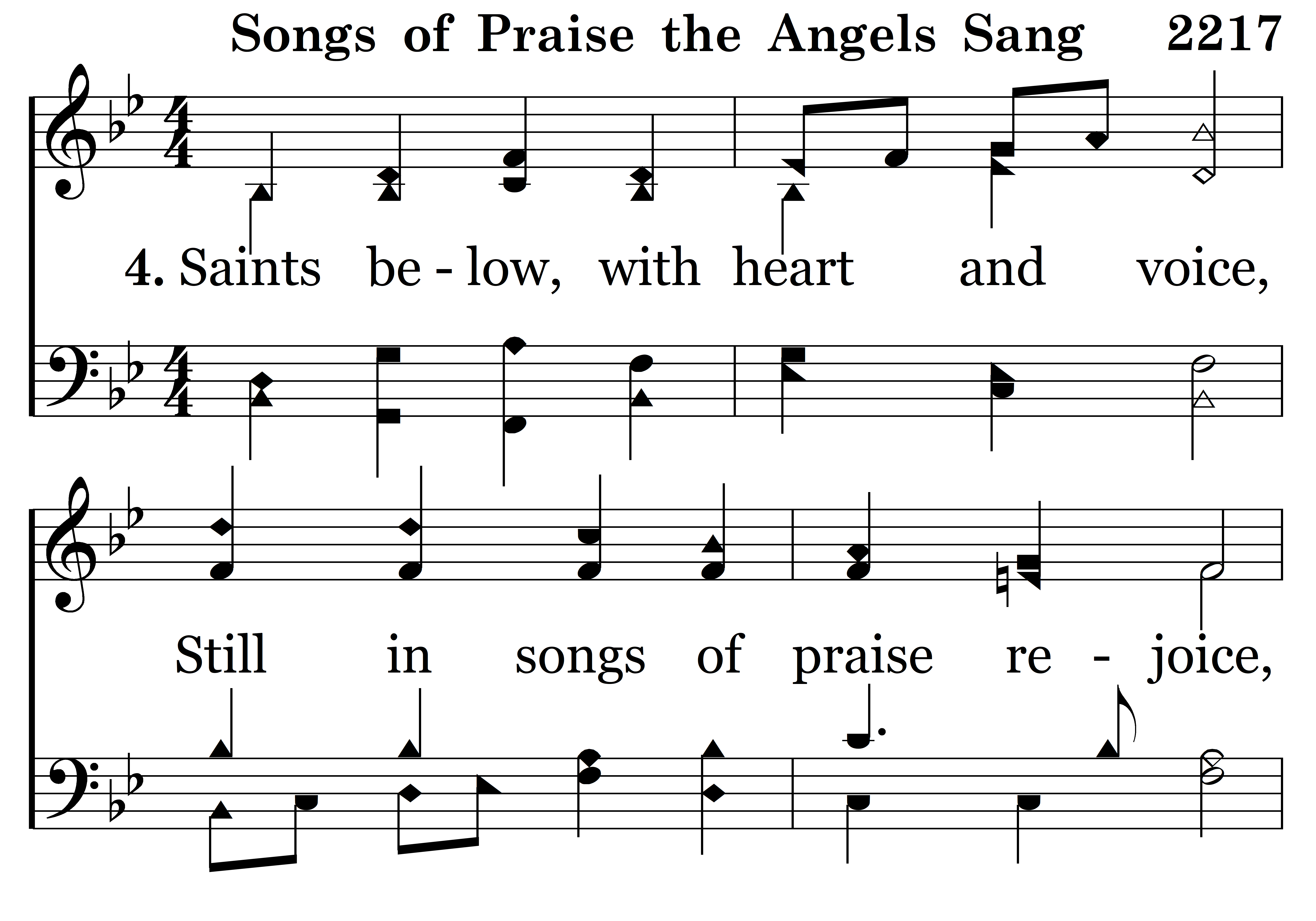 Saints below, with heart and voice, Still in songs of praise rejoice, Learning here, by faith and love,