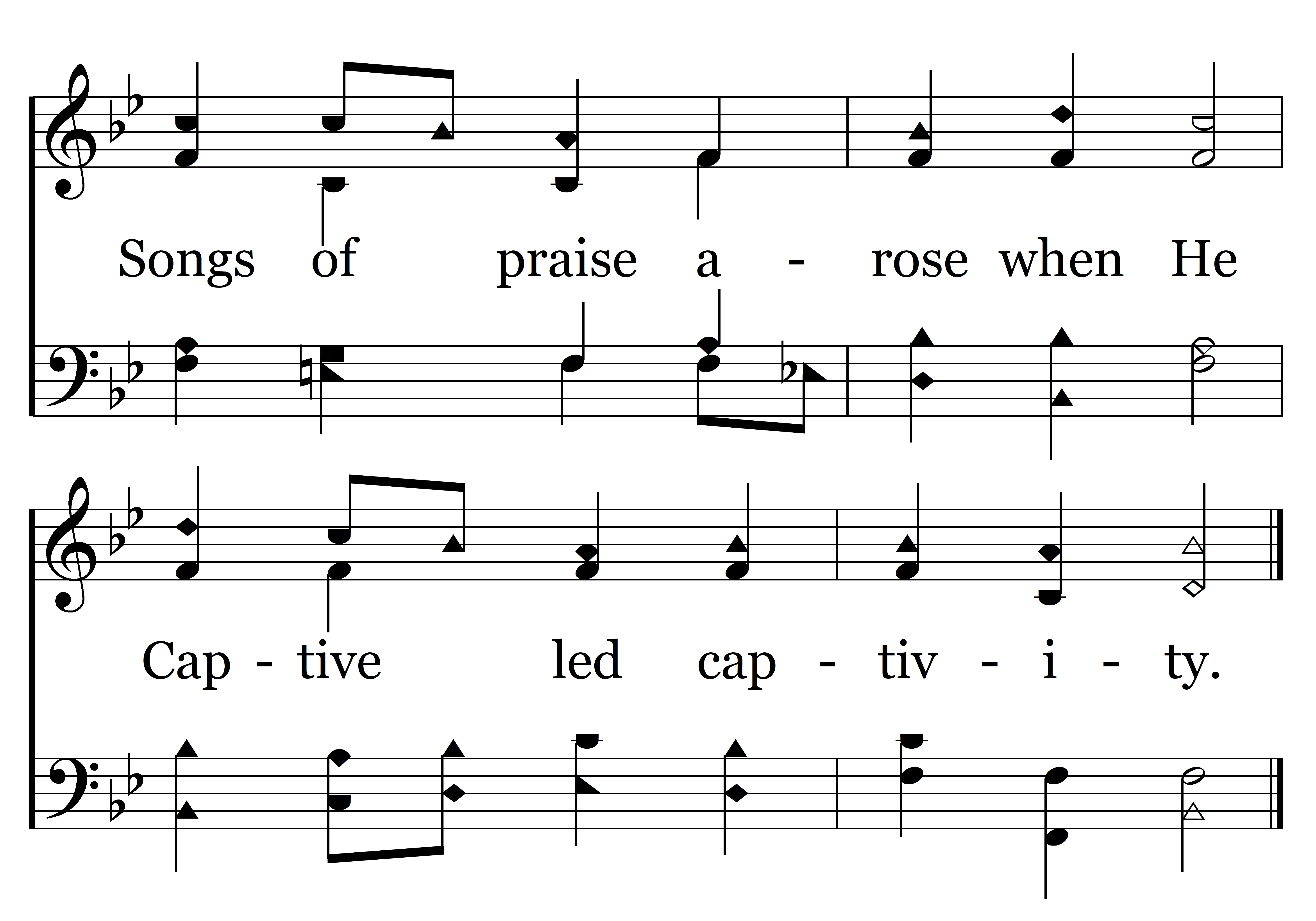Songs of praise awoke the morn When the Prince of Peace was born; Songs of praise arose when He Captive led captivity.