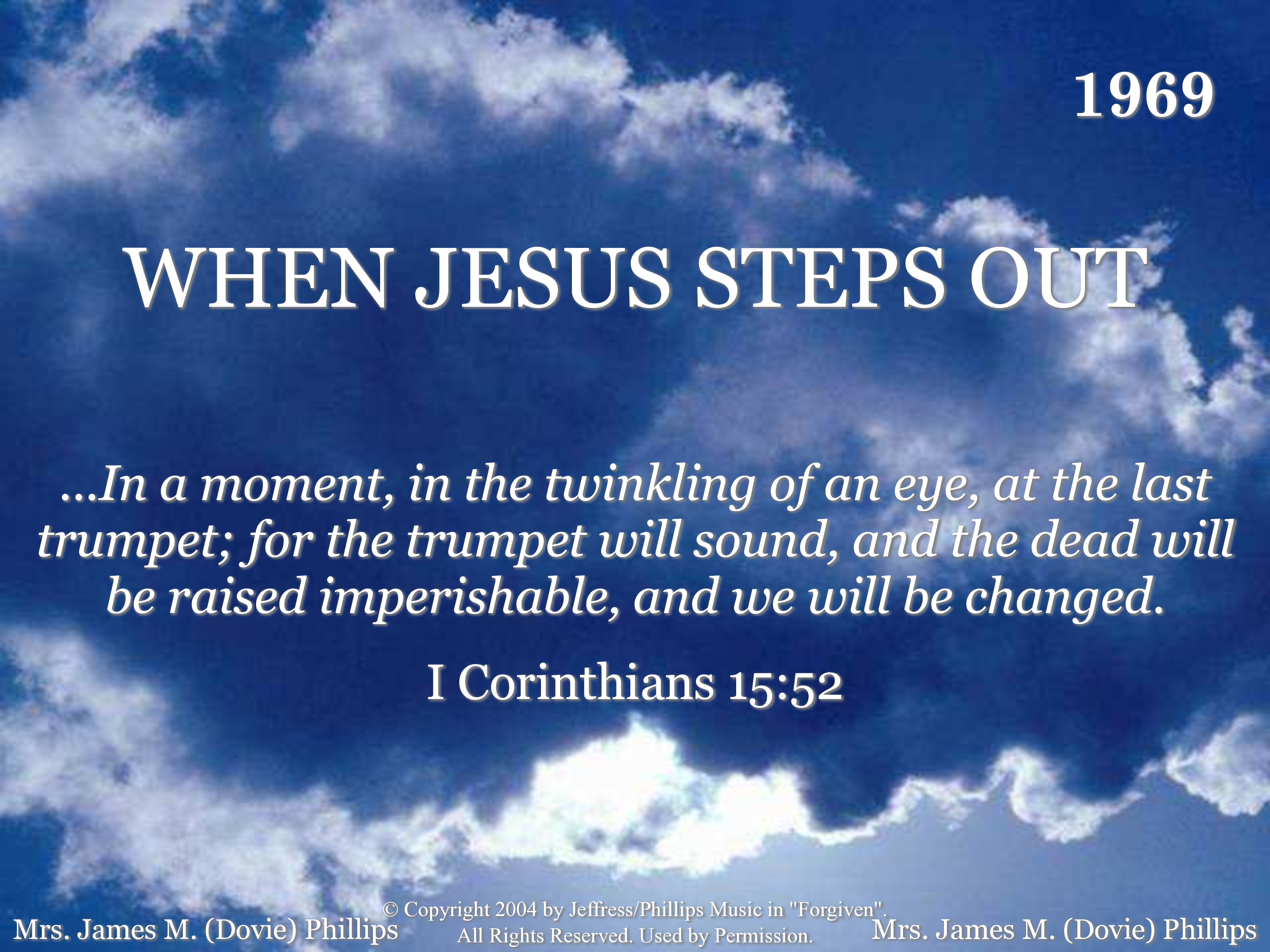 - © Copyright 2004 by Jeffress/Phillips Music in "Forgiven". All Rights Reserved. Used by Permission.