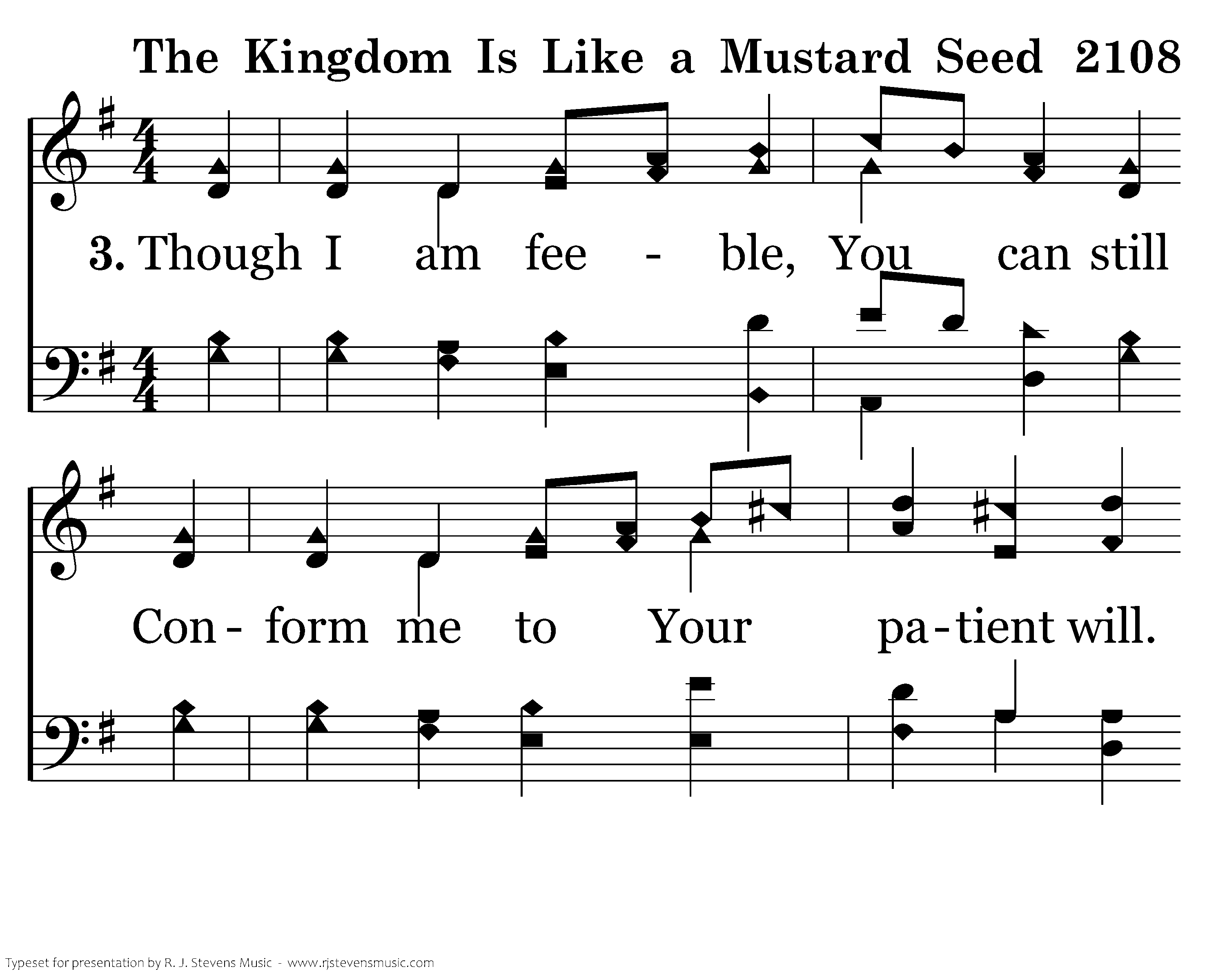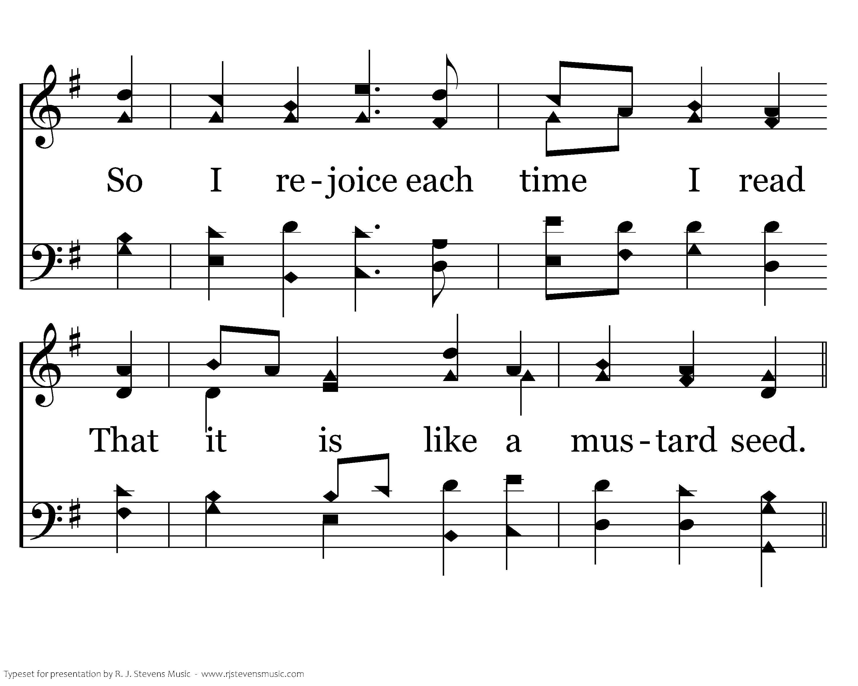 O Lord, my hope will always be To see Your kingdom grow in me, So I rejoice each time I read That it is like a mustard seed.