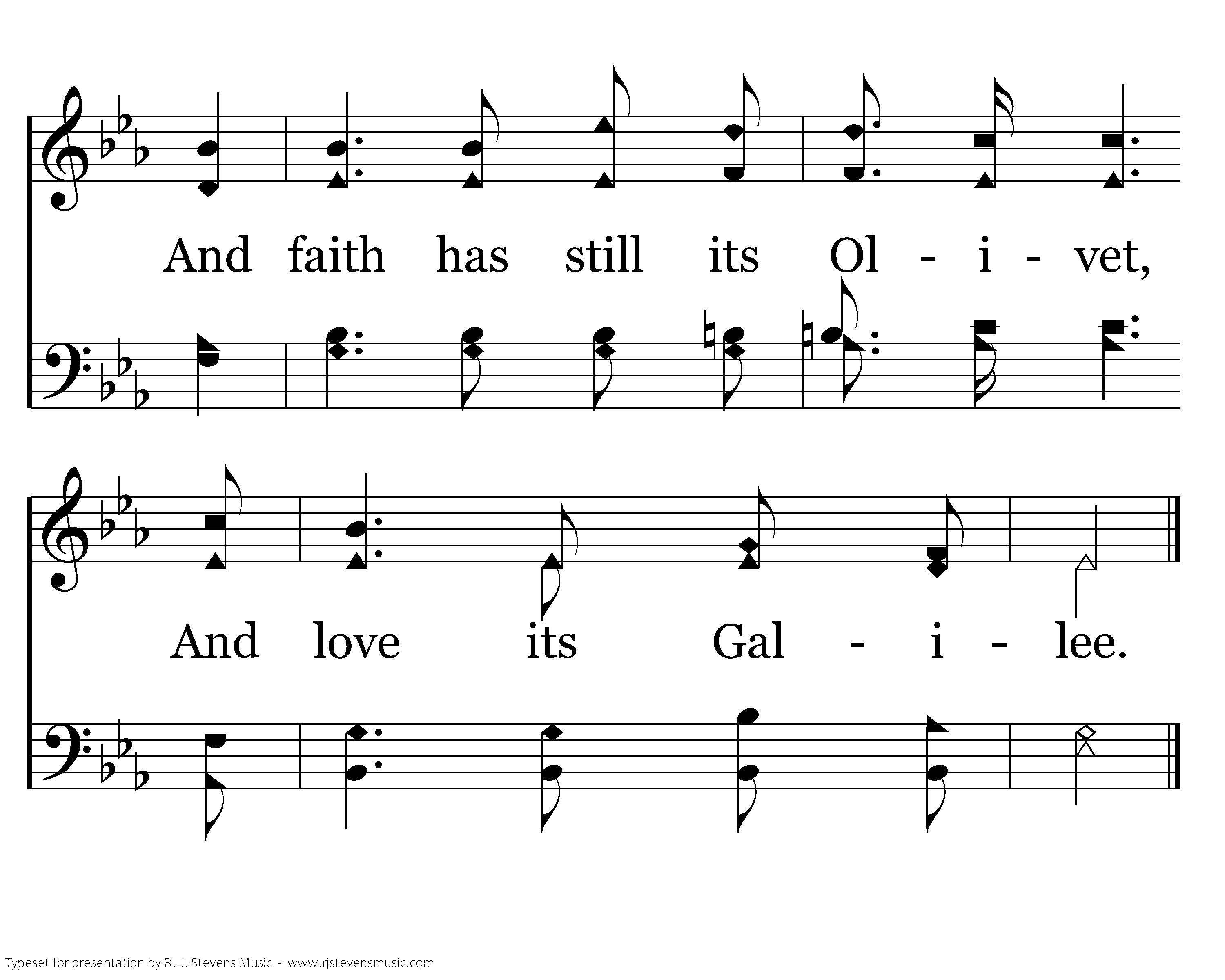 But warm, sweet, tender, even yet A present help is He; And faith has still its Olivet, And love its Galilee.