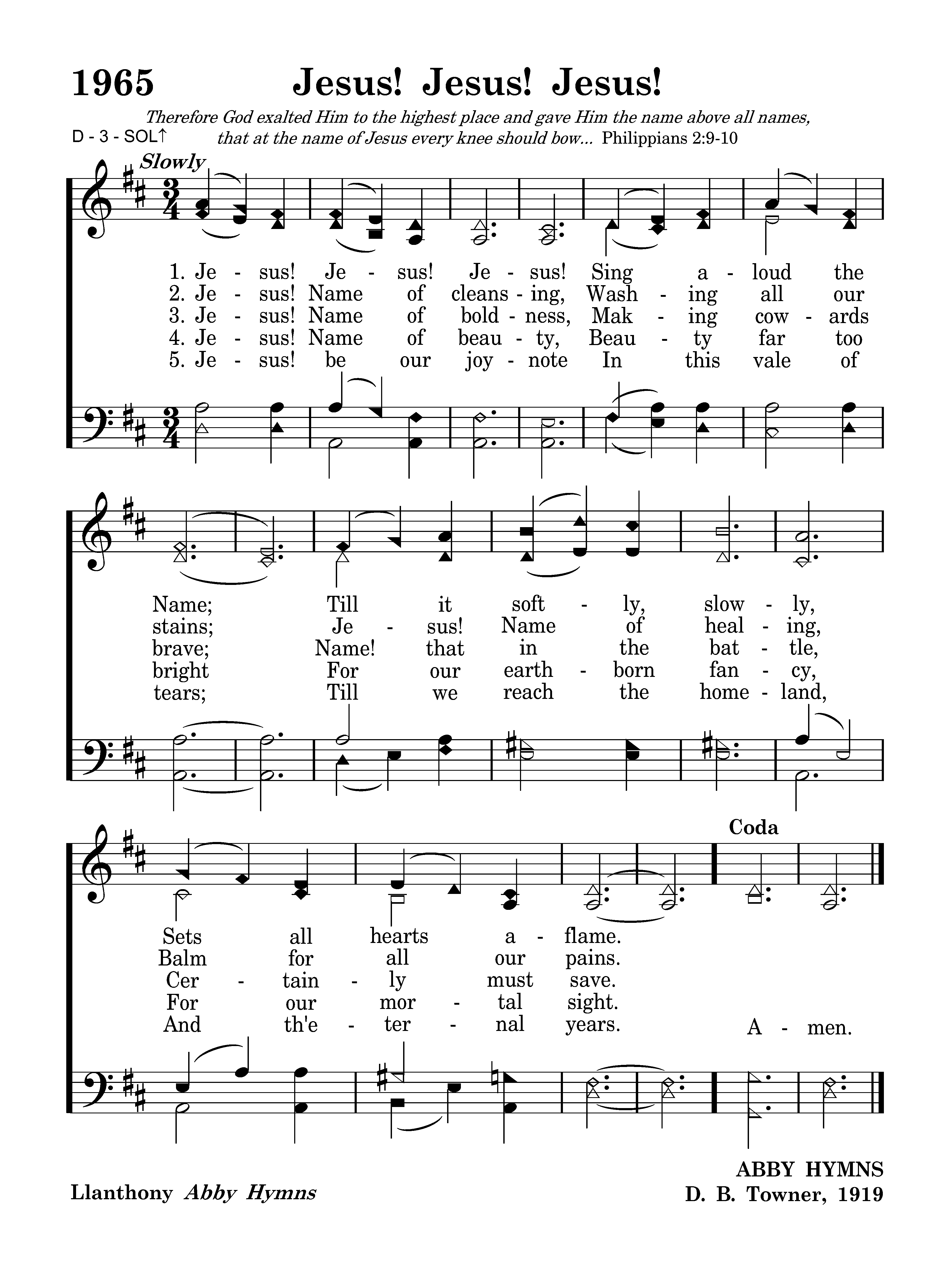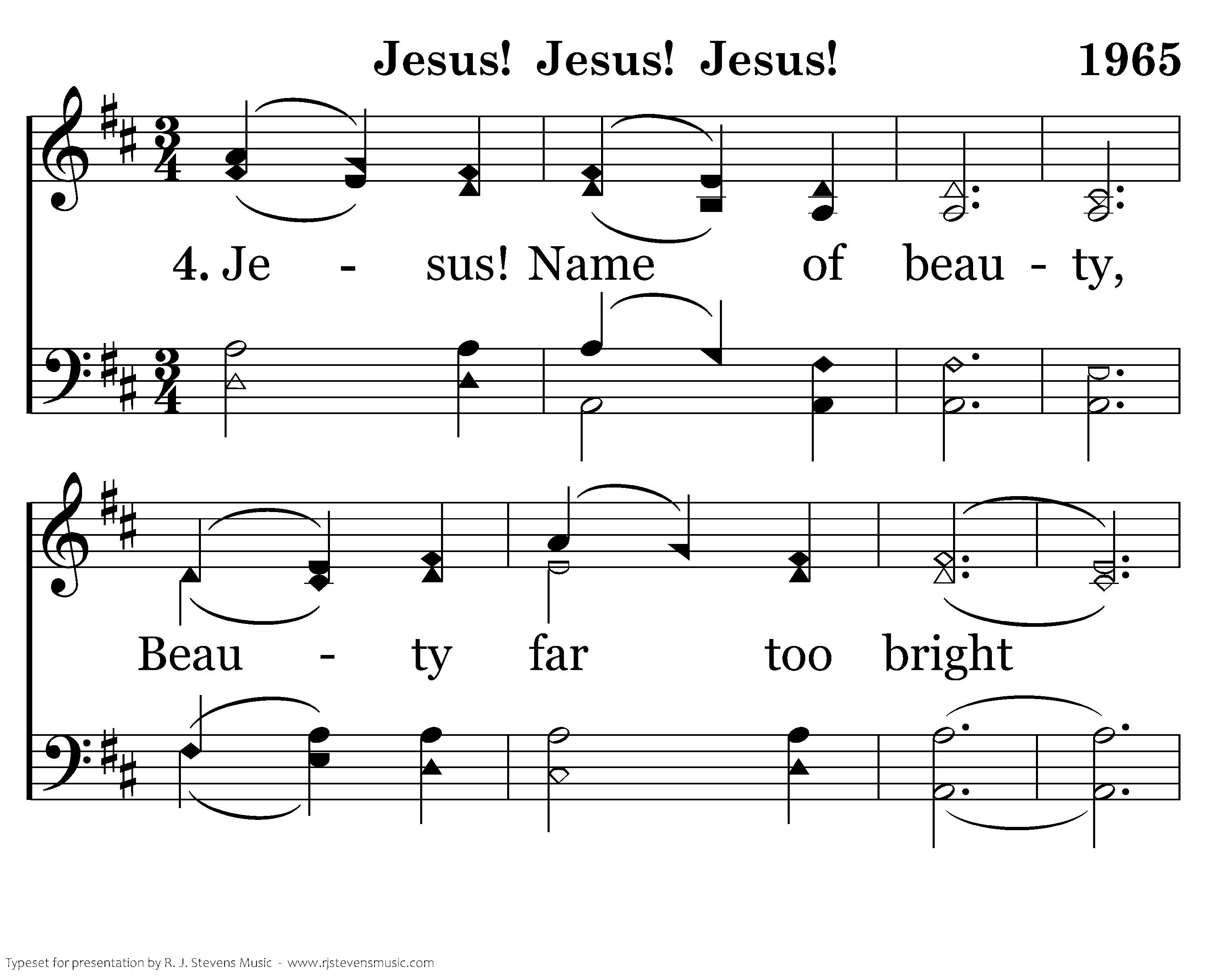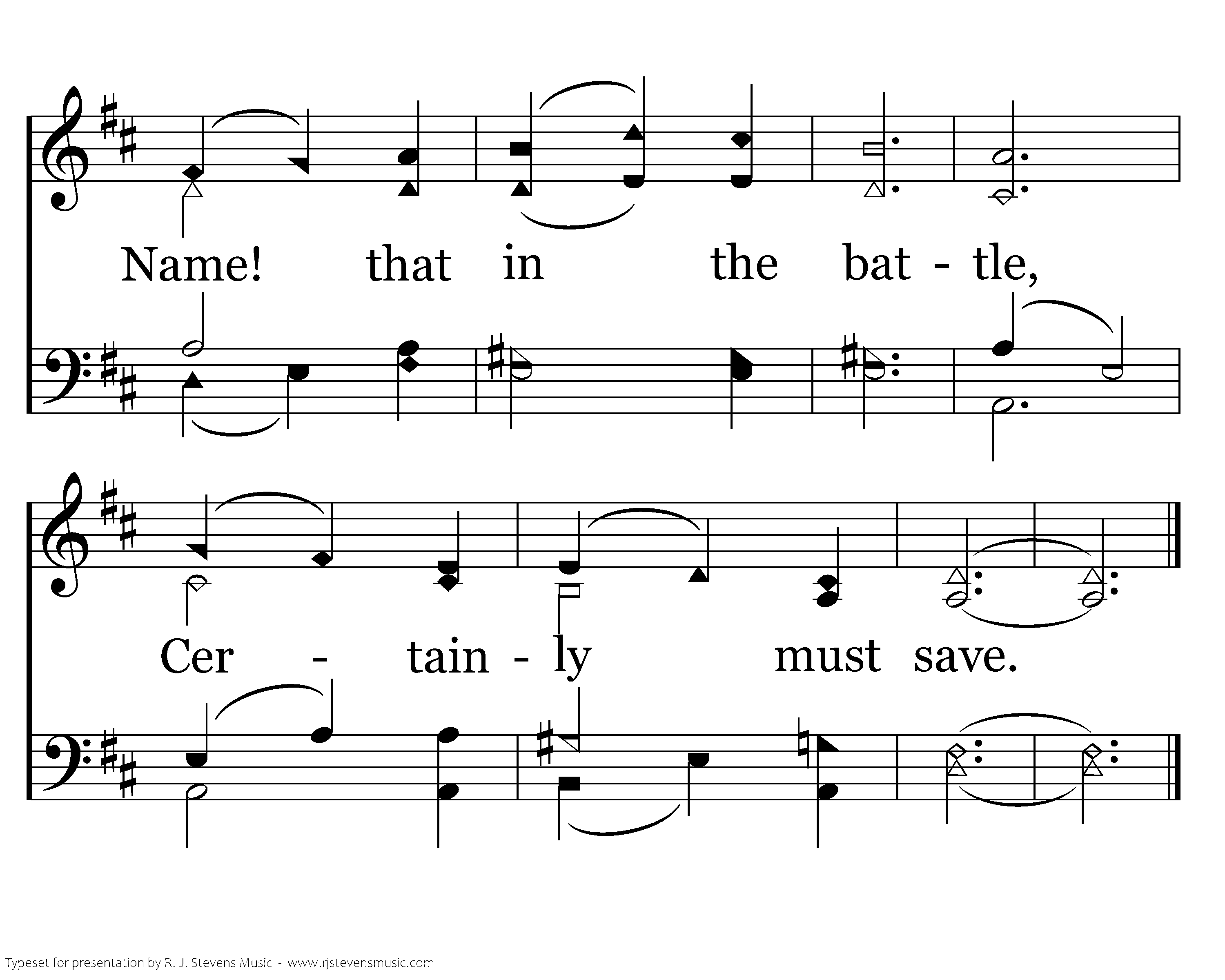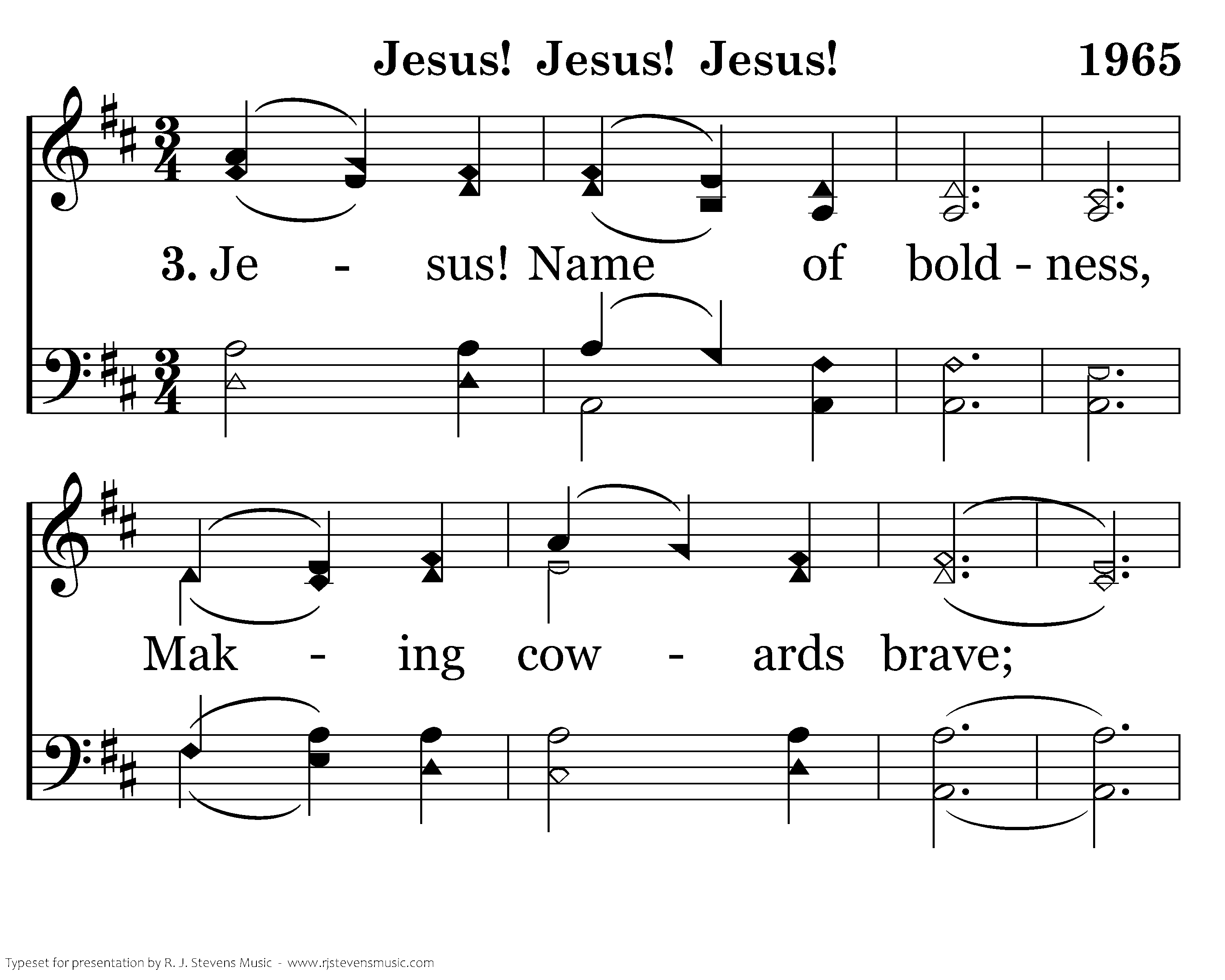 Jesus! Name of boldness, Making cowards brave; Name! that in the battle, Certainly must save.