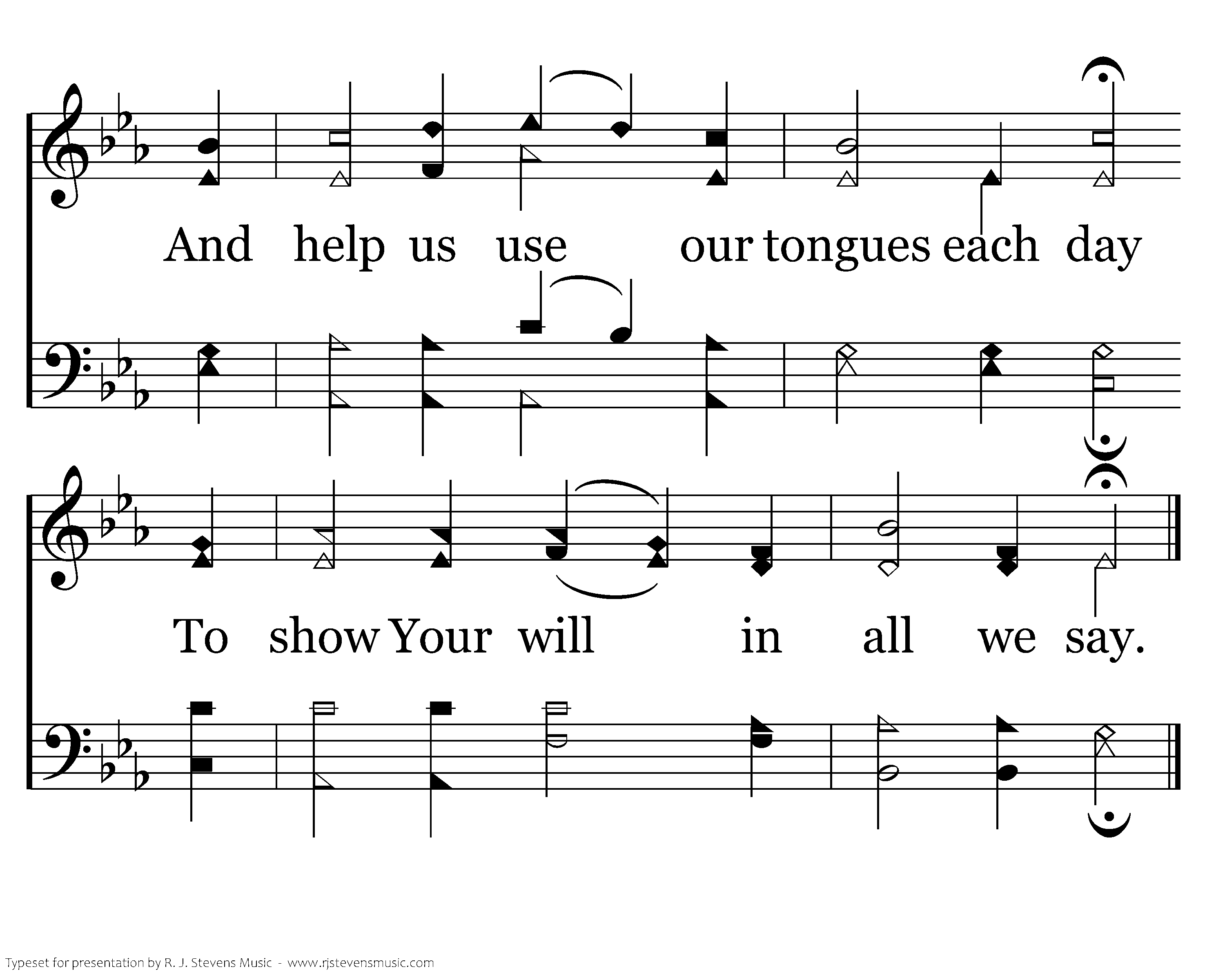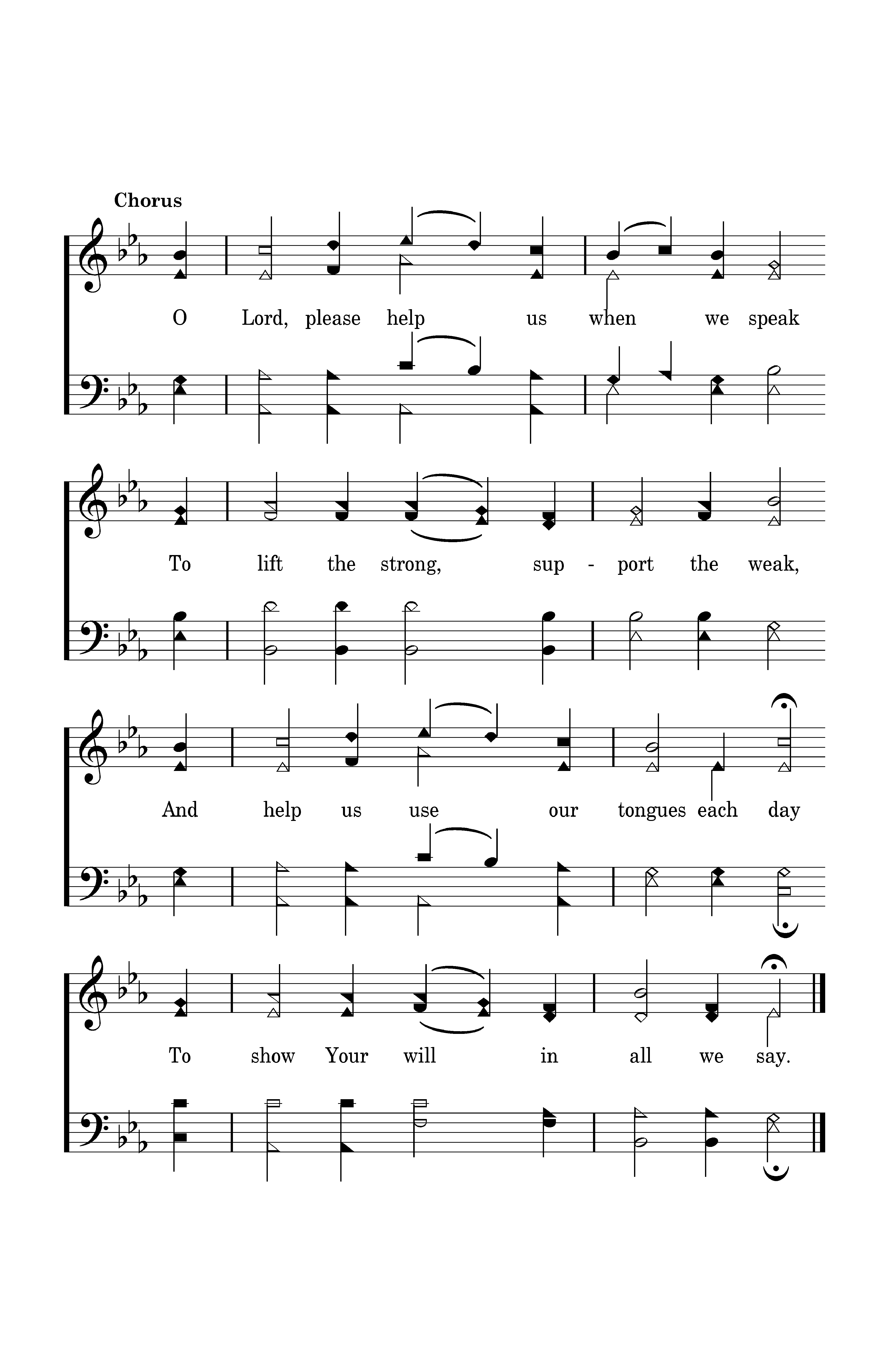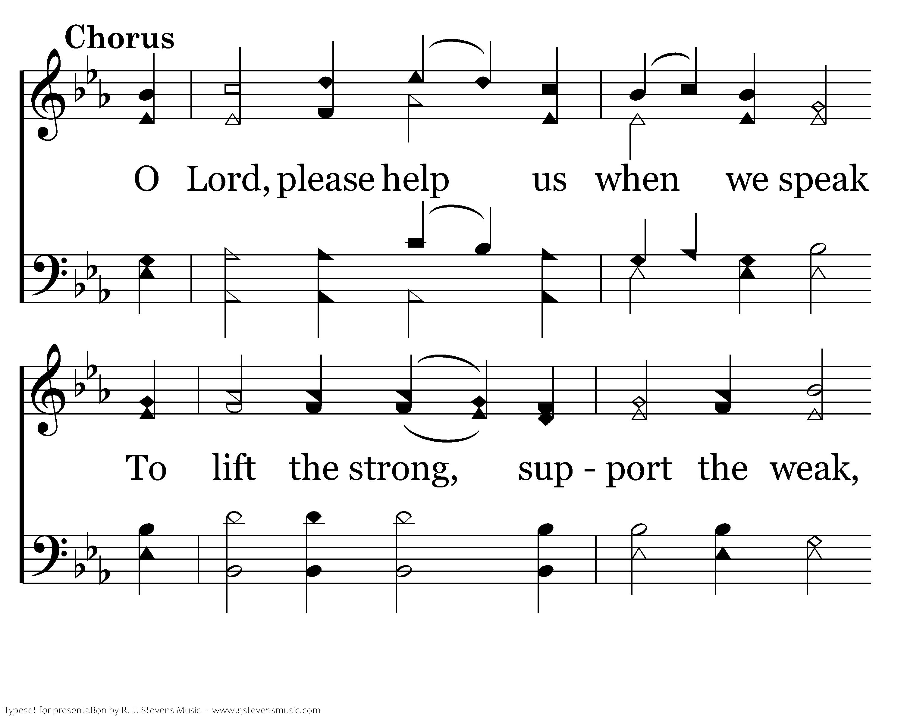 O Lord, please help us when we speak To lift the strong, support the weak, And help us use our tongues each day To show Your will in all we say.