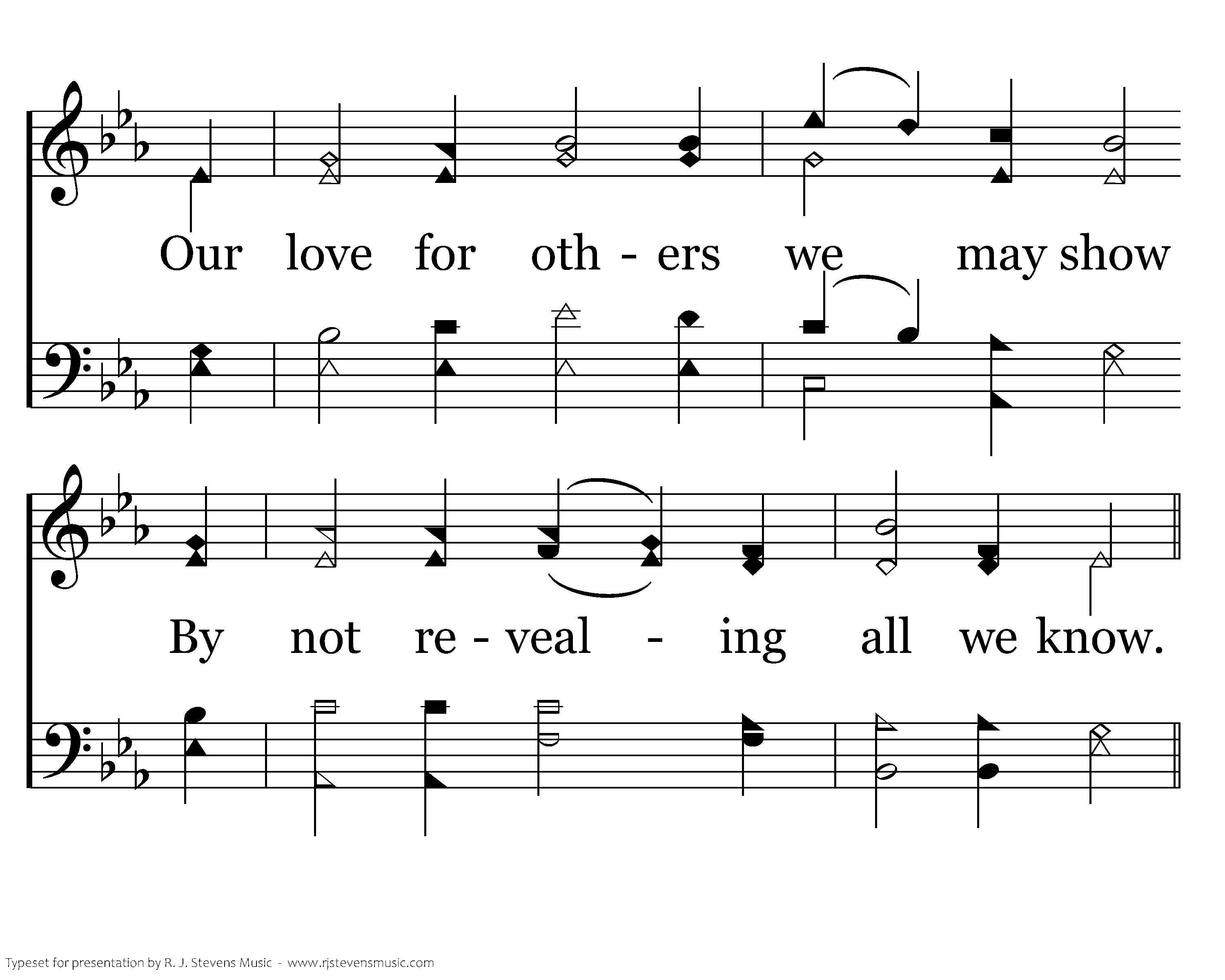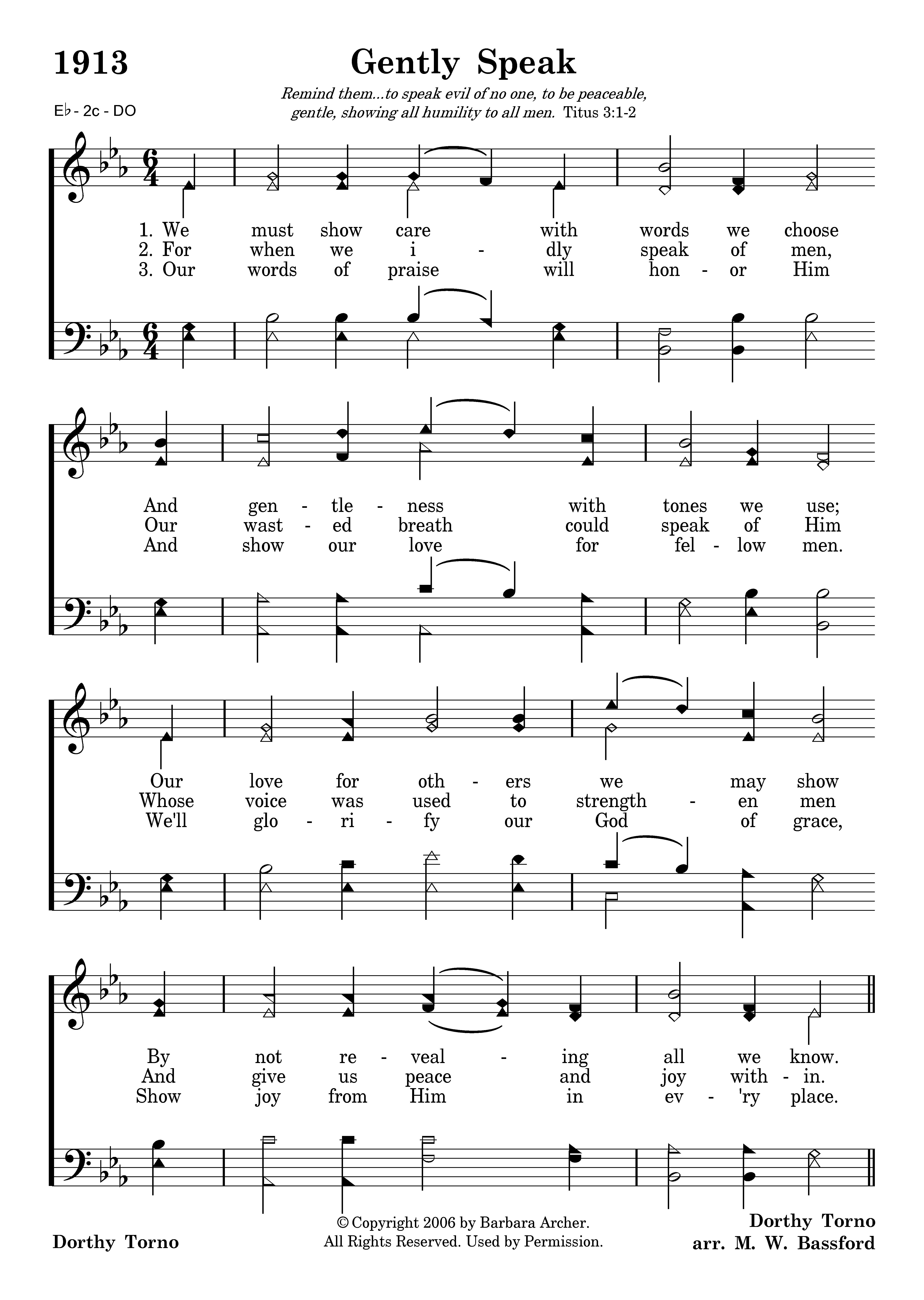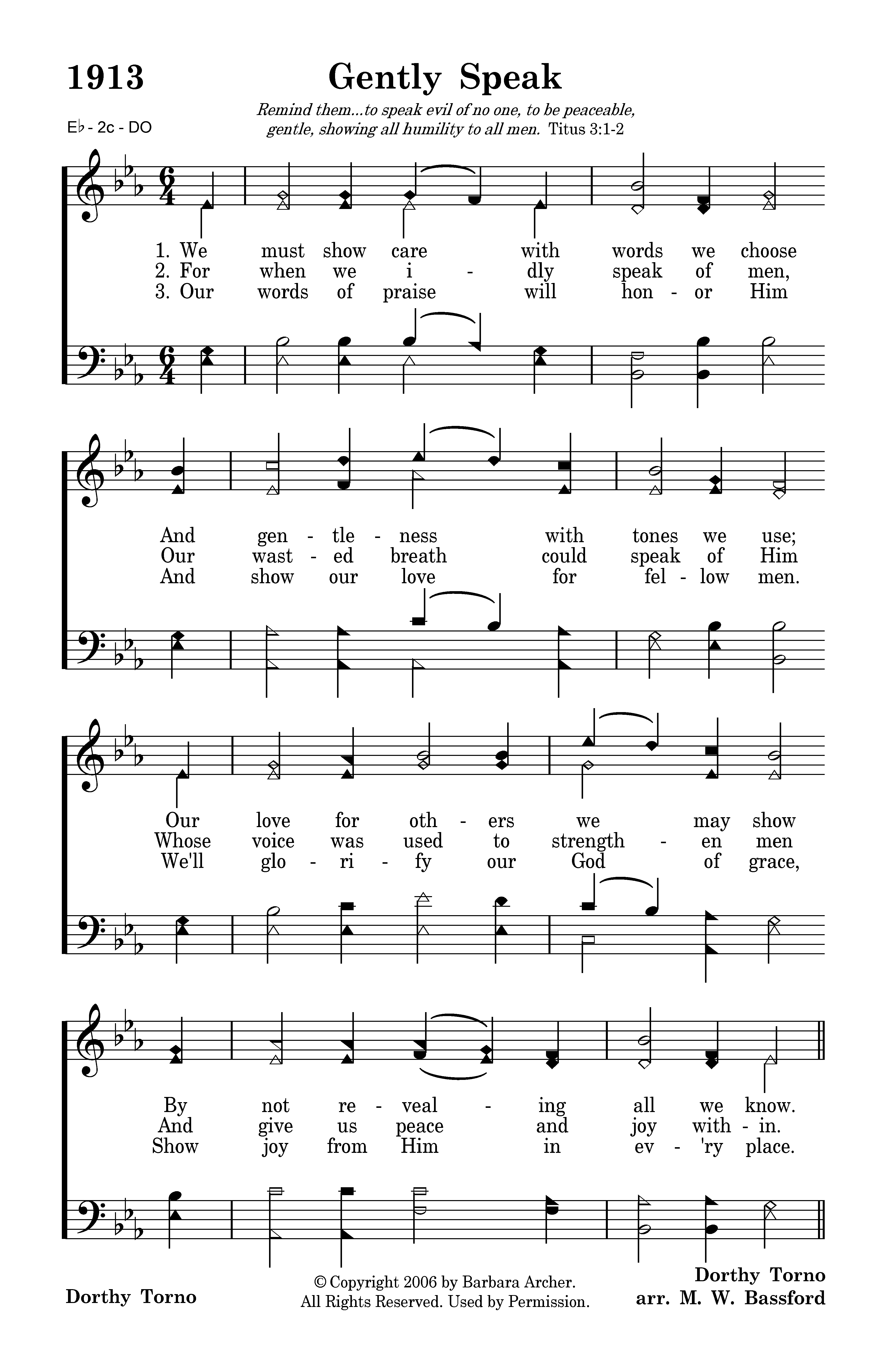 We must show care with words we choose And gentleness with tones we use; Our love for others we may show By not revealing all we know.