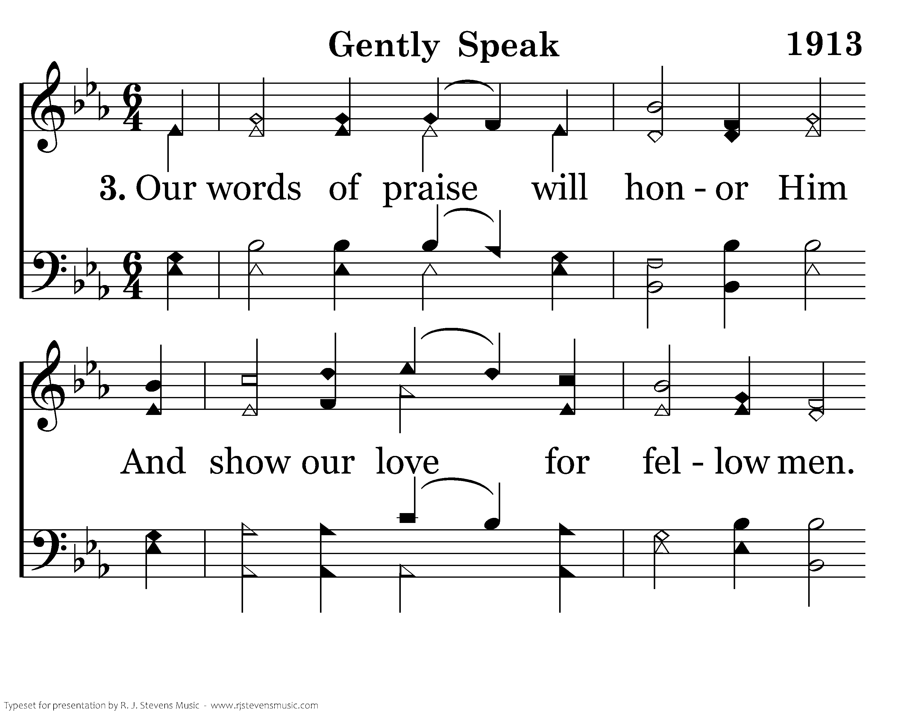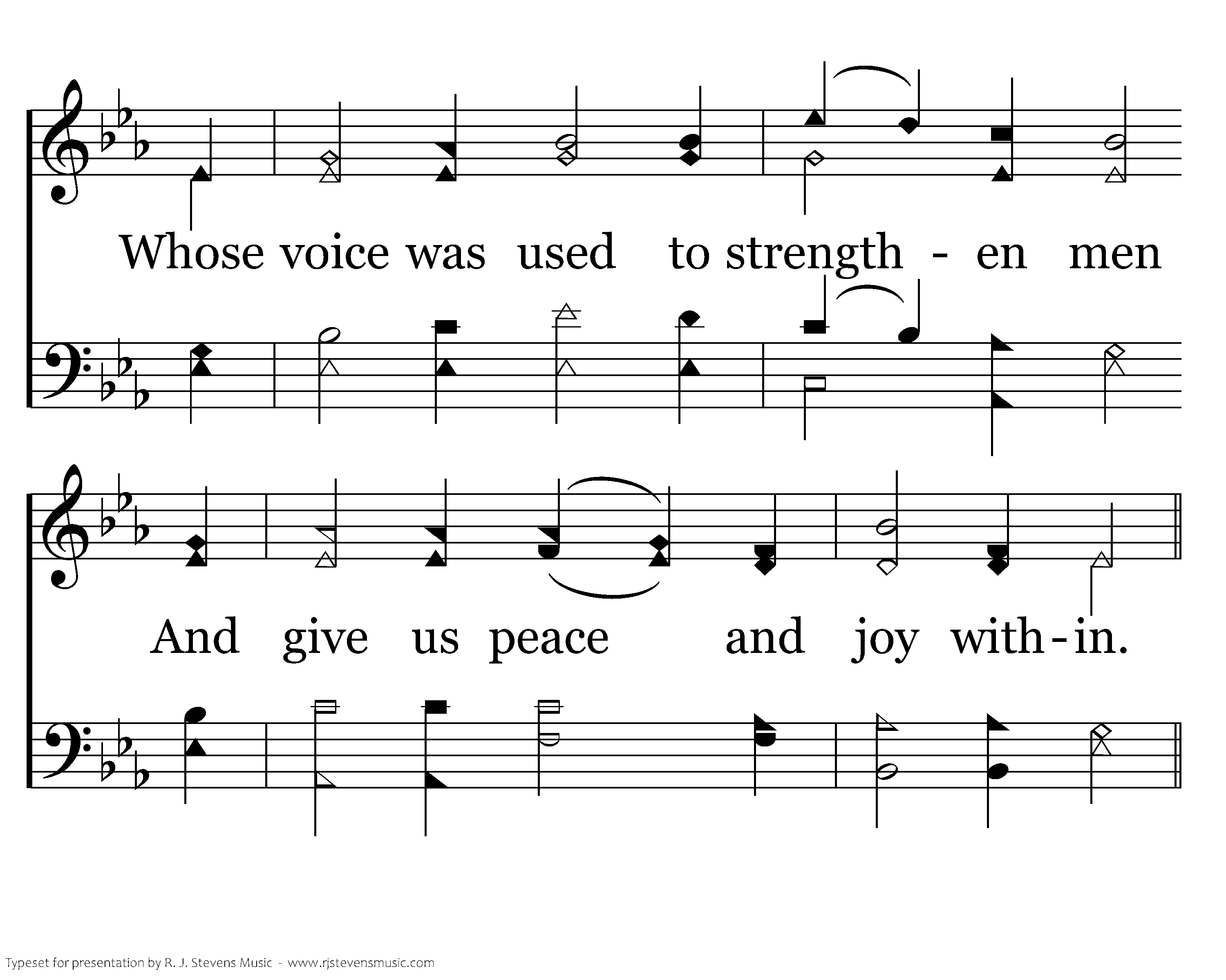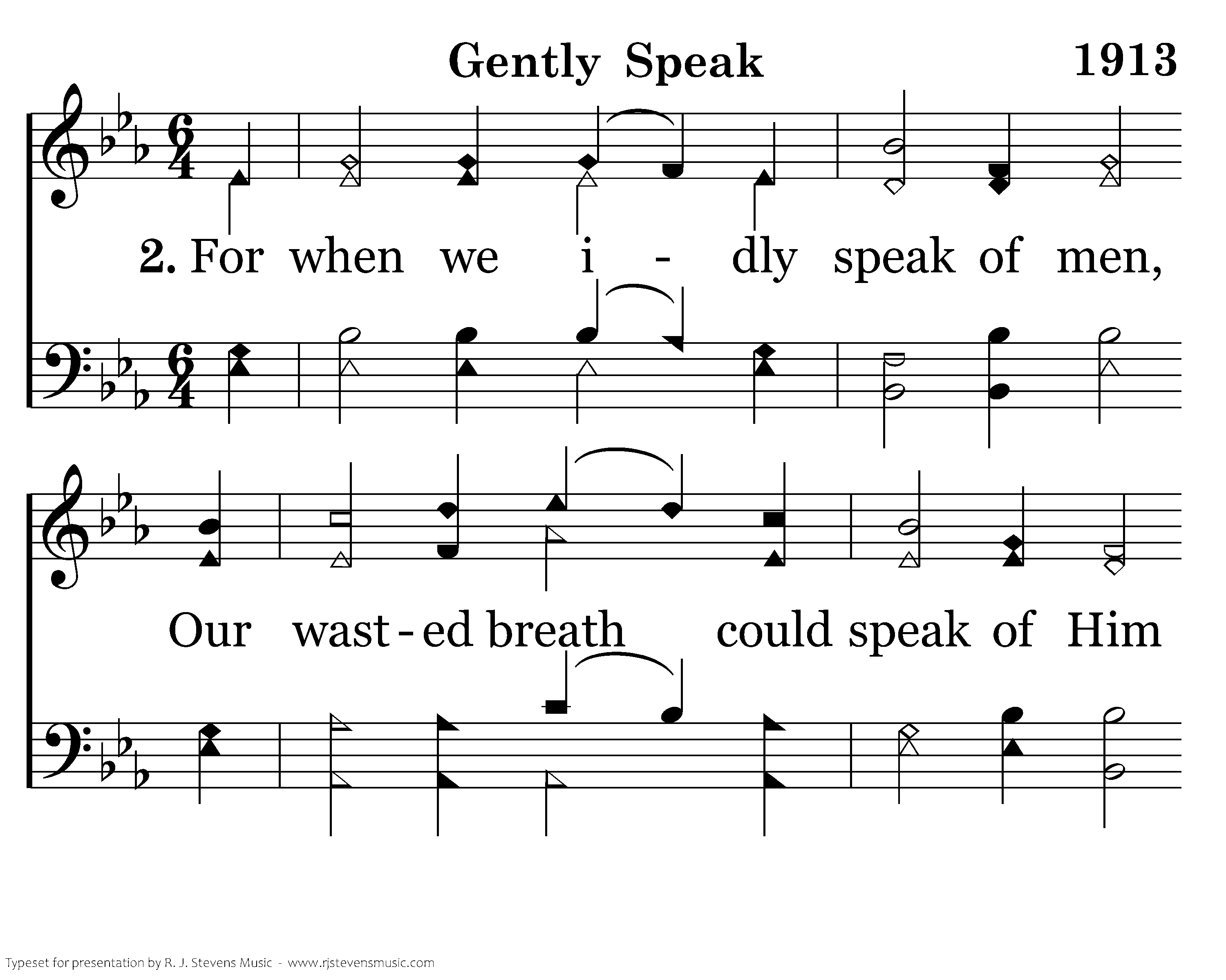 For when we idly speak of men, Our wasted breath could speak of Him Whose voice was used to strengthen men And give us peace and joy within.