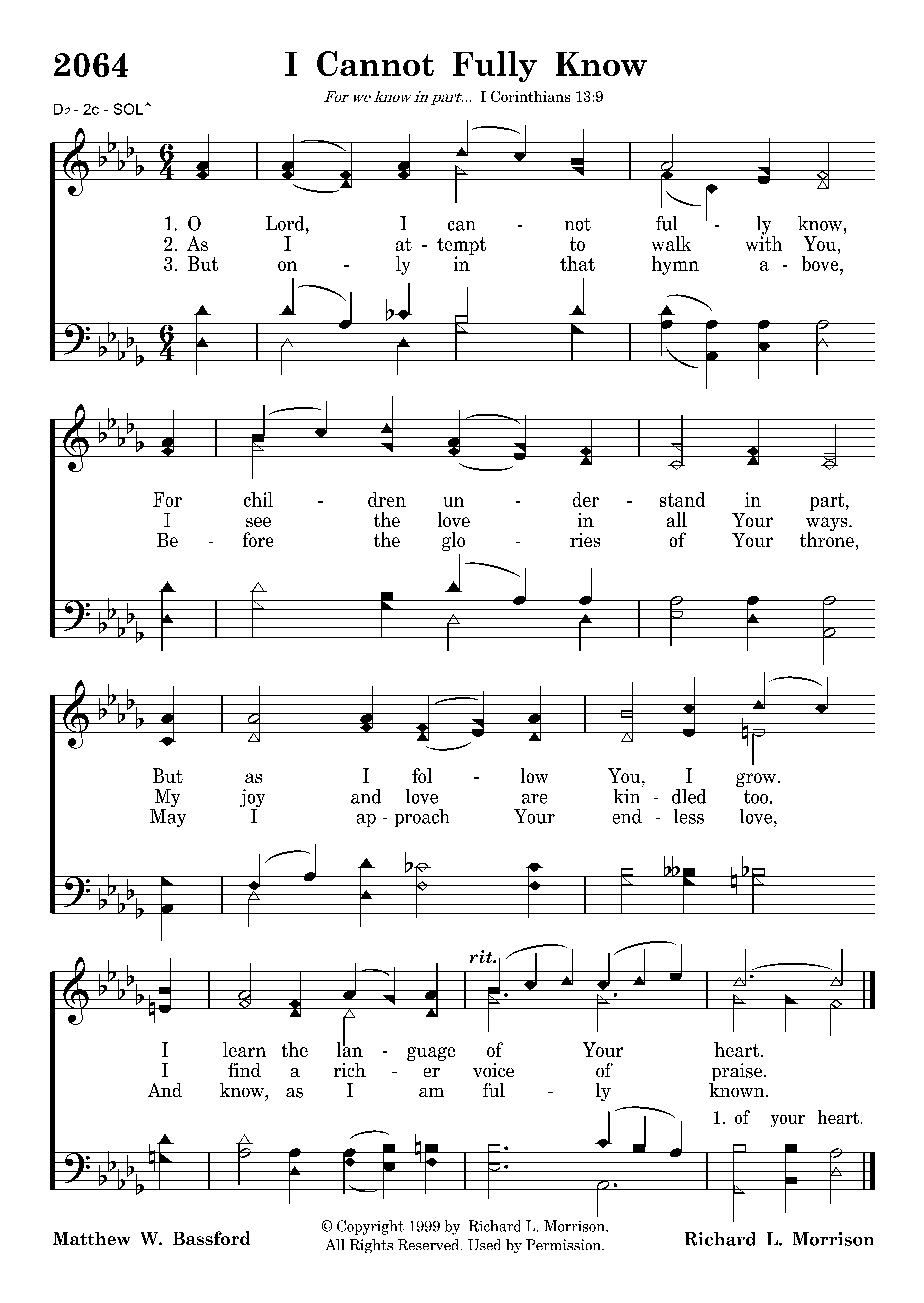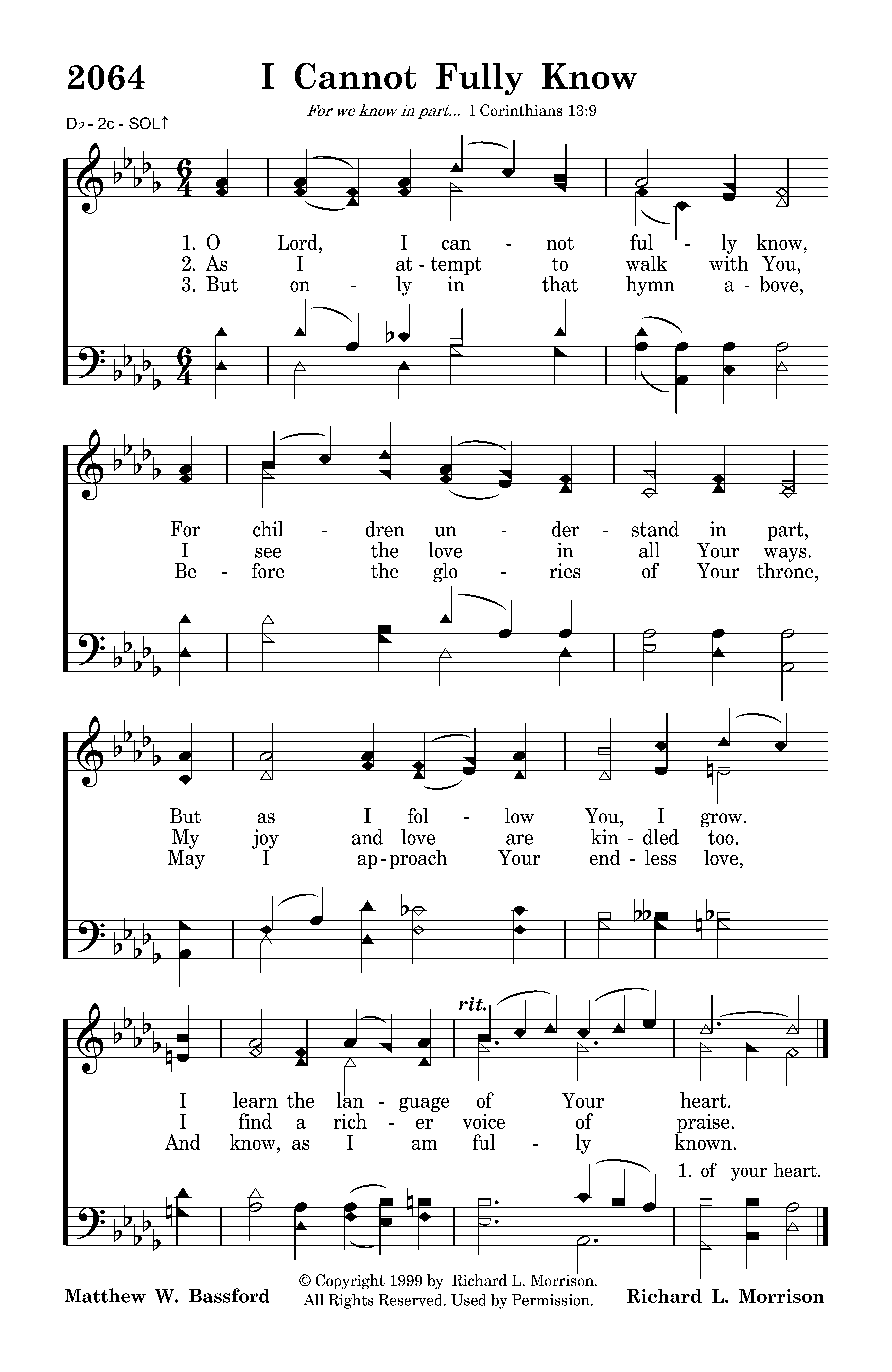 O Lord, I cannot fully know, For children understand in part, But as I follow You, I grow. I learn the language of Your heart.
