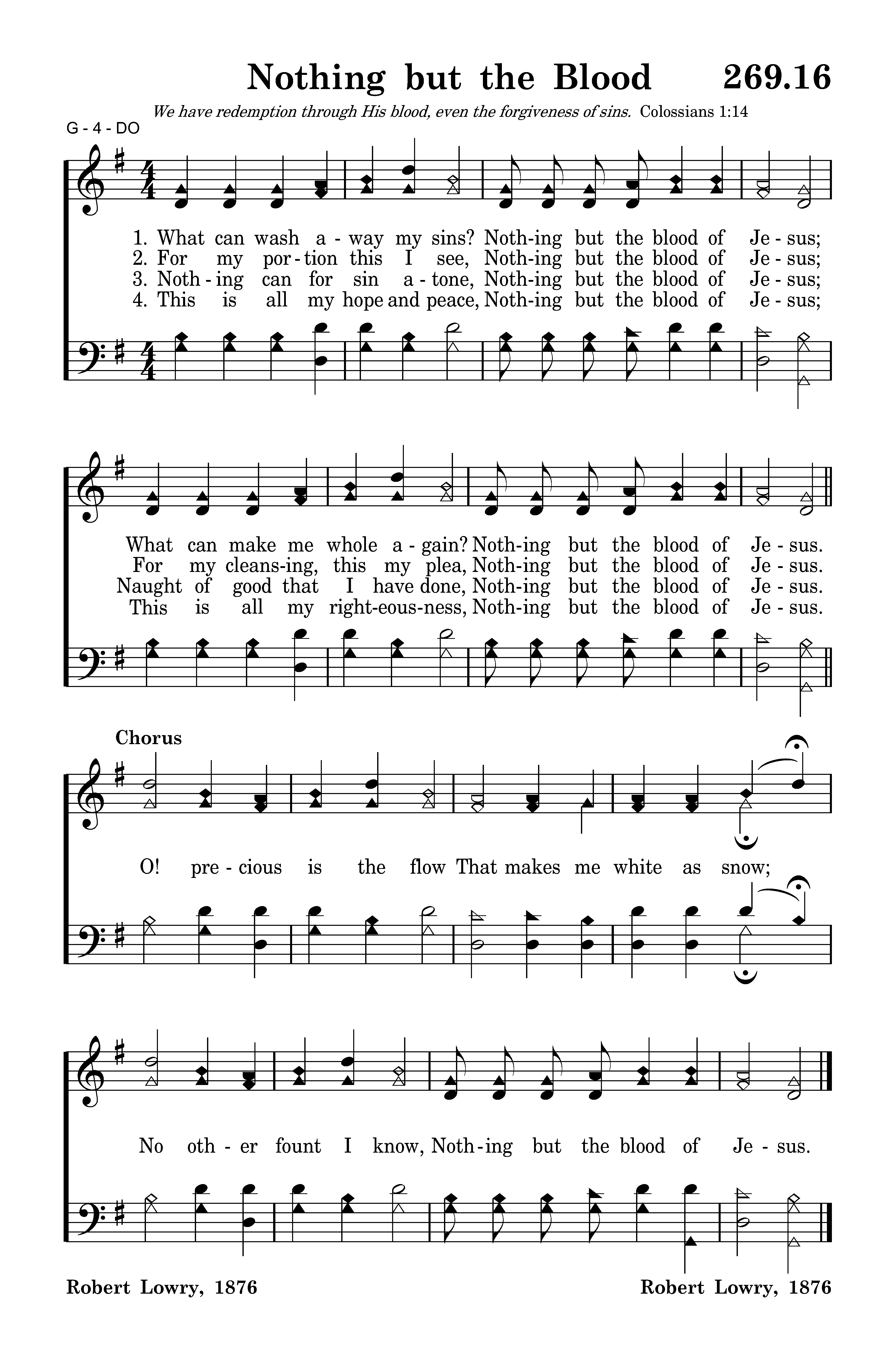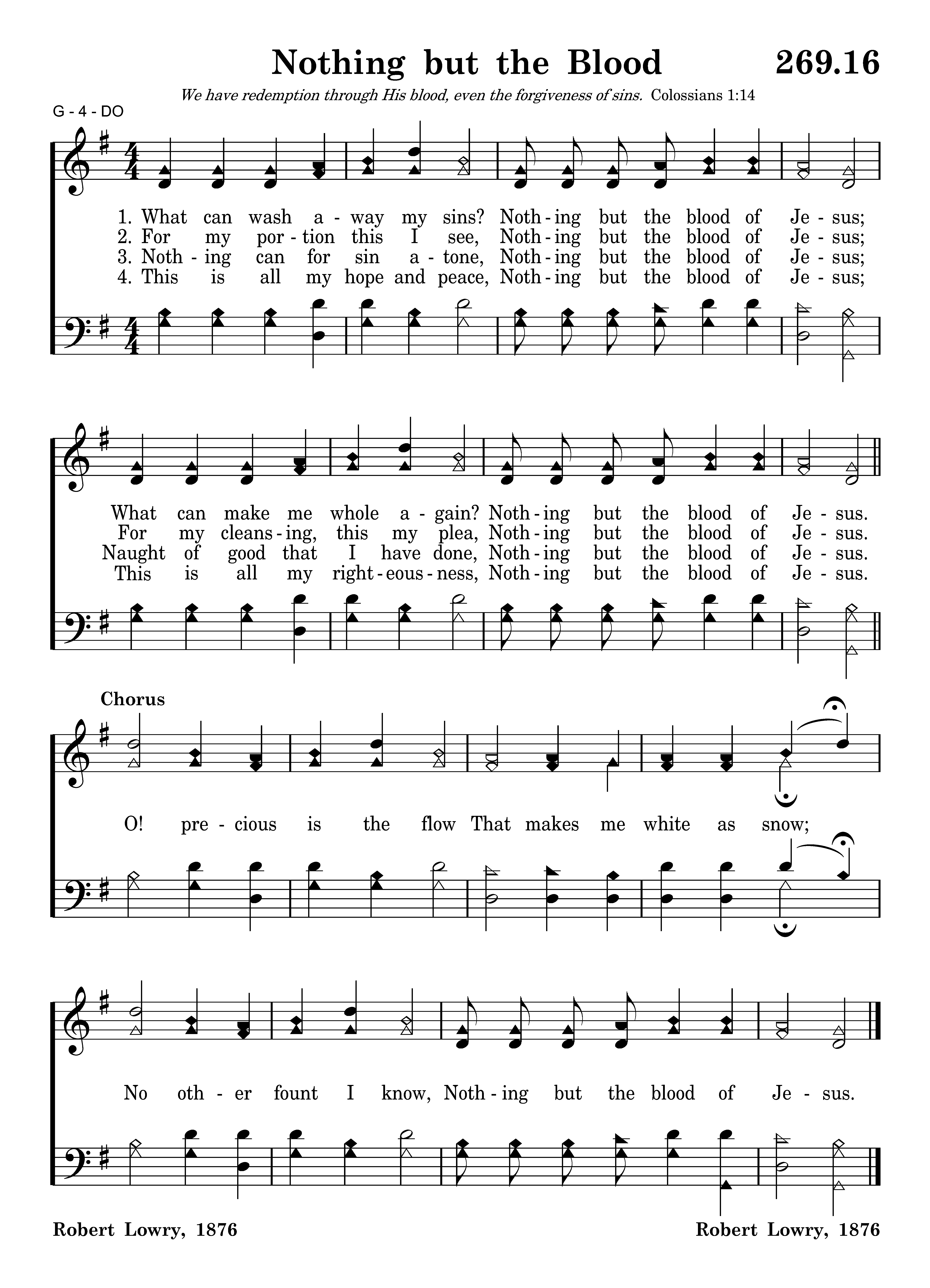 For my portion this I see, Nothing but the blood of Jesus; For my cleansing, this my plea, Nothing but the blood of Jesus.