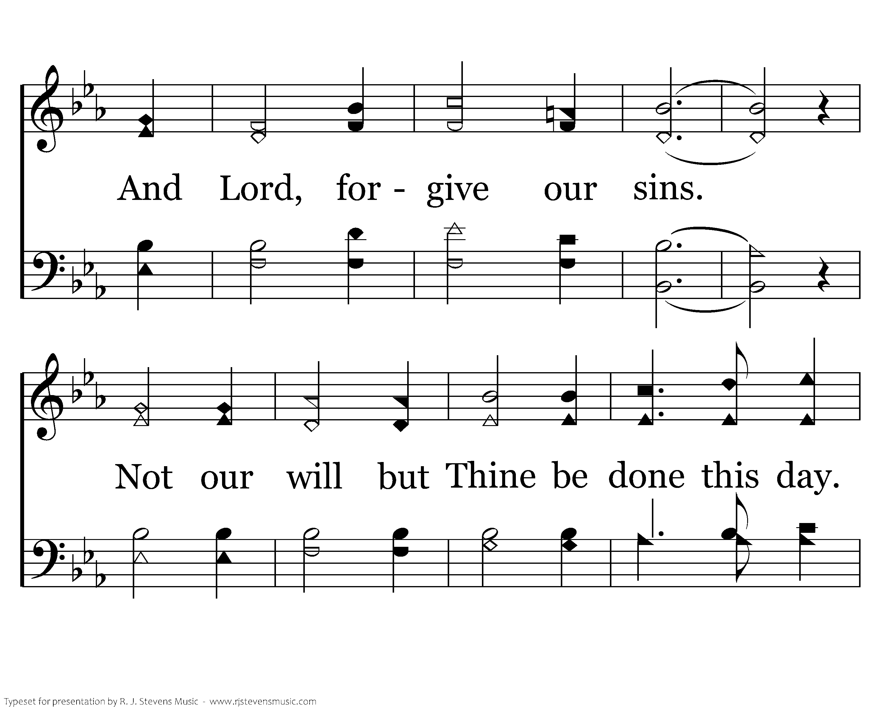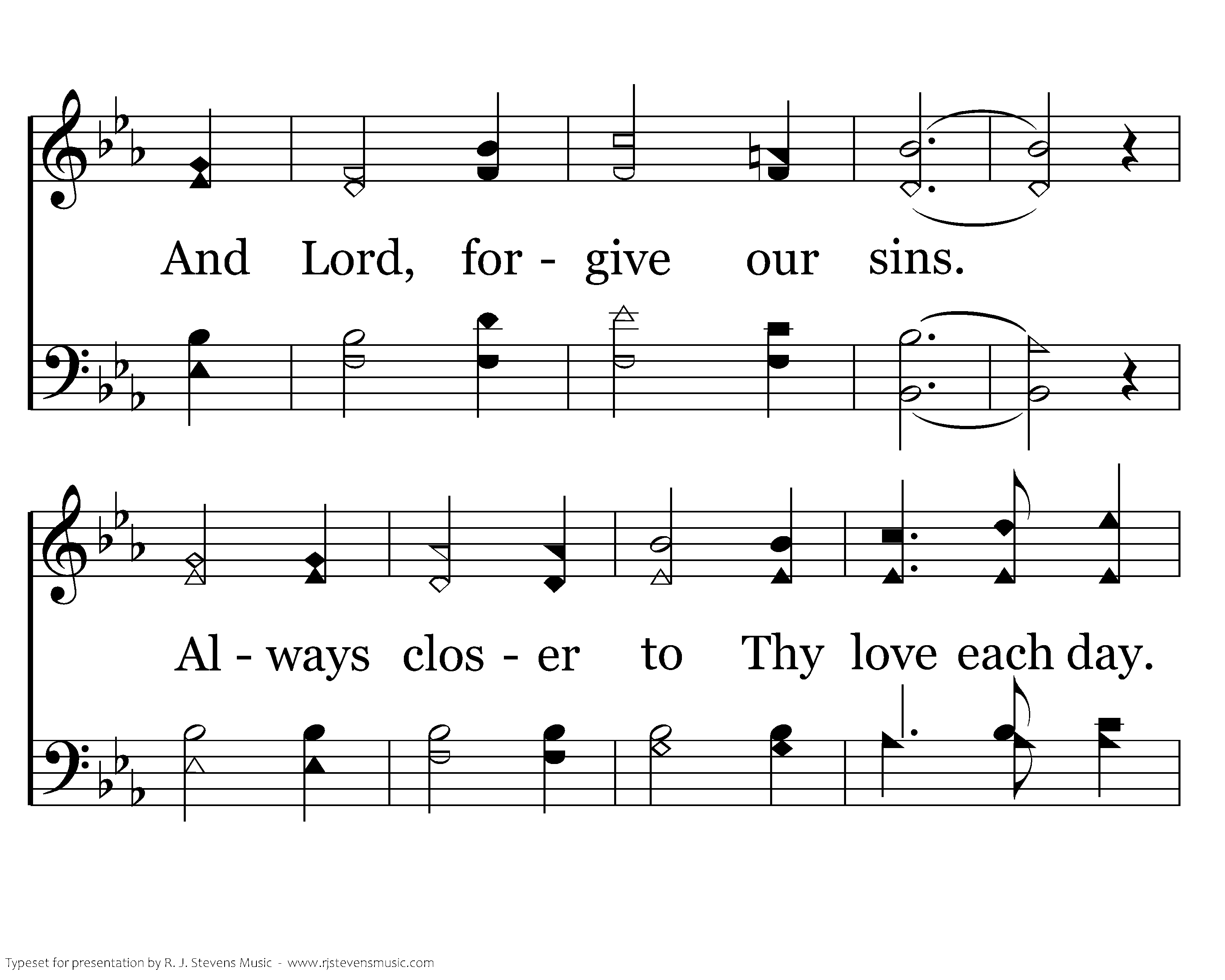 Give us now our vital, daily bread for our strength this day. Bless the church with Christ, its holy Head. May we never stray. And Lord, forgive our sins. Lead us onward to Thy bode to stay. Thru Thy Son we pray.