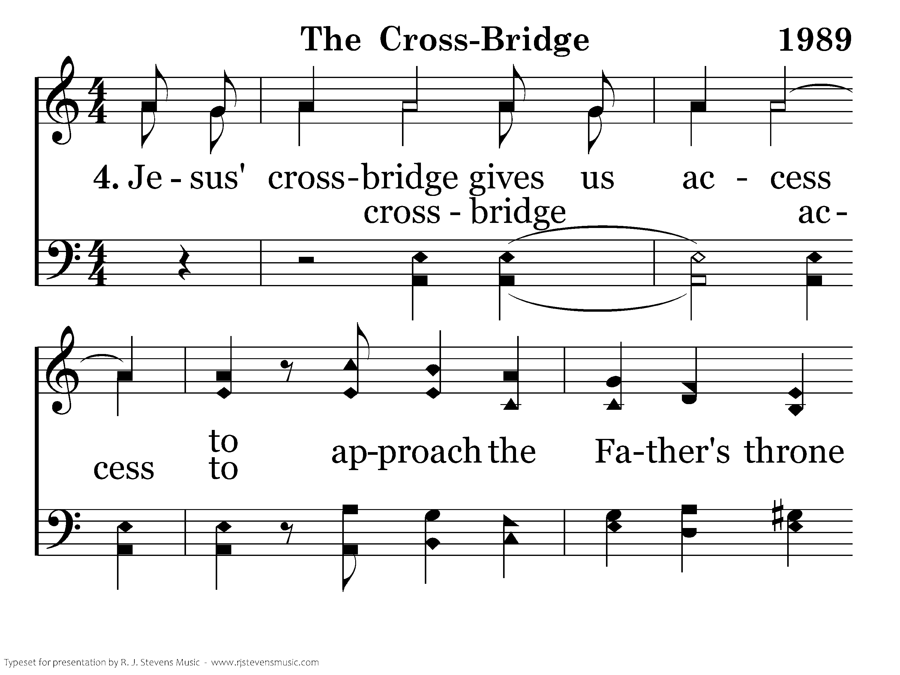 Jesus' crossbridge gives us access to approach the Father's throne His living waters wash our soul Be priests of Christ's atoned. crossbridge access to waters wash our soul