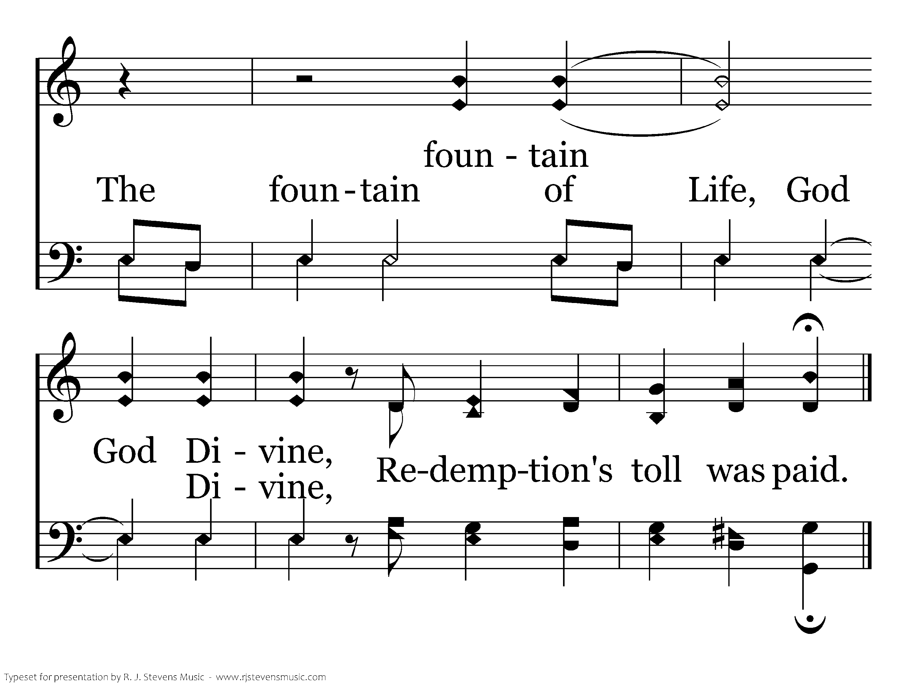 The Father so loved humankind The Christ His Son He gave The fountain of Life, God Divine, Redemption's toll was paid.