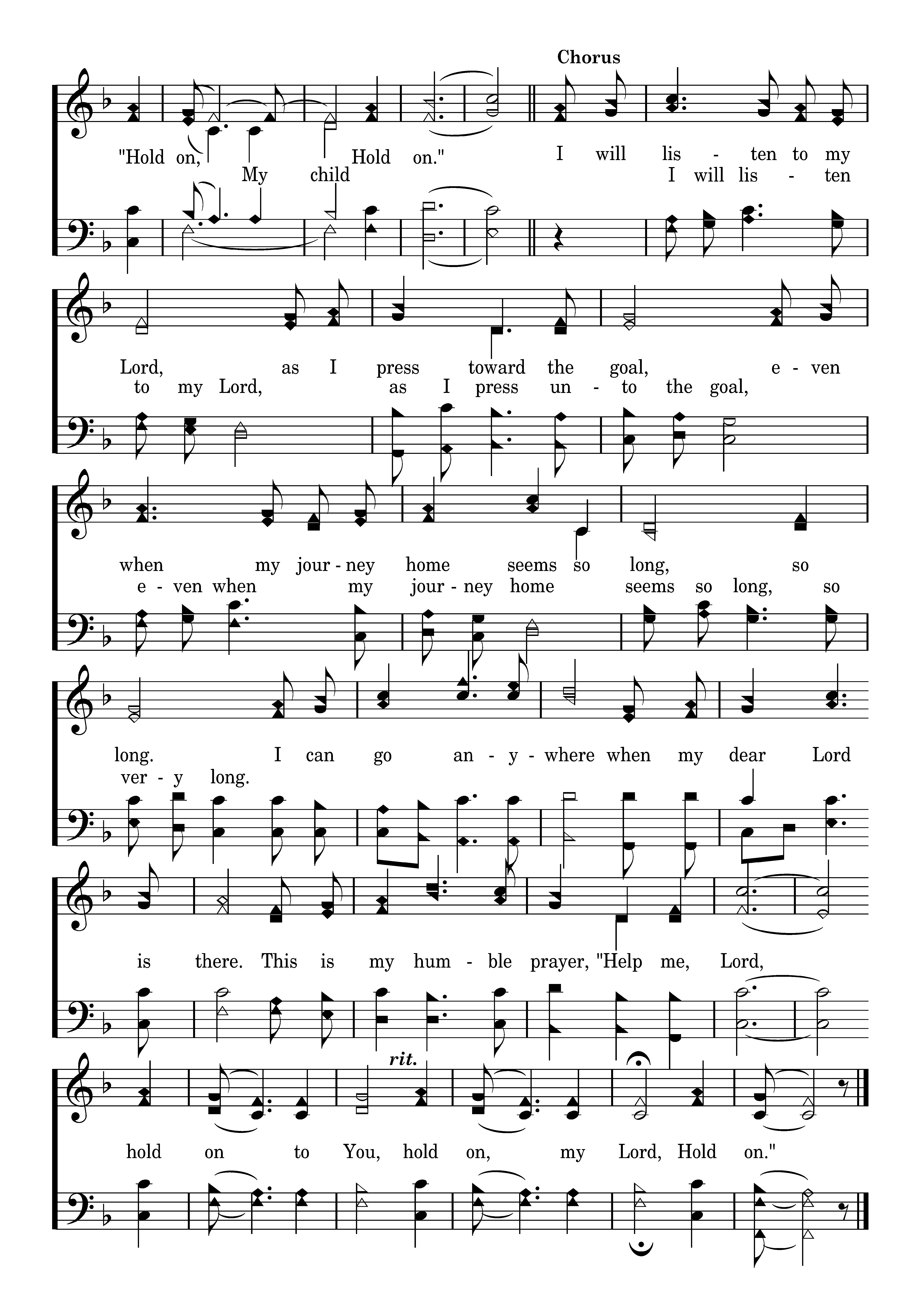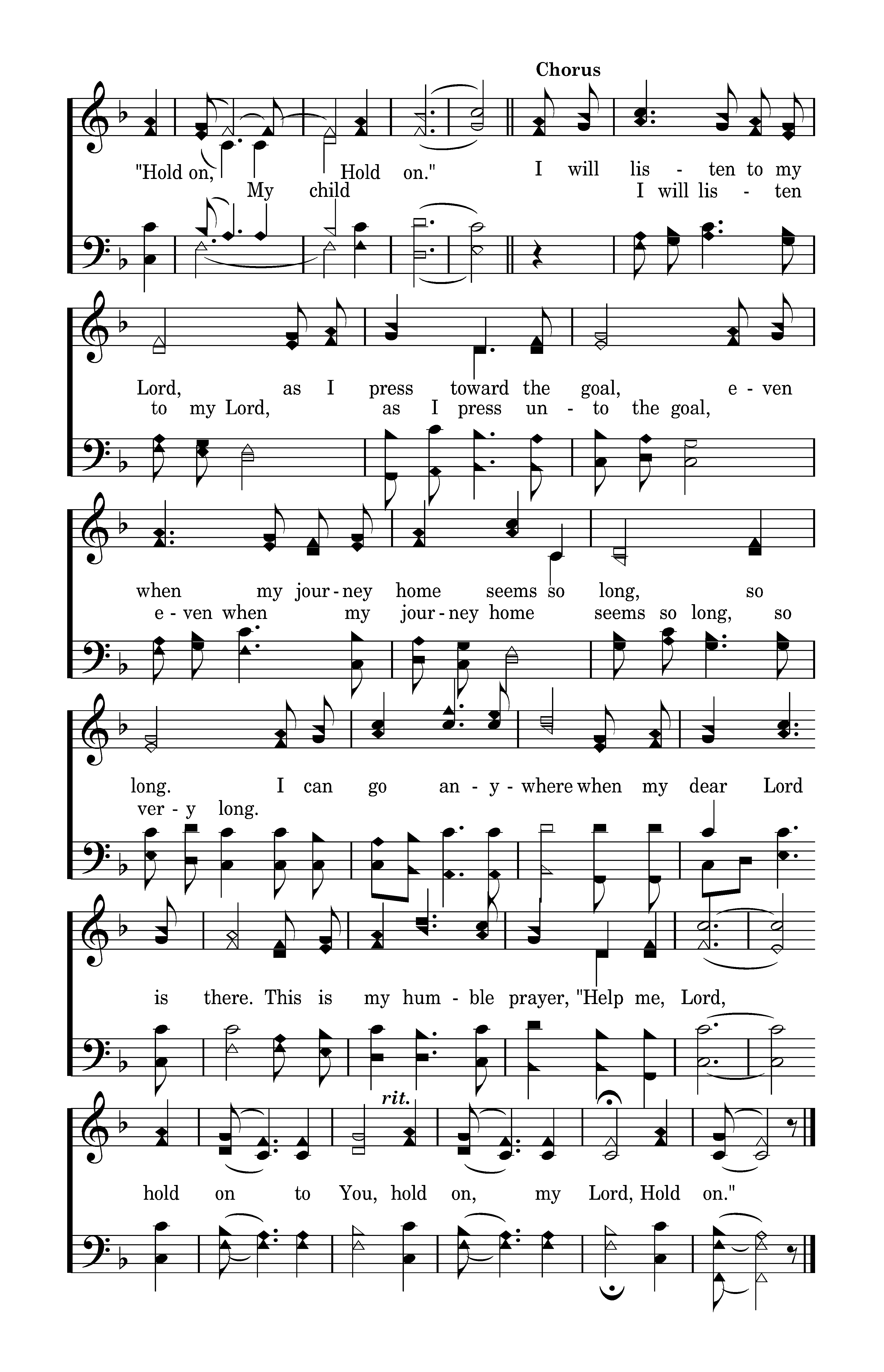 I will listen to my Lord, as I press toward the goal, even when my journey home seems so long, so long. I can go anywhere when my dear Lord is there. This is my humble prayer, "Help me, Lord, hold on to You, hold on, my Lord, Hold on.