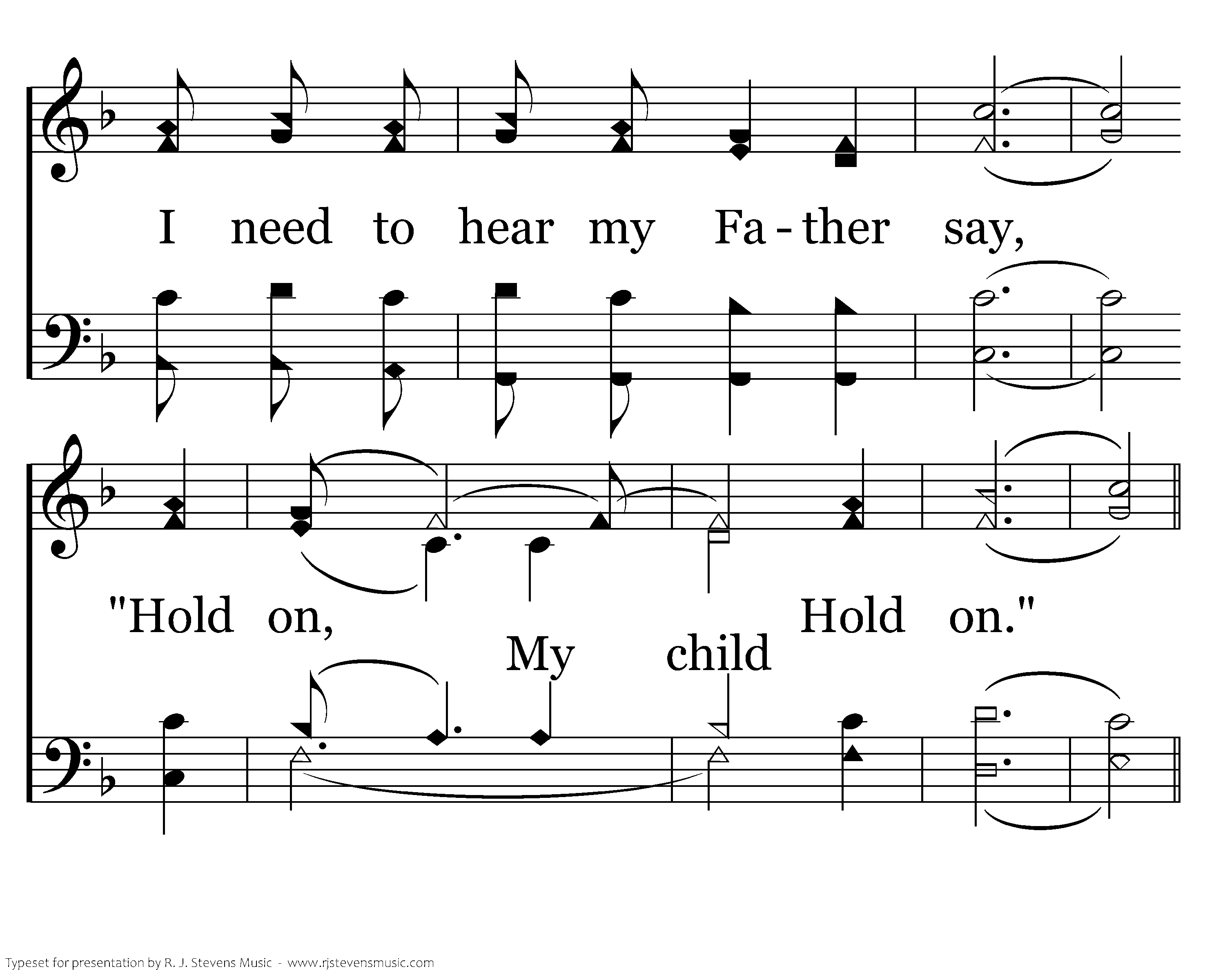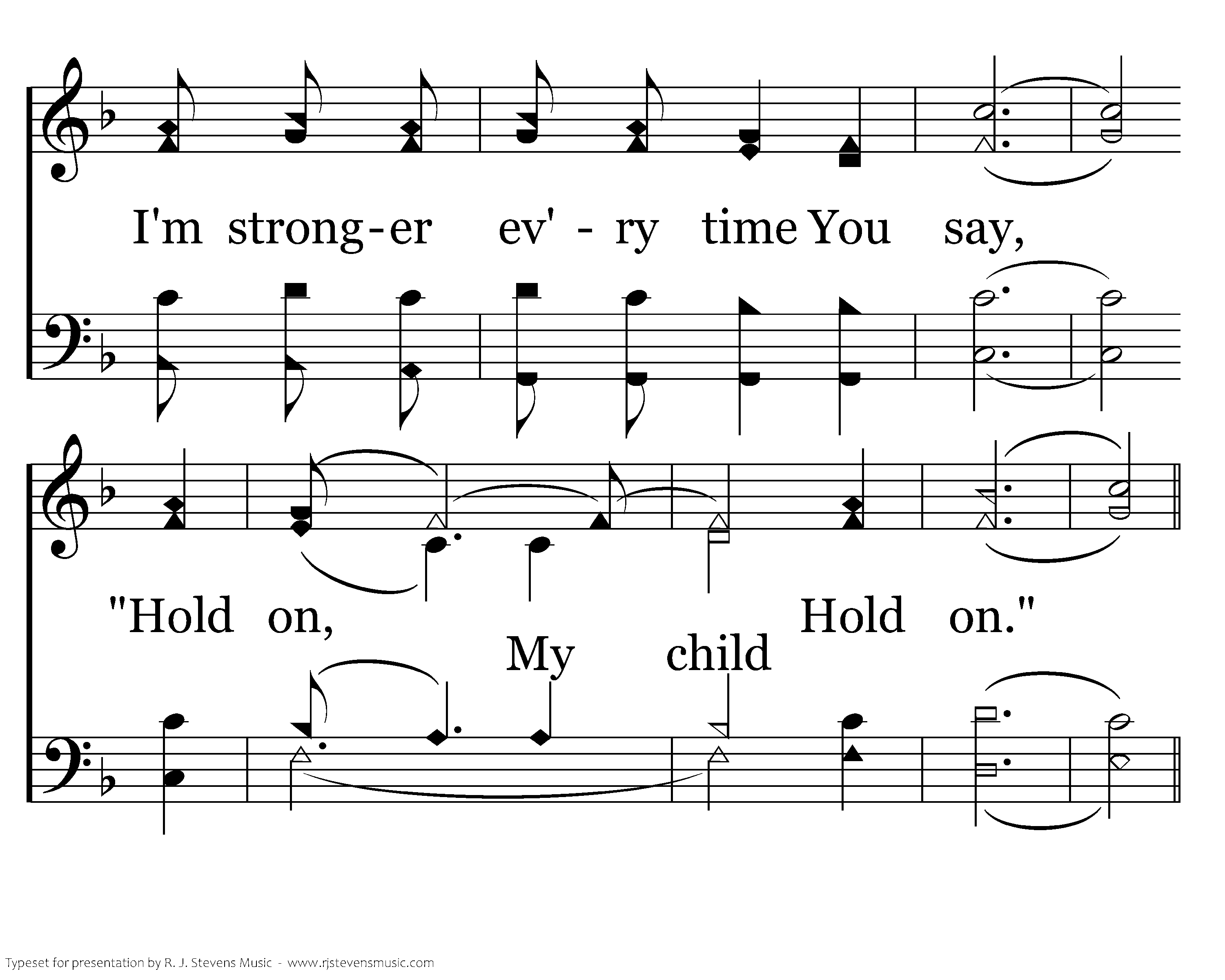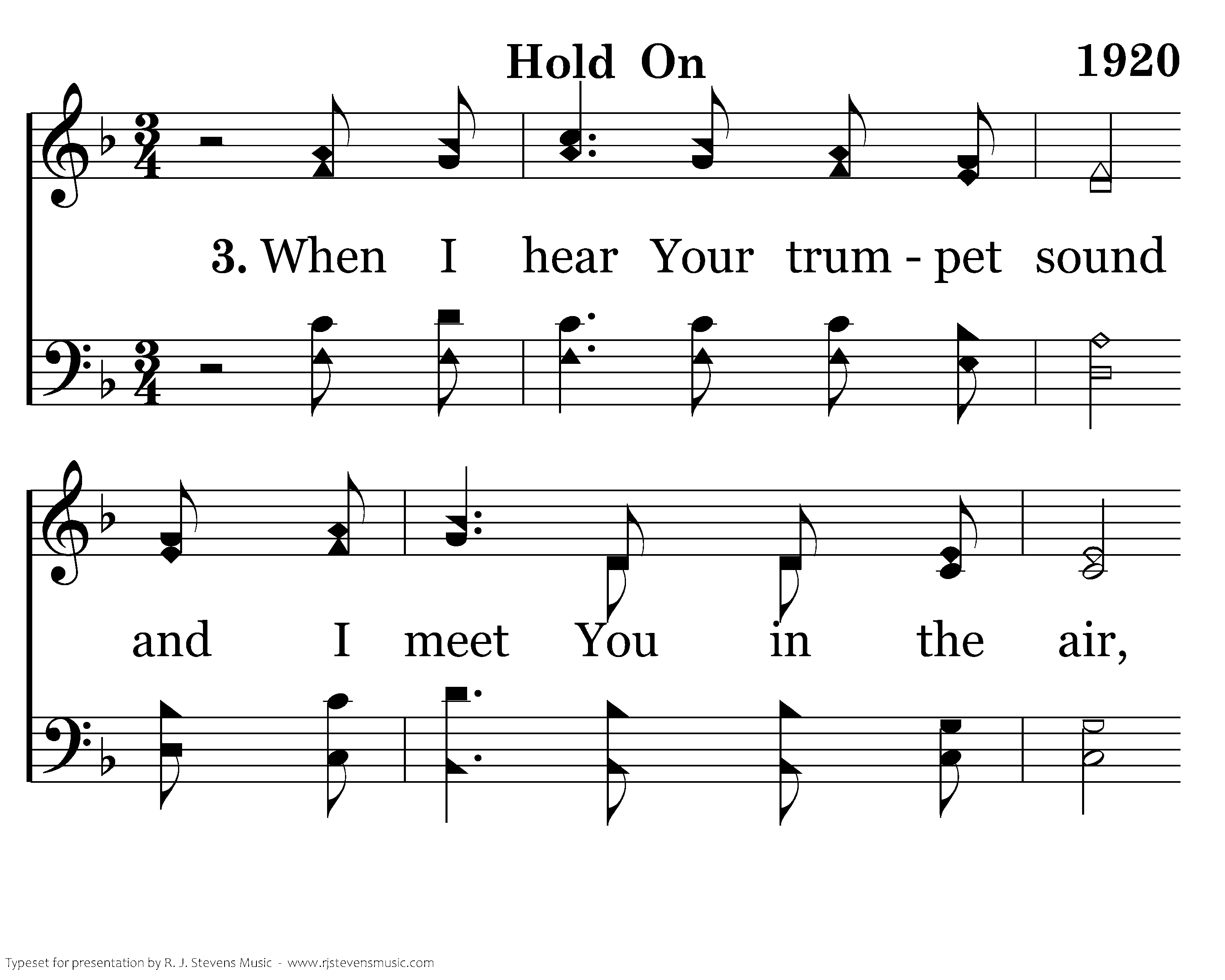 When I hear Your trumpet sound and I meet You in the air, Lord, transform my body here to Your glorious body there. Father, I await the day when the heavens pass away. That will be my final step of the way. Until then, I'm stronger ev'ry time You say, "Hold on, Hold on."