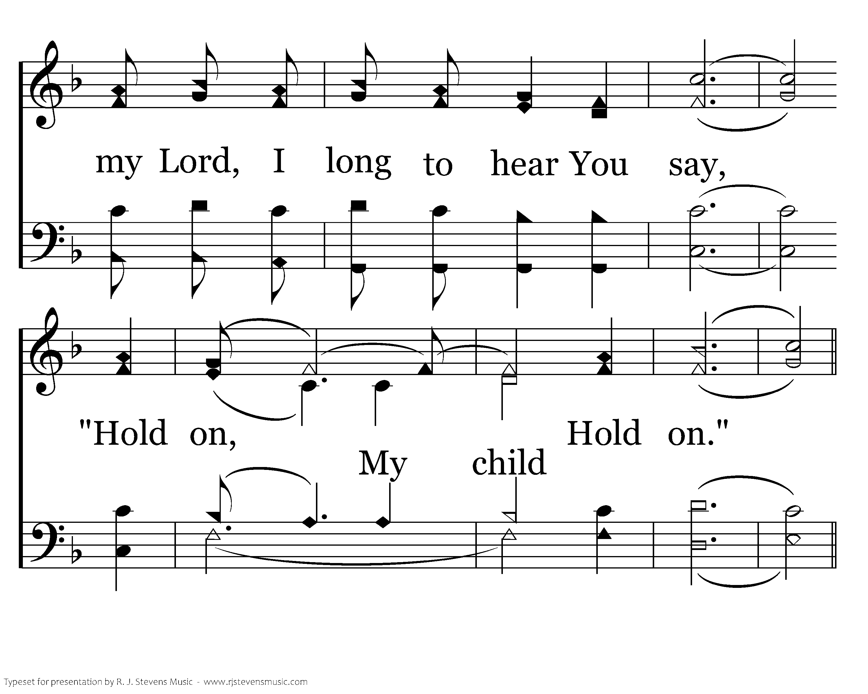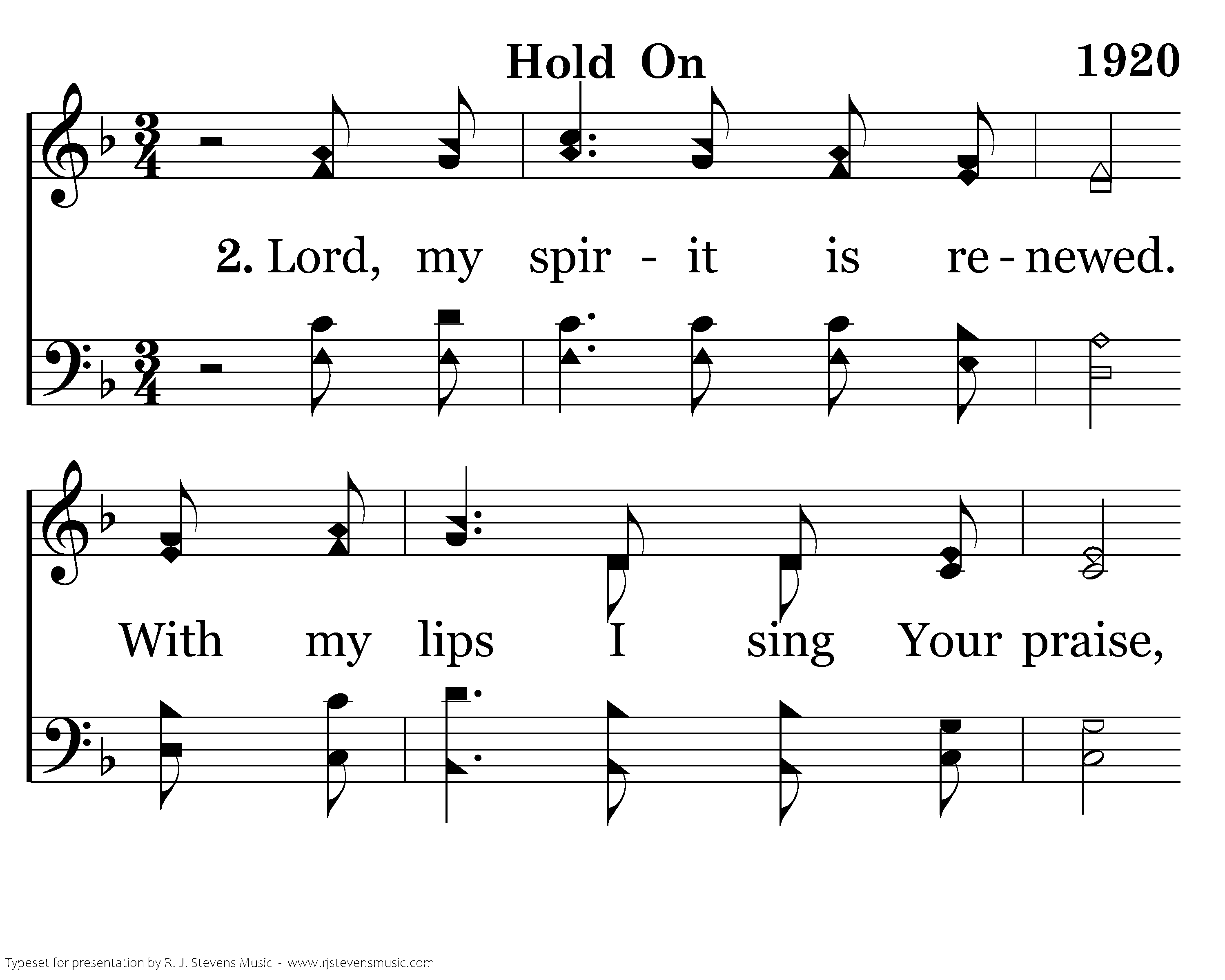 Lord, my spirit is renewed. With my lips I sing Your praise, for You wash me as the snow. From my sins, You hide Your face. Clean my heart, my Lord, I pray. Search for any sinful way. From Your presence, cast me never away. Ev'ry day, my Lord, I long to hear You say, "Hold on, Hold on."