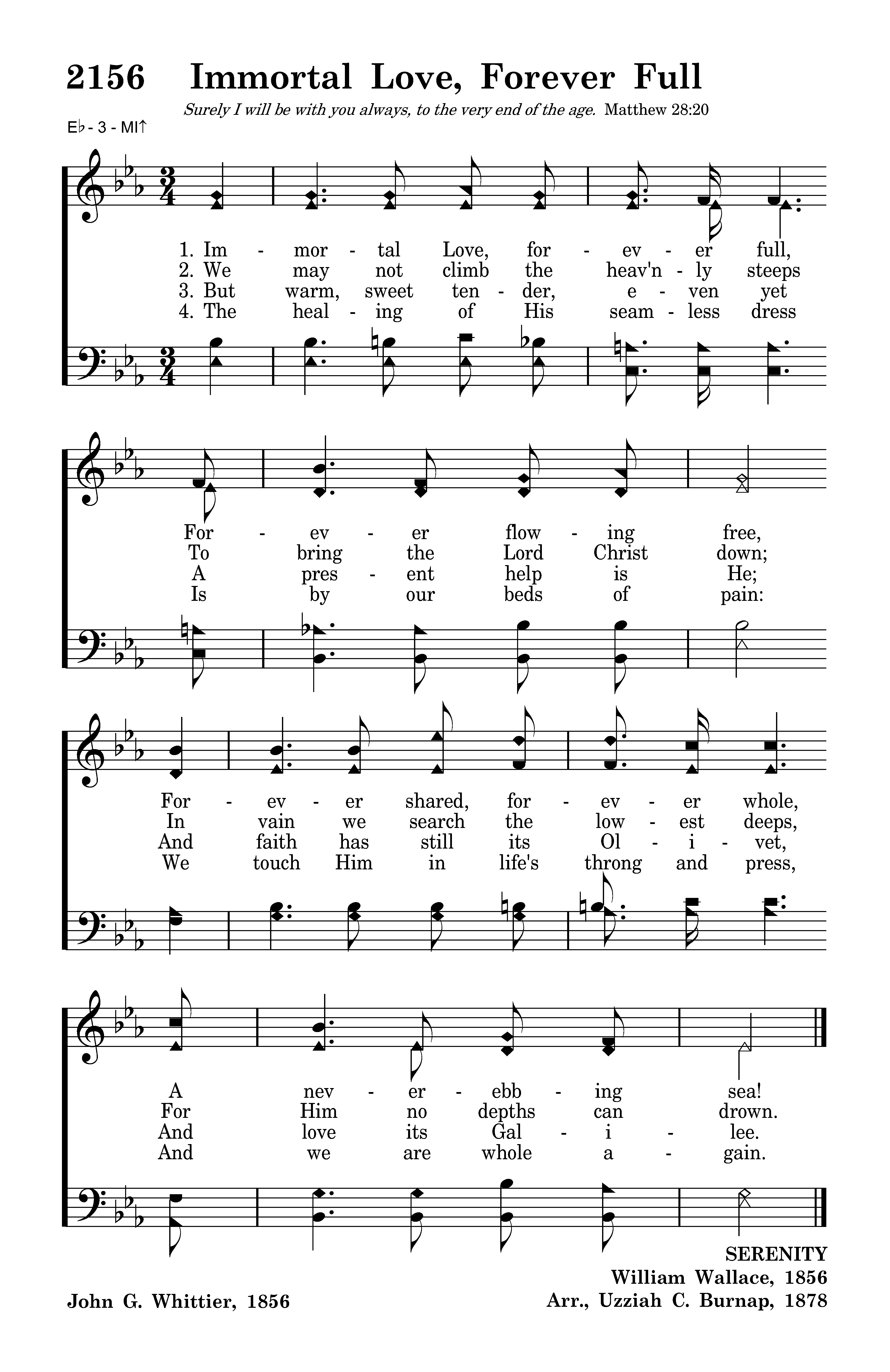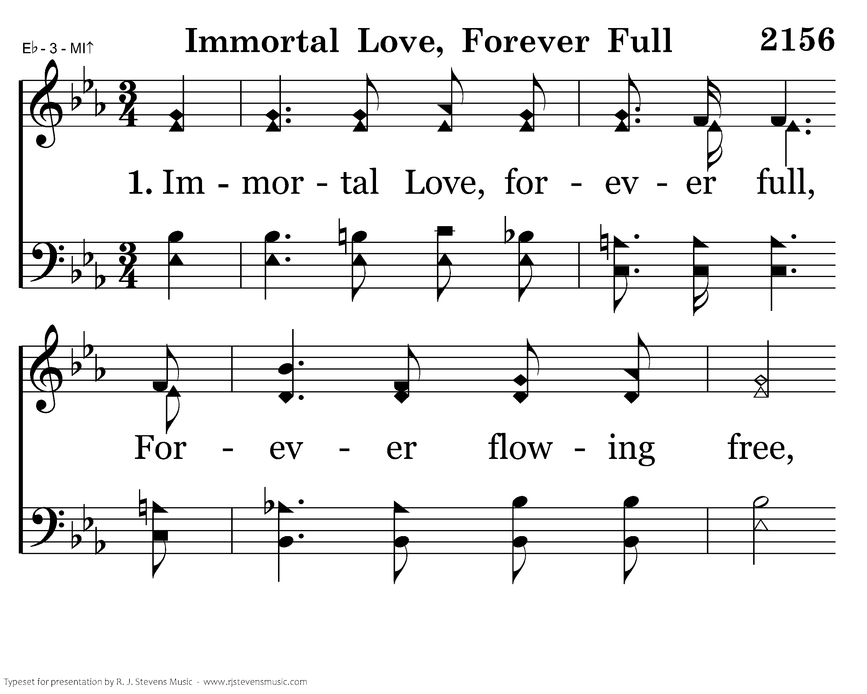Immortal Love, forever full, Forever flowing free, Forever shared, forever whole, A never-ebbing sea!