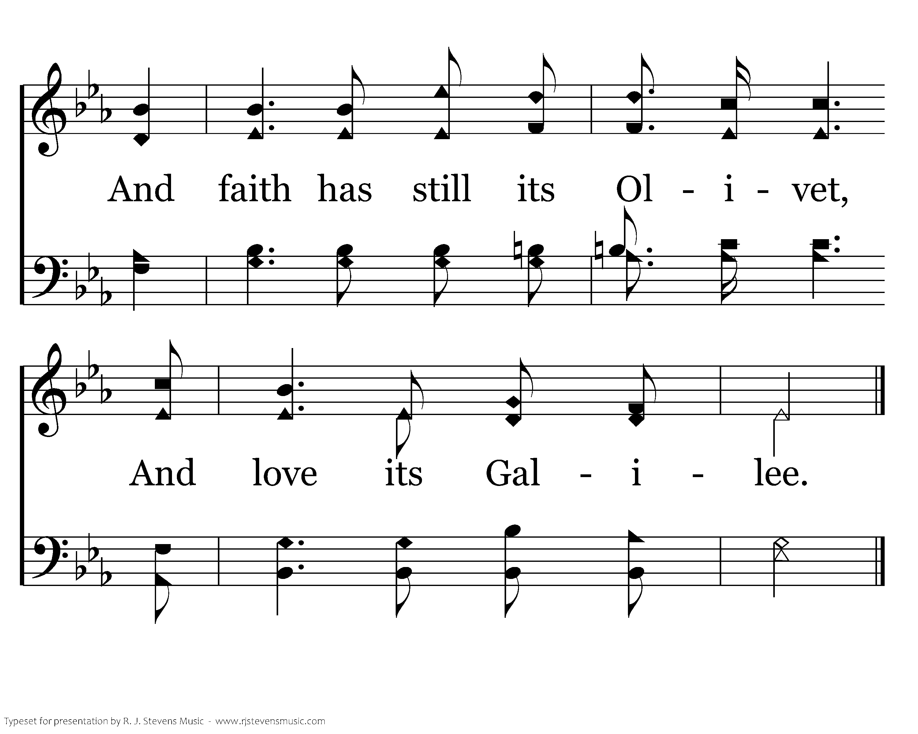 But warm, sweet tender, even yet A present help is He; And faith has still its Olivet, And love its Galilee.