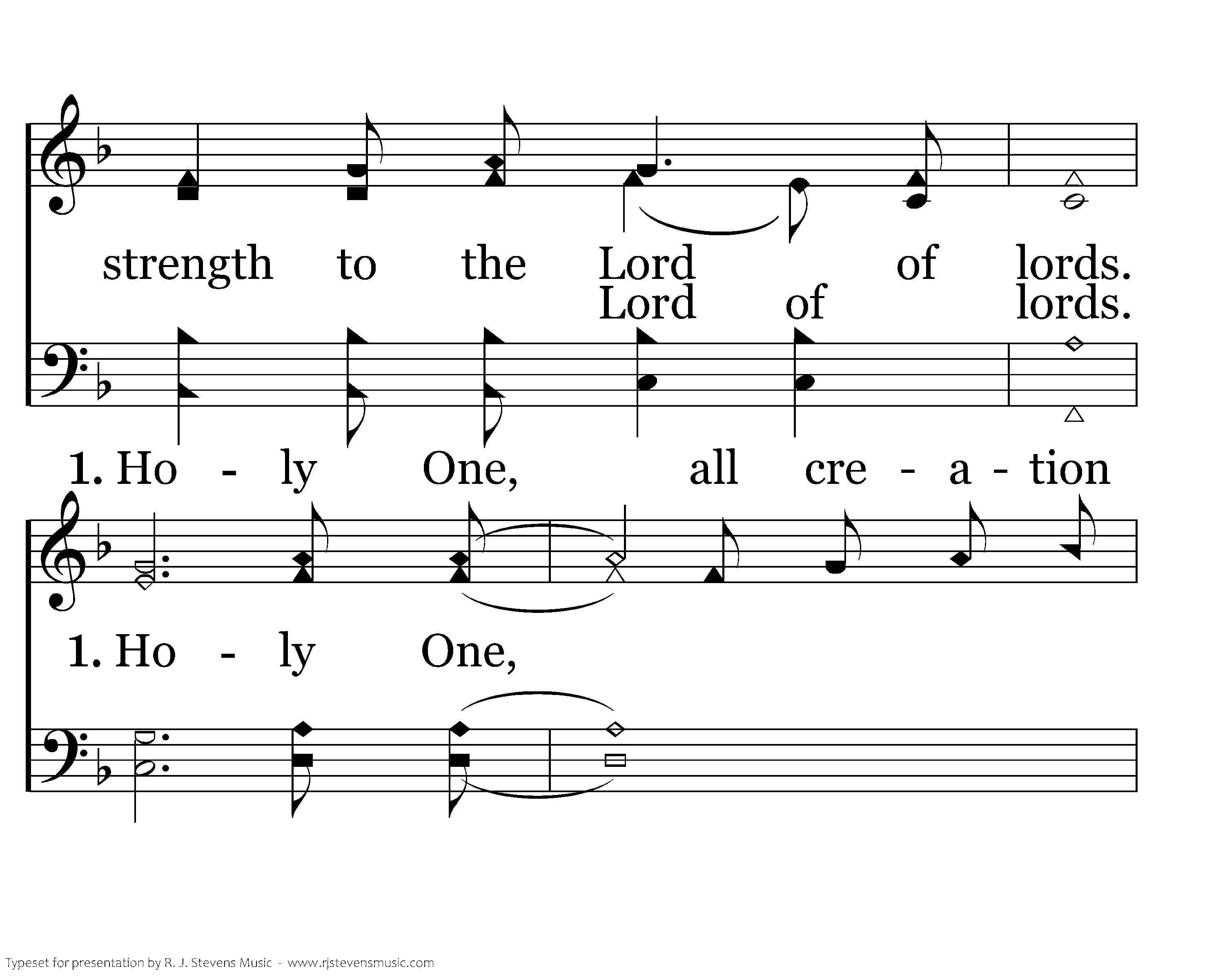 Glory to the King of kings. Majesty, pow'r and strength to the Lord of lords. Glory to the King of kings. Majesty, pow'r and strength to the Lord of lords. Holy One, all creation crowns You, King of kings. Holy One, King of kings, Lord of lords, Holy One. Holy One, crowns You King of kings. Holy One, King. Lord, Holy One.