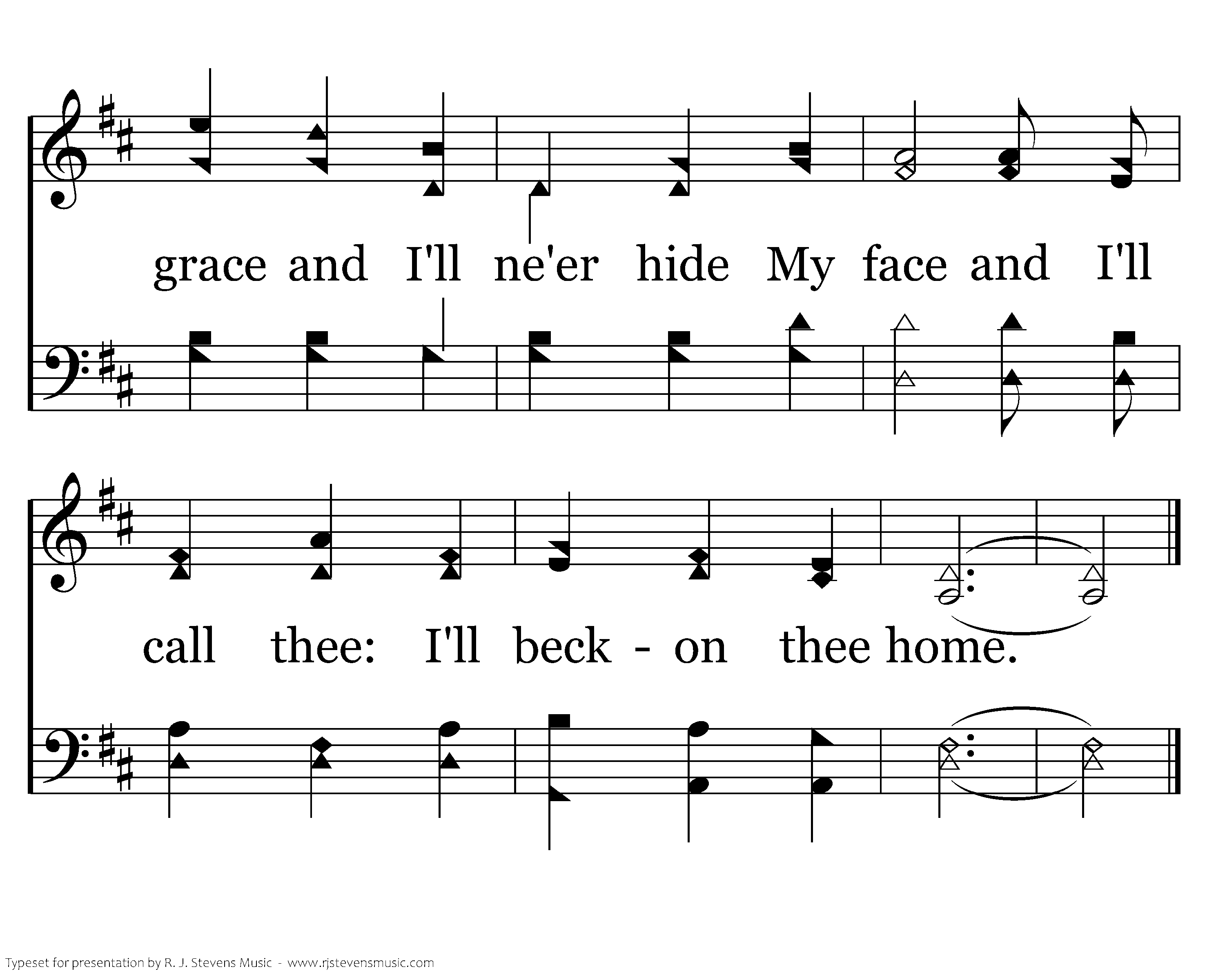 I'll shelter thee safe from the shadows of dread. You'll praise Me and tell of My love, you'll hold Me exalted and higher by far than all greatness below and above. You'll fold with My sheep and My statutes you'll keep, contentment, you'll teach those who'd roam, Believe in My grace and I'll ne'er hide My face and I'll call thee: I'll beckon thee home.