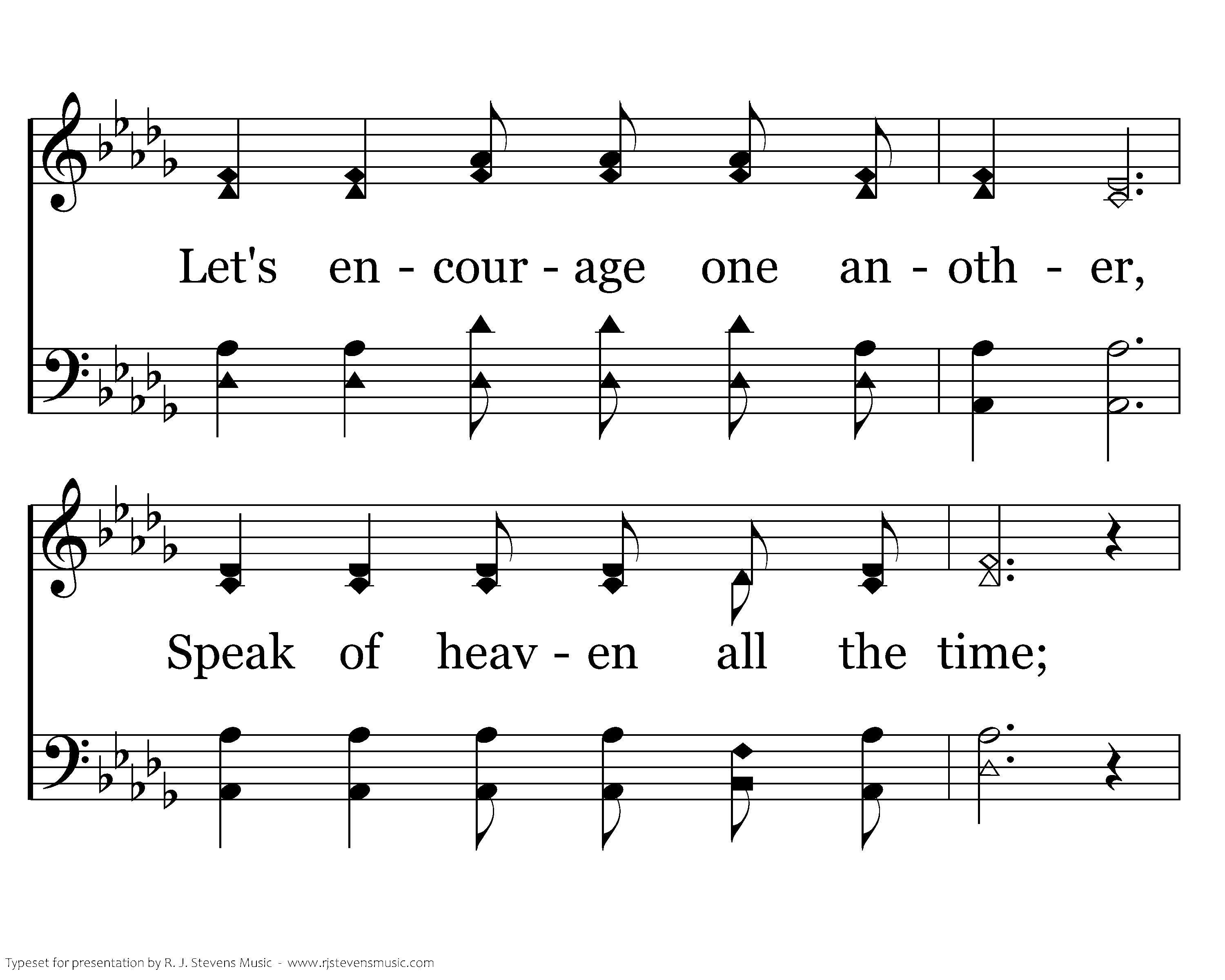 Help me chase away all doubt. Let's encourage one another, Speak of heaven all the time; Hand in hand let's go together, Heaven's gates are open wide. wide.
