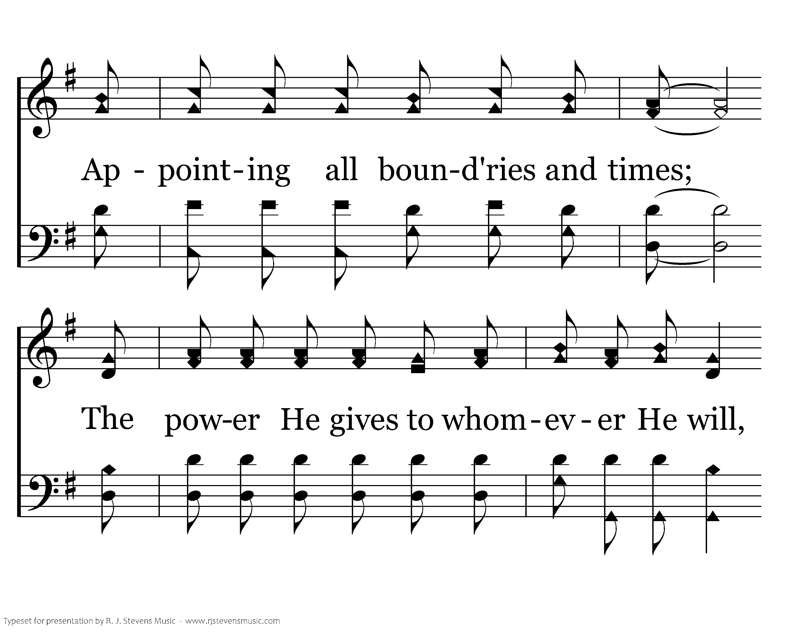 God reigns over the nations; God sits on His Holy throne. Our God, the Most High God, doth rule in the kingdom of men. God of our fathers, He raises up kings and rulers casts down, Appointing all bound'ries and times; The power He gives to whomever He will, But yields not control from on high.